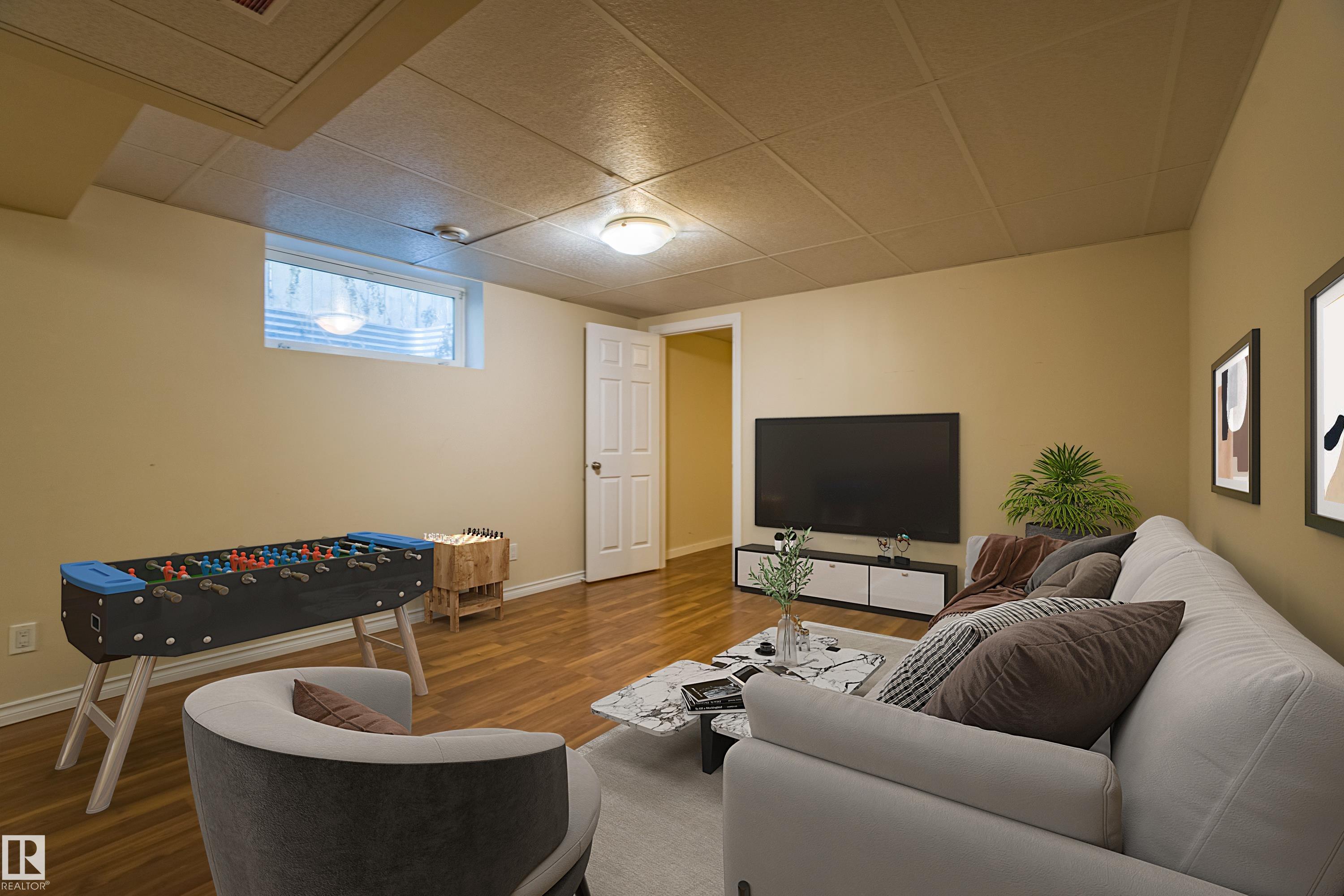 Welcome to this beautifully maintained 2,071 ft2 4 Bed 3.5 bath Landmark-built home in the heart of LEGER. The timeless plan offers a Bright, Open layout with a South-facing yard, filling the home with light through Skylights in the eating nook & great room. You'll love the warm hardwood floors, fireplace & spacious formal dining area. The kitchen features maple cabinetry, Stainless Appliances & plenty of prep & storage space. Upstairs, the primary suite includes a walk-in closet and a 5-piece ensuite with separate shower. Two Large bedrooms, a full Bath, and a large bonus room with 9' ceilings complete the upper level. The home offers a FULLY finished basement (with permits) 1 Bedroom, Full Bath, Rec room & lots of Storage. Notable updates include a newer HOT water tank, AND newer ROOF (approx. 3 years old). Additional features include main floor laundry, landscaped yard, and Double Garage. Located on a quiet street in one of SW Edmonton's most desirable neighbourhoods. Some Pics are Virtually Staged