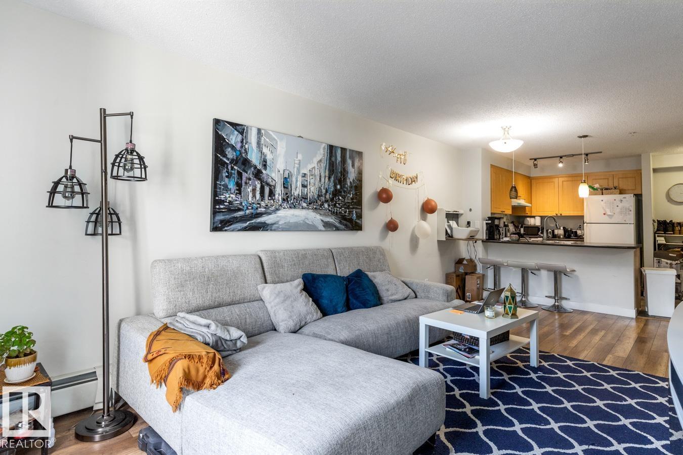 Move In Ready & Perfectly Located! This bright and stylish 597 sq ft 1 bedroom, 1 bath condo is the perfect blend of comfort and convenience. Situated on the second floor with underground parking, it's been beautifully maintained and is ready for you to move right in. Step inside to discover an open-concept layout with a smartly designed u-shaped kitchen featuring maple cabinetry and white appliances. The inviting living space is filled with natural light and opens onto a large balcony with natural gas hook up ideal for summer BBQs! The bedroom offers a walk-through closet leading to the full bath, while the added bonus of in-suite laundry makes life easy. Nestled in desirable Macewan, you'll love the location! Close to shopping, amenities, two golf courses, and quick access to Anthony Henday. Condo fees cover everything except property taxes. Whether you're a first-time buyer, downsizer, or investor, this home is a fantastic find!