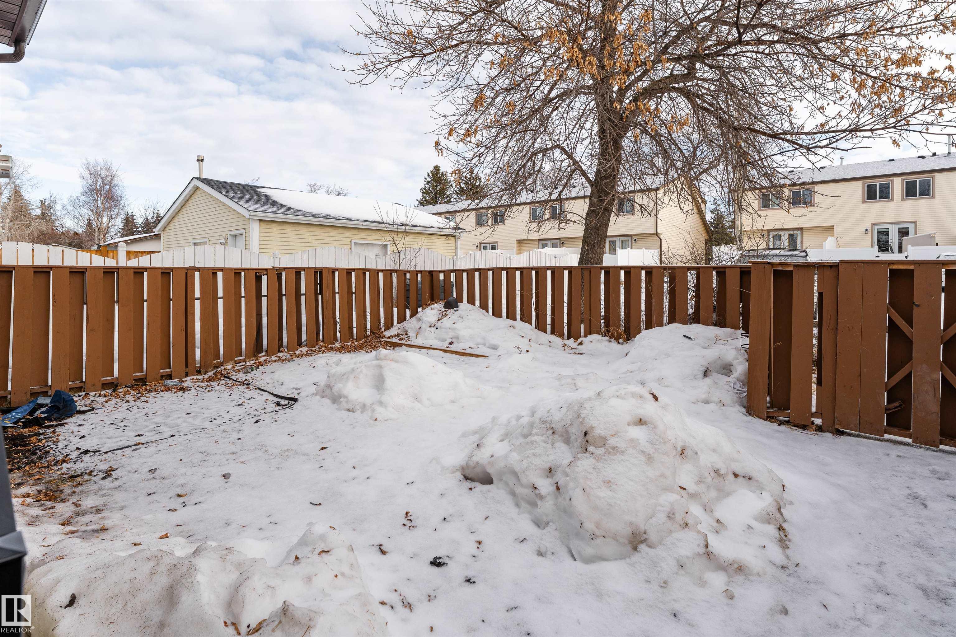 Move-in ready! Welcome to this bright and spacious end-unit townhouse featuring 3 bedrooms and 1.5 bathrooms. Vaulted ceilings greet you upon entry, creating an open and airy feel in the oversized living room--perfect for relaxing or entertaining. Bedrooms are tucked away downstairs, offering a quiet and private retreat where you can relax, unwind, and recharge away from the main living space. This is the only unit that has a front and back entrance! Also, enjoy the benefits of low condo fees at just $180/month, along with your own private enclosed yard and a designated parking stall and ample street parking for guests. Replaced furnace (2020) and hot water tank (2025), offering peace of mind for years to come. Conveniently located near schools, Millwoods Town Centre, Rec Centre, Hospital, South Edmonton Common, public transit and more! Easy access to Anthony Henday, Whitemud and Calgary Trail.