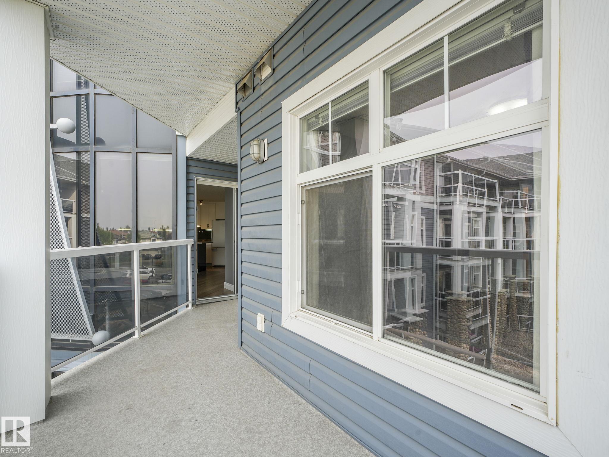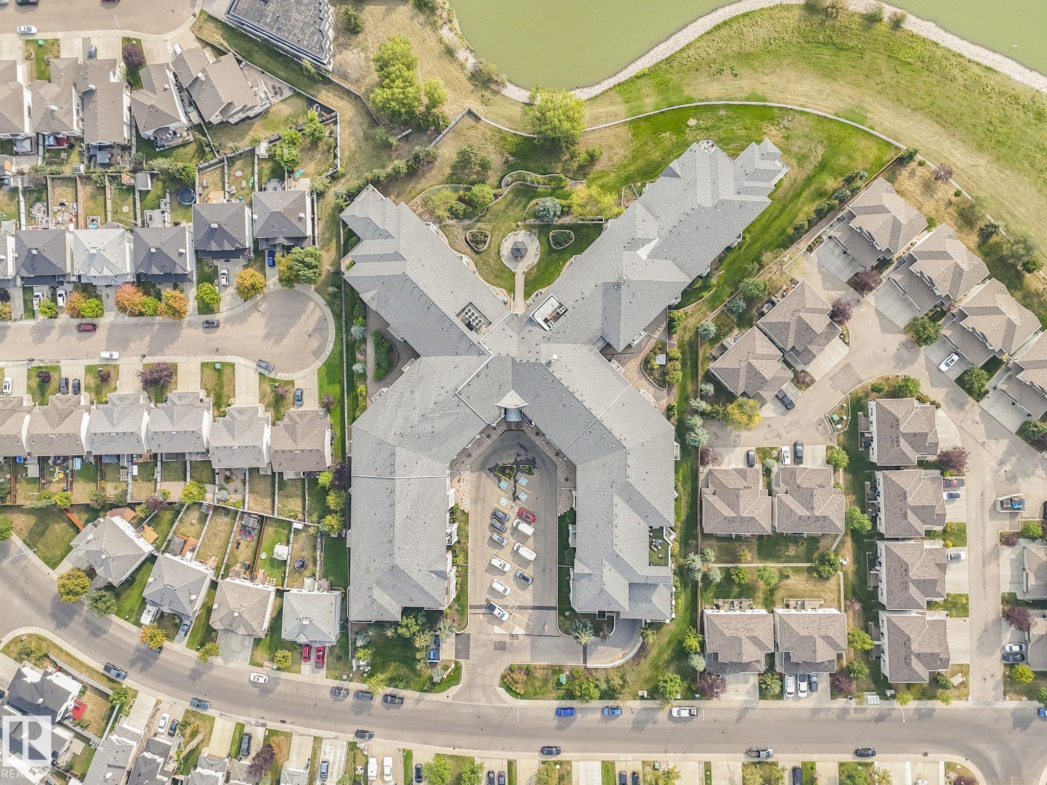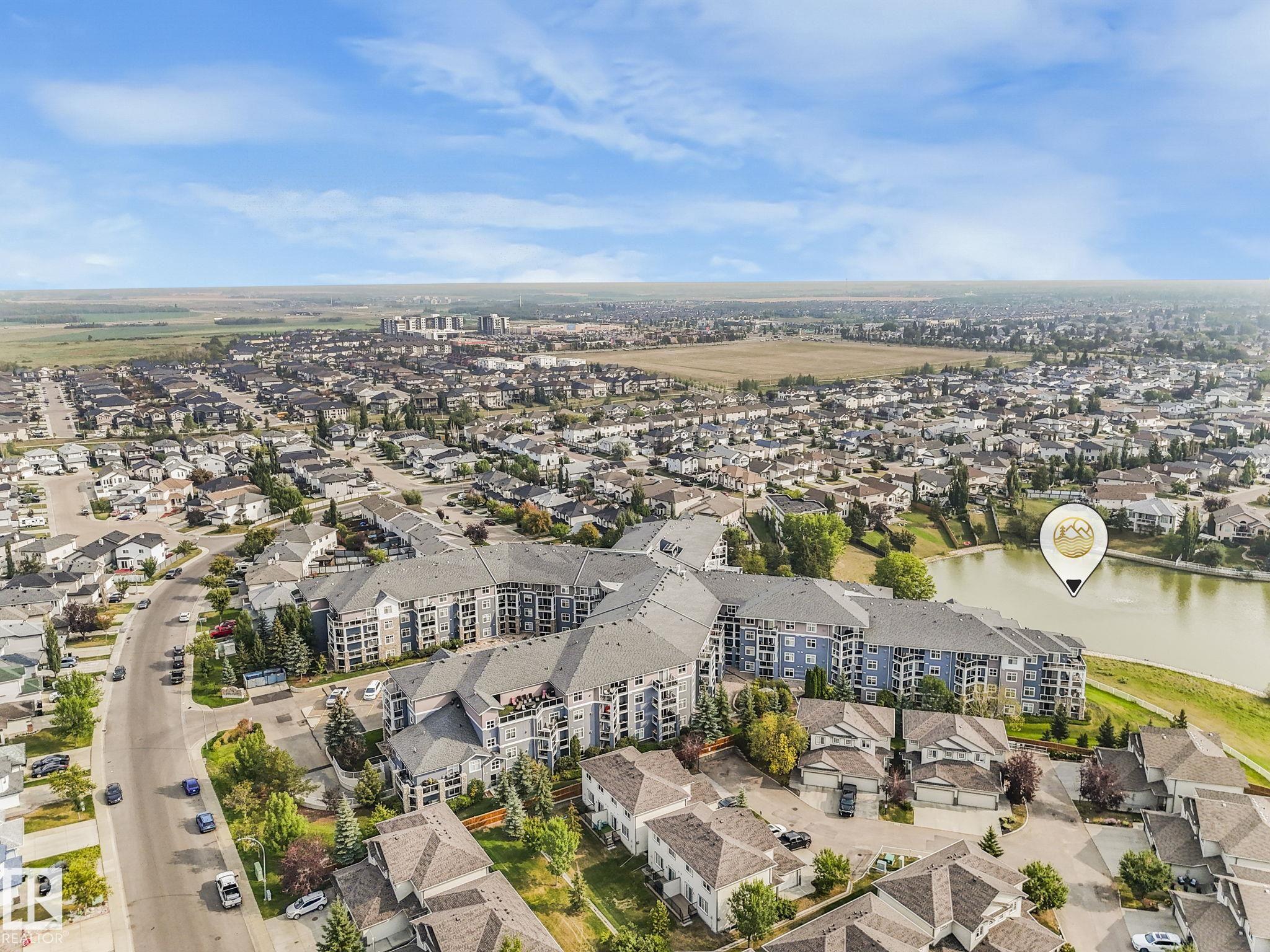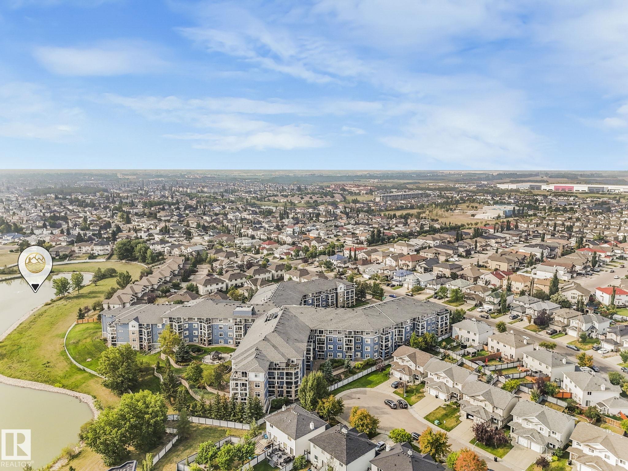 Do you enjoy lots of natural light? The Living room and Kitchen area are blessed with a wall of floor to ceiling windows. A wonderful, spacious floor plan, one of the largest units in the bldg. 2 bedrooms PLUS A DEN. Modern open concept is perfect for personal convenience and for entertaining. The kitchen has been upgraded with a large center island,designer back splash, pot drawers and a garborator. Enjoy the convenience of an in suite laundry room and generous storage. You will love the comfortable master bedroom with adjoining 4 piece bath. Check out the complexes amenities with underground parking, 4th floor outdoor patio, an exercise room, social and games room plus exterior walkways to the lake. You also have a caged storage area with your titled parking stall. Lots of new shopping, restaurants and conveniences are along 127th street which is only minutes away plus a quick access to the Anthony Henday makes the location premier!