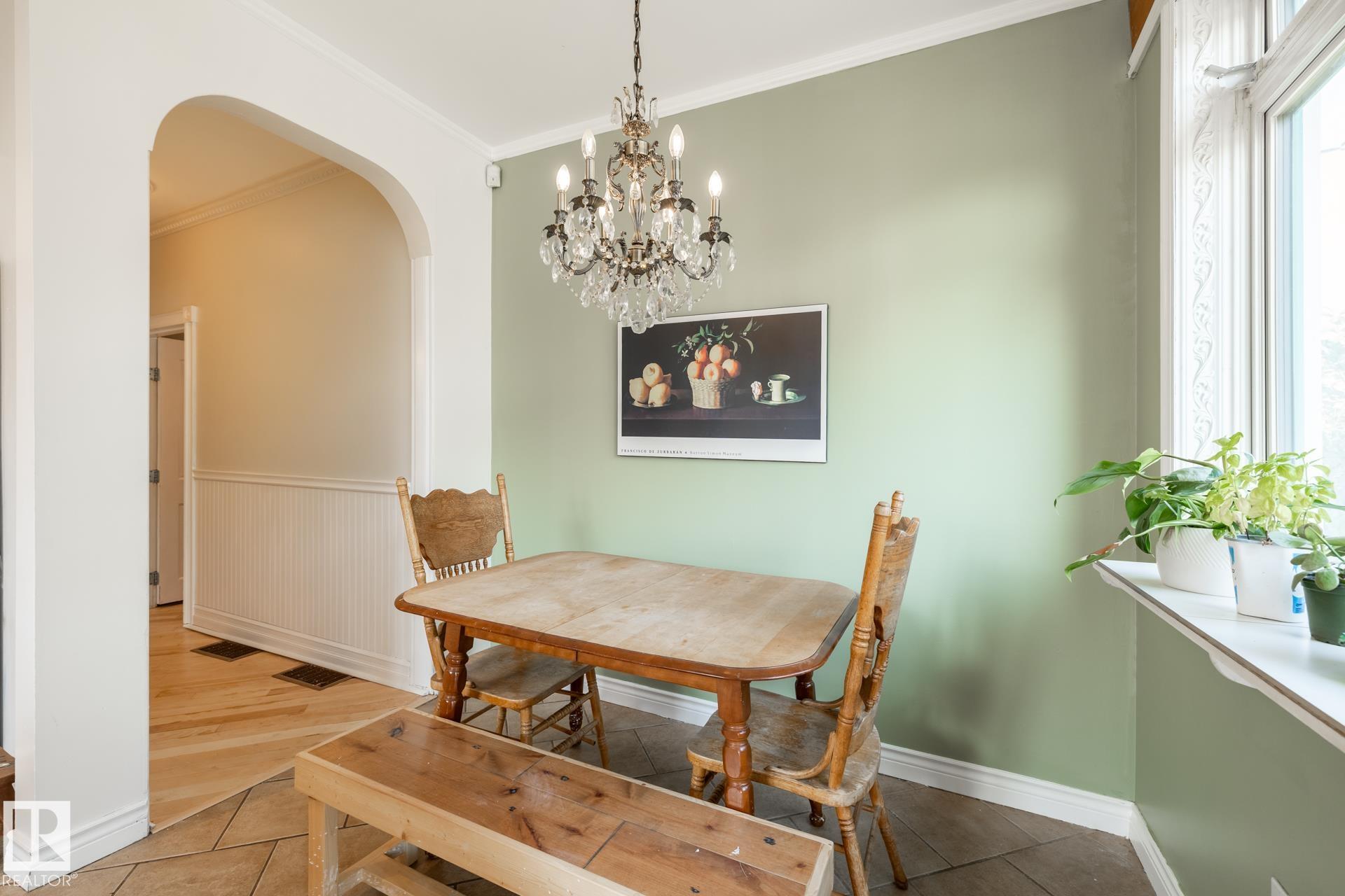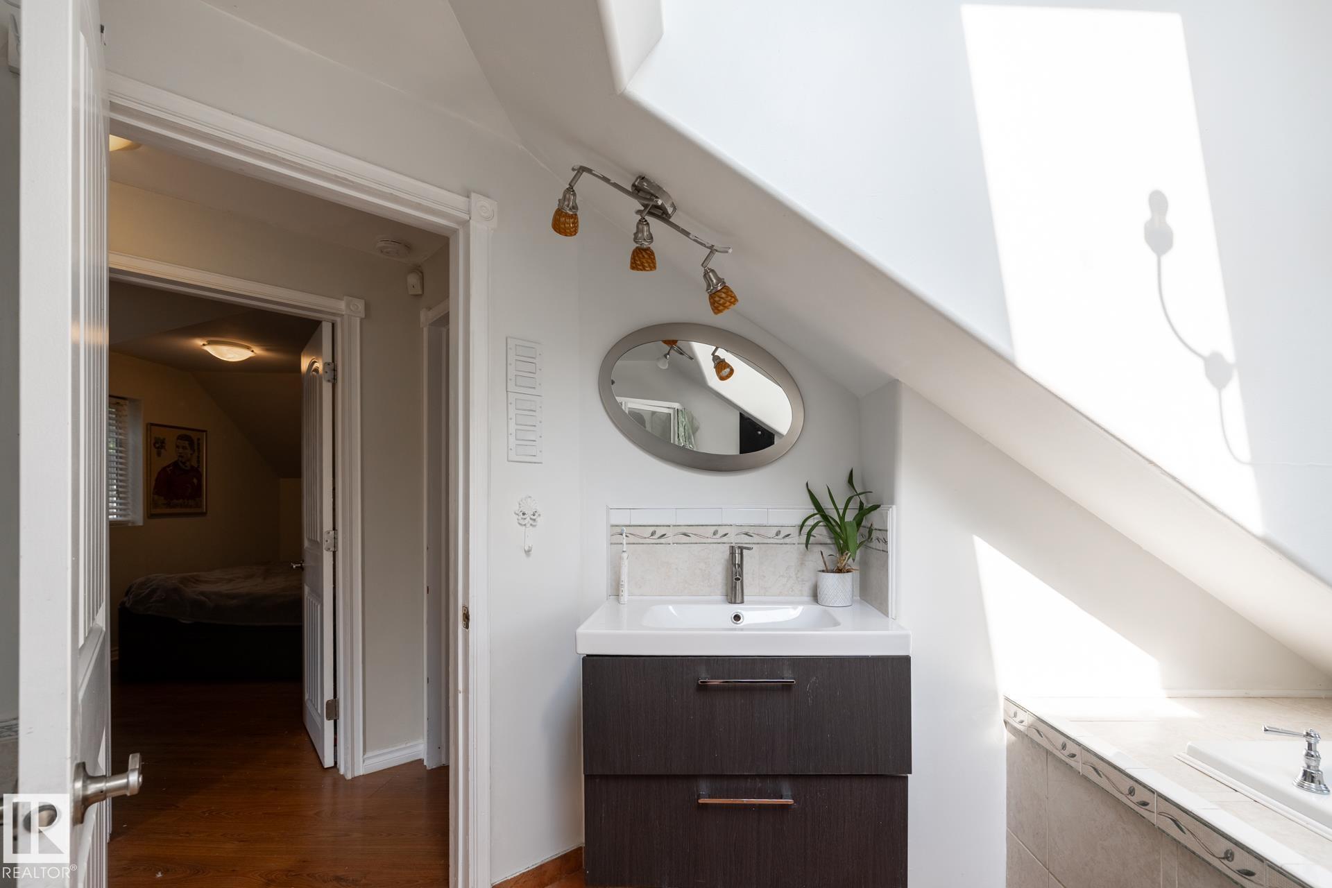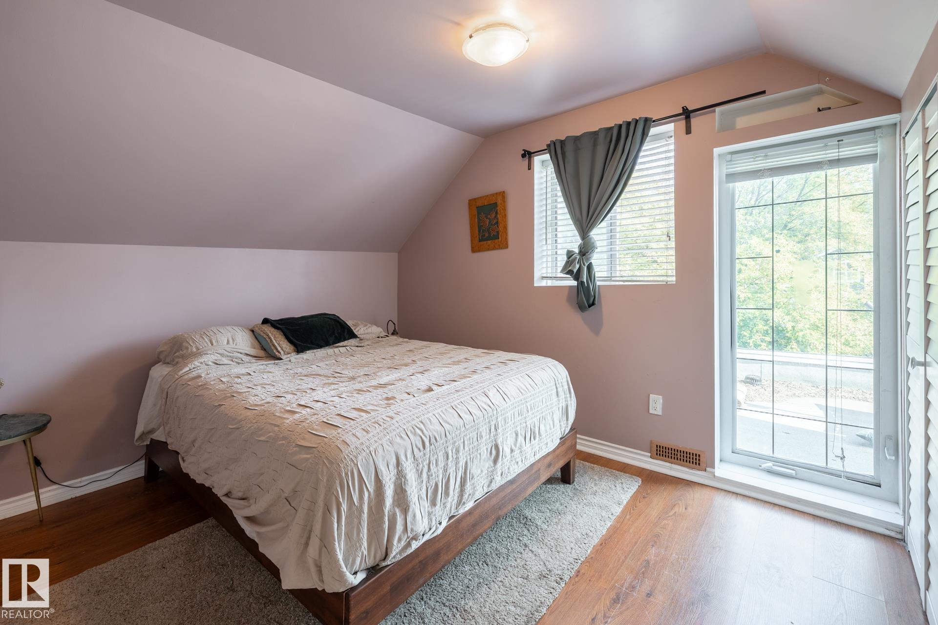This Parkdale charmer fuses historic soul with modern polish in one of Edmonton's most walkable, up-and-coming neighbourhoods. Steps away from the Commonweath Stadium, Community Rec Centre & Stadium LRT, the North Saskatchewan River Valley, and minutes from Downtown, the Royal Alex, Kingsway Mall, and an array of eateries & shops. Two storeys of character: upstairs there are 2 bedrooms plus a 5-piece bath with jetted tub and tons of natural light. Main floor has a 3rd bedroom, bright & spacious living room, large 3-piece bath, and a kitchen built for gathering, with exposed open-beam ceilings and refinished gorgeous hardwood floors in the living room and main-floor bedroom. An added separate entrance takes you to the unfinished basement which features full ceiling height, lots of windows, and is roughed in for both kitchen & bath, ideal to build out a full 2-bedroom suite. This is your chance to live bold, breathe art, bike paths, green space, and culture--all while feeling rooted in the real Edmonton.
