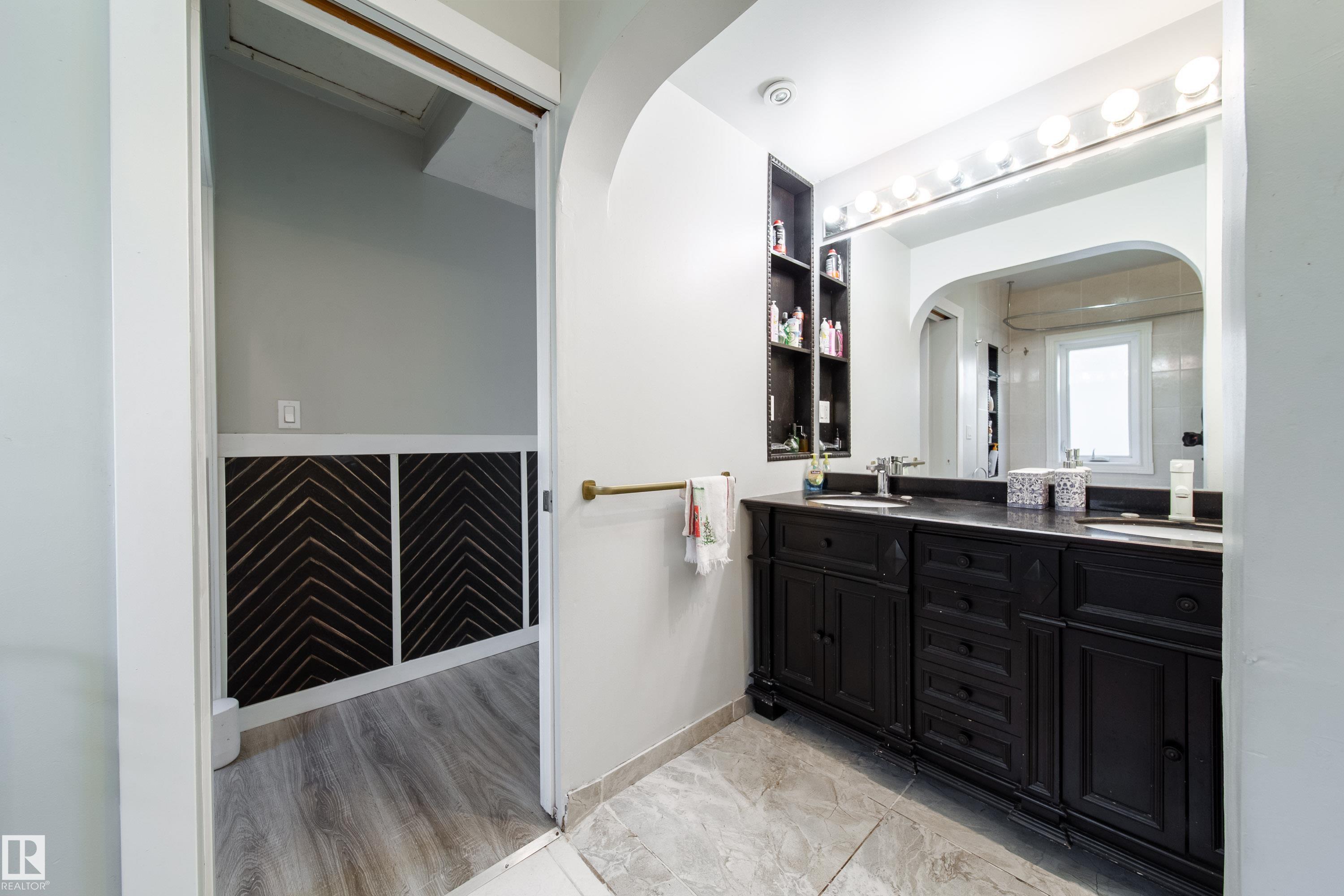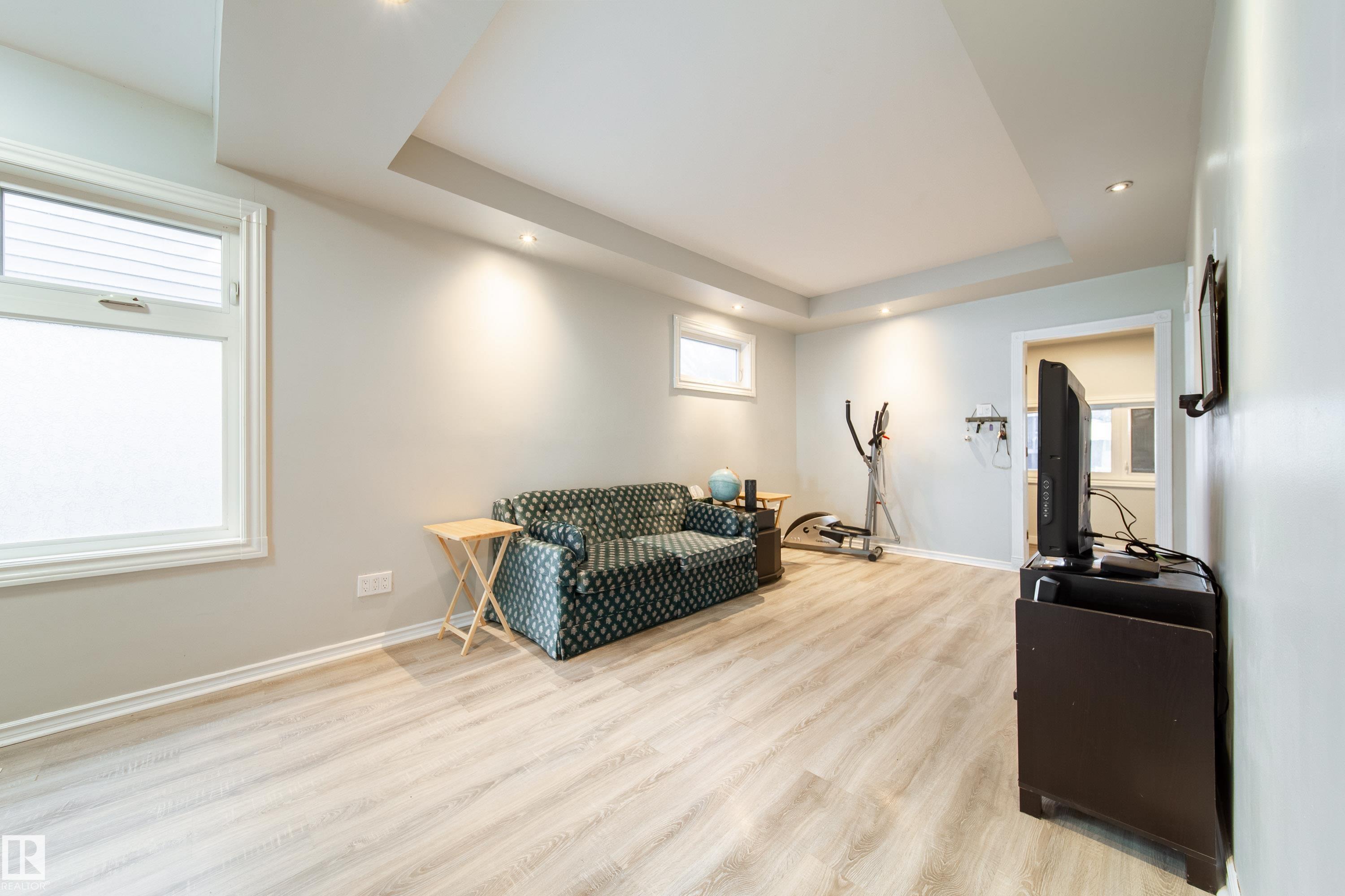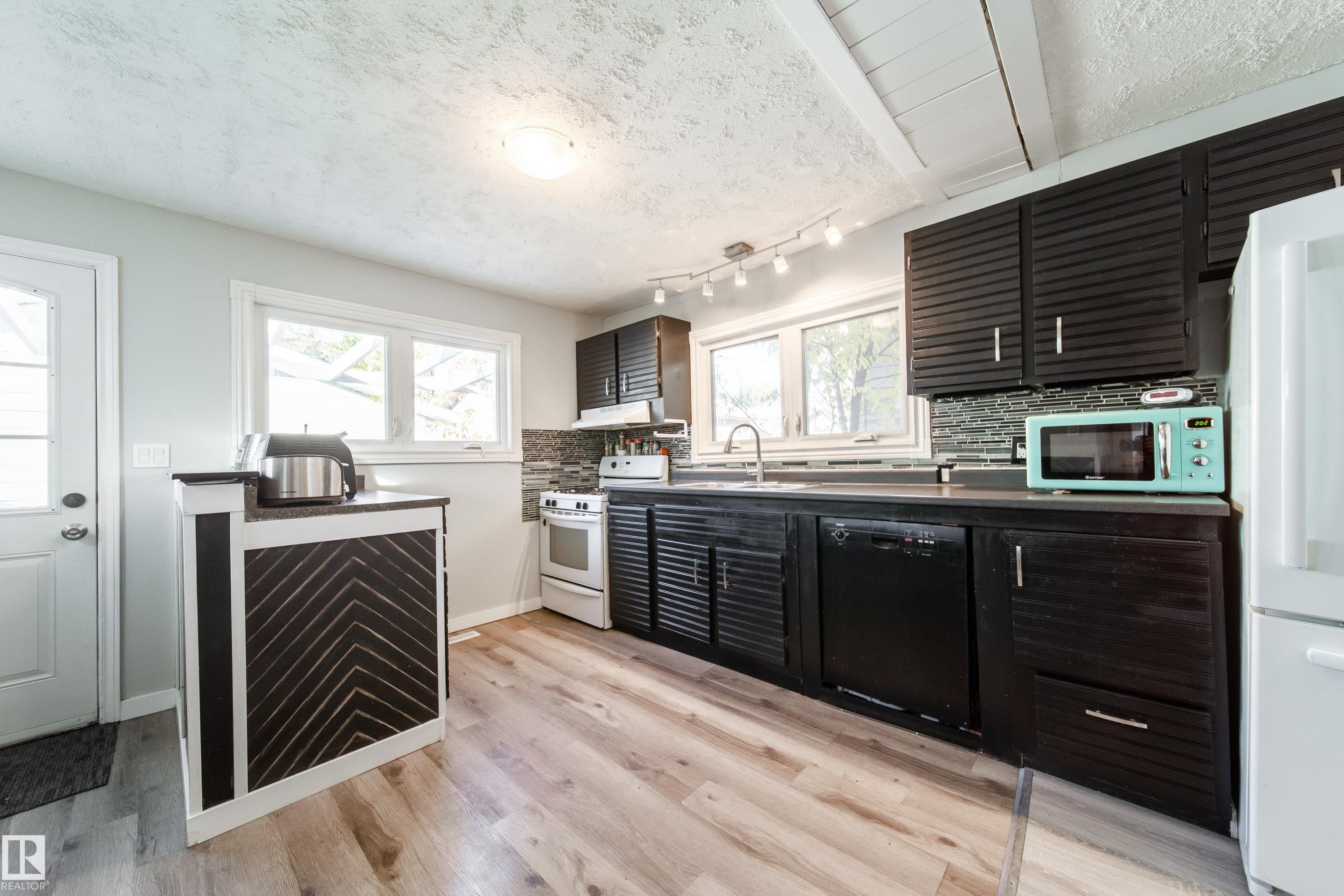 Welcome to this beautifully updated bungalow on a charming tree-lined street! This fully finished home features 2 spacious bedrooms on the main floor, plus the 2 additional bedrooms in the basement--ideal for families or guests. Enjoy a full bathroom on both levels and an inviting open-concept layout where the kitchen flows effortlessly into the dining and living areas--perfect for entertaining. Step outside to a large deck and a fully fenced backyard, offering privacy and space to relax. The oversized double garage and extra parking pad provide plenty of convenience. With numerous updates including newer windows, roof, furnace, and flooring, this move-in ready home is sure to impress! Move-in ready or a perfect rental. RF3 zoned on a 10.1x36.6 lot for future redevelopment. Walking distance to parks, schools and minutes from shopping and easy access to the Yellowhead. If you're looking to enter the market, she is ready, affordable and waiting for you. Welcome home.
