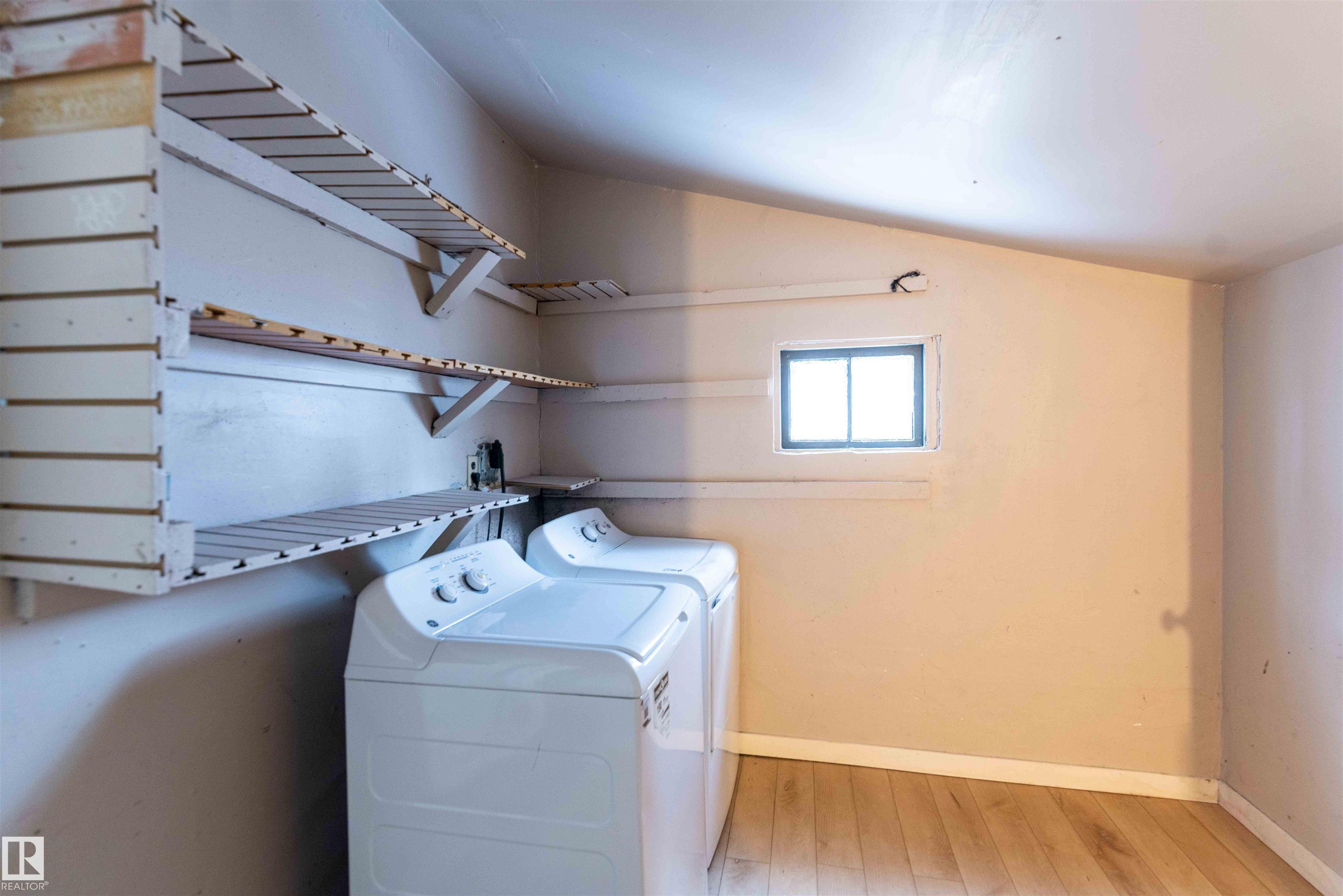 Located on a large 33' x 167' lot, this property features flexible zoning suitable for residential living or small-scale commercial uses, including food and beverage service, health services, office space, or child care. Whether you're seeking a comfortable home or a strategic business location, the options are impressive. Ideally situated close to NAIT, retail, parks, and the LRT, with quick access to Downtown. It's also just a 10-minute drive to the University of Alberta, Royal Alexandra Hospital, and Rogers Place--offering excellent urban convenience. This charming detached bungalow provides generous living space with 4 bedrooms, 1.5 baths, and a half-finished basement. A double detached garage offers ample parking and storage. Character details include bay windows and a traditional layout with separate kitchen, dining, and living areas. The home also features a laundry room and a separate rear entrance to the basement.