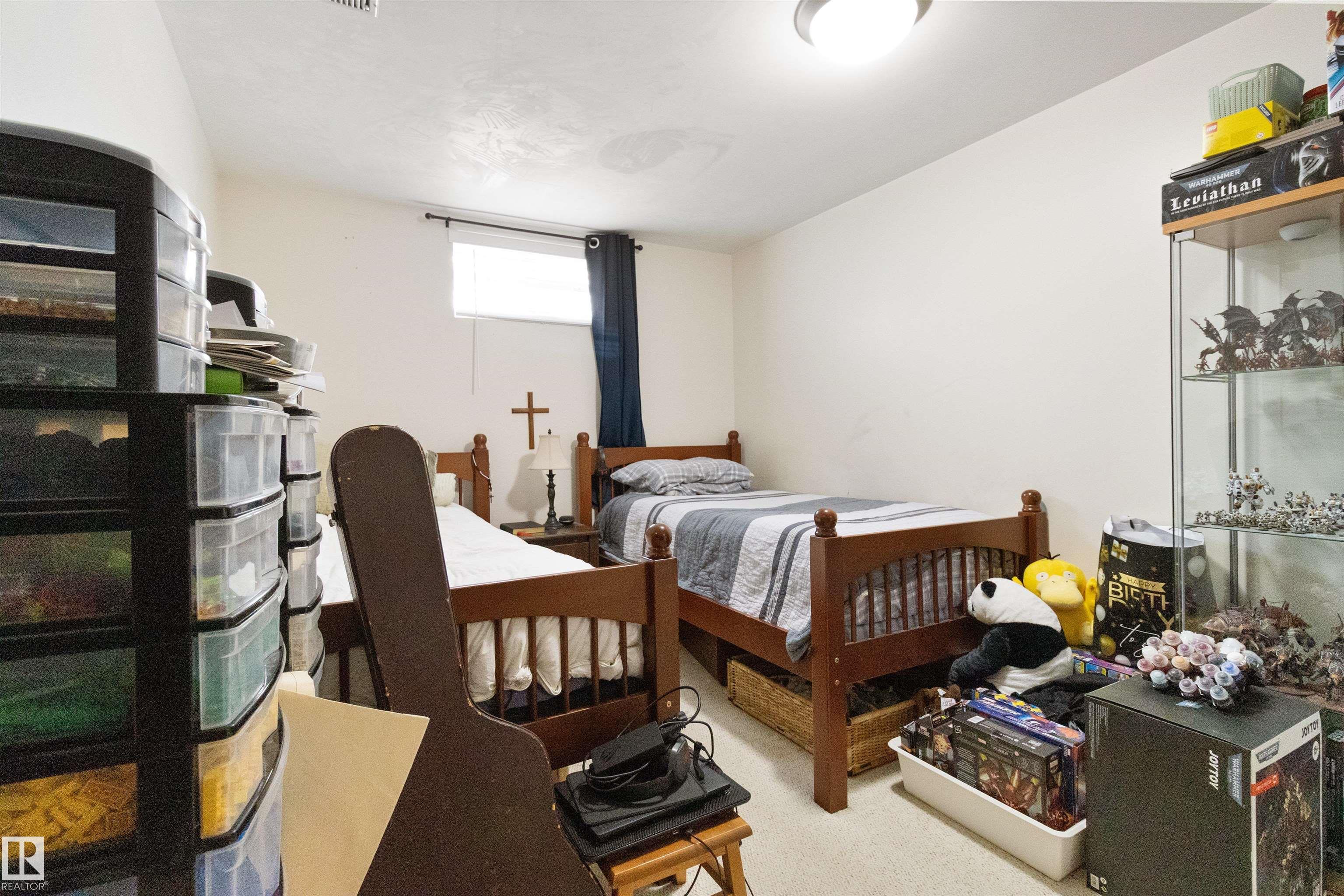 LOVELY BUNGALOW BACKING ONTO PARK! Open design with 1173 square feet plus a FULLY FINISHED BASEMENT. Very spacious front living with Bay window. Large eat-in kitchen with an abundance of cabinetry & counter space, vinyl plank flooring, appliances, plus a generous dining area. The main floor offers 3 bedrooms and a 4 piece bathroom. The Primary Bedroom has its own private 2 piece ensuite. The basement boasts a huge Rec Room, 4th bedroom, 3 piece bathroom, storage space, and utility room with laundry area. Upgrades include: NEW SHINGLES (2025), NEW WINDOWS ON MAIN (2020), NEW HWT (2025), NEW VINYL PLANK FLOORING (2025) and NEWER FENCE (2017). PRIVATE SOUTH-FACING BACKYARD! DOUBLE detached garage. This lovely home is conveniently located close to schools, transit, shopping and great amenities. AMAZING VALUE & LOCATION! Won't last! Visit REALTOR© website for more information.