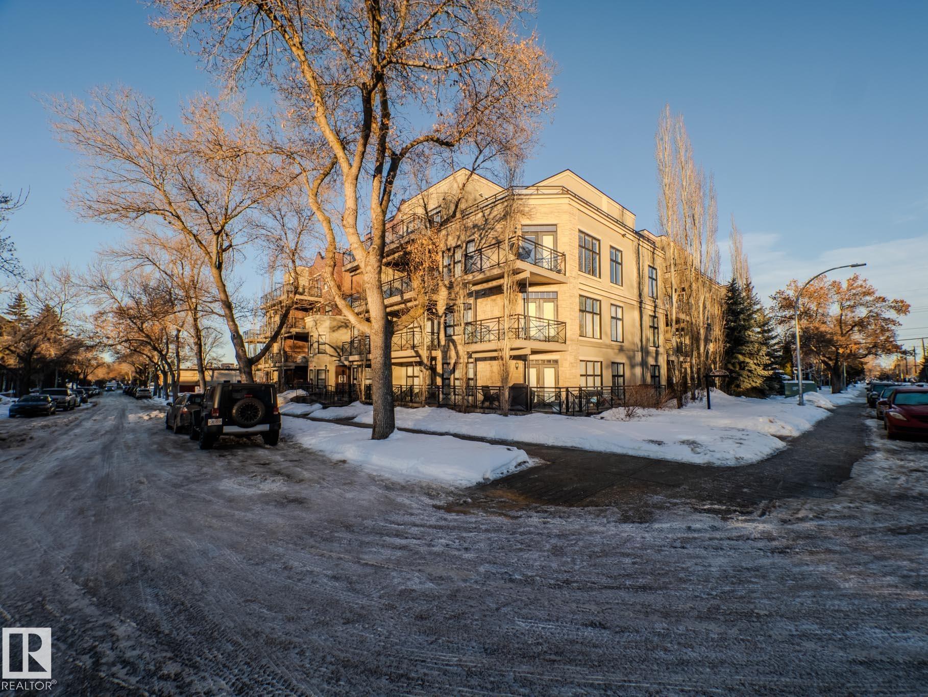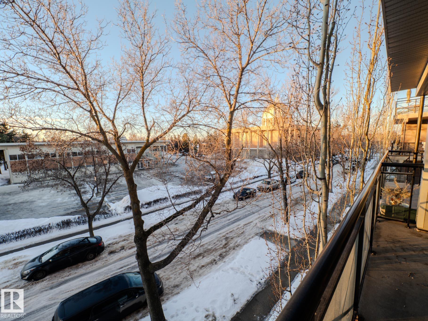 THIS IS SUCH A COOL BUILDING...ALMOST 700 SQ FT....THIS IS A LIFE STYLE...ATTN STUDENTS/PROFESSIONALS...~!WELCOME HOME!~ This 1 bed/1 bath condo in the highly sought-after Brownstones II sits on the 3rd floor and delivers 650 sq. ft. of smart, functional space--perfect for students, first-time buyers, or young professionals who want to be close to everything. The open-concept layout features a bright living room with floor-to-ceiling windows, plus patio access for some fresh air and sunshine. The kitchen brings the style with great cabinet space, open shelving, and a sleek black subway tile backsplash. You'll also love the in-suite laundry, a clean 4-piece bathroom, and a spacious bedroom with a mirrored double closet. This professionally managed building includes a gated courtyard, elevator, and assigned parking. Walkable, central, and dialed-in for lifestyle--minutes to U of A, transit, McKernan/Belgravia LRT, and just blocks from Whyte Ave, 109 Street, University Ave++