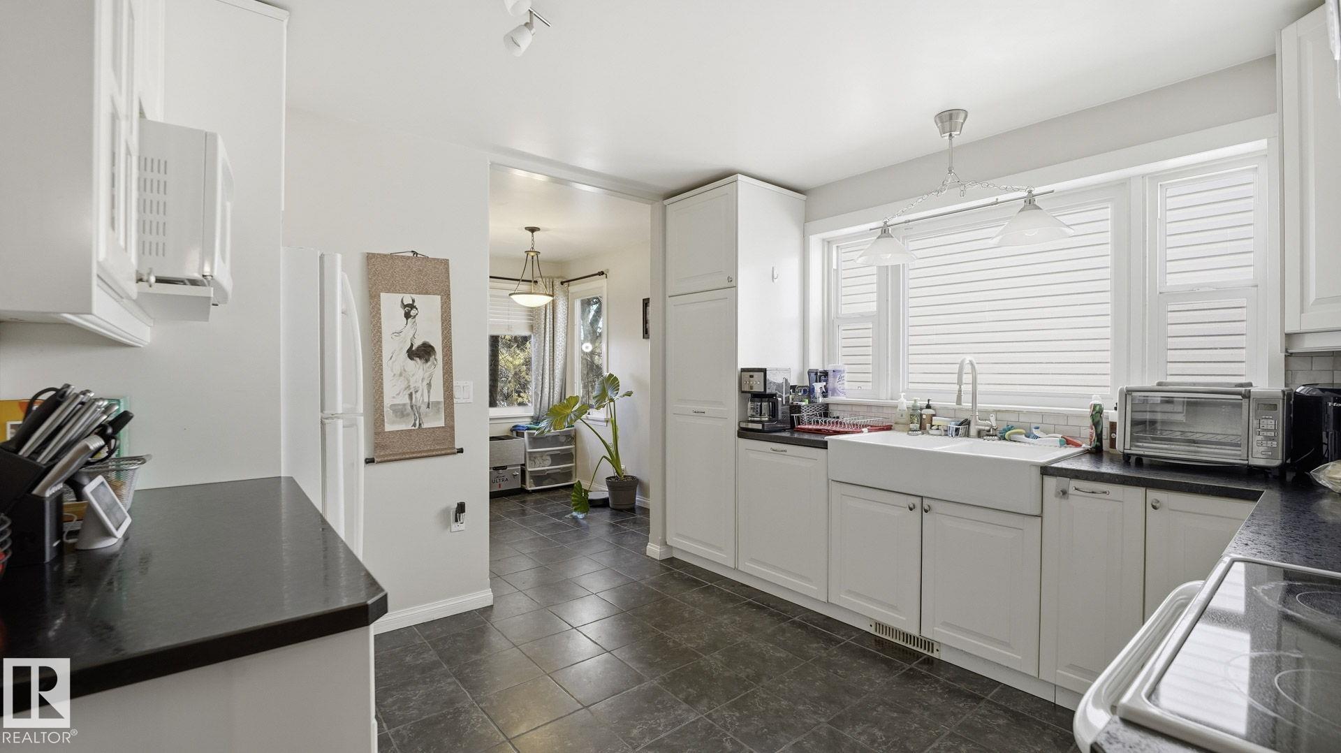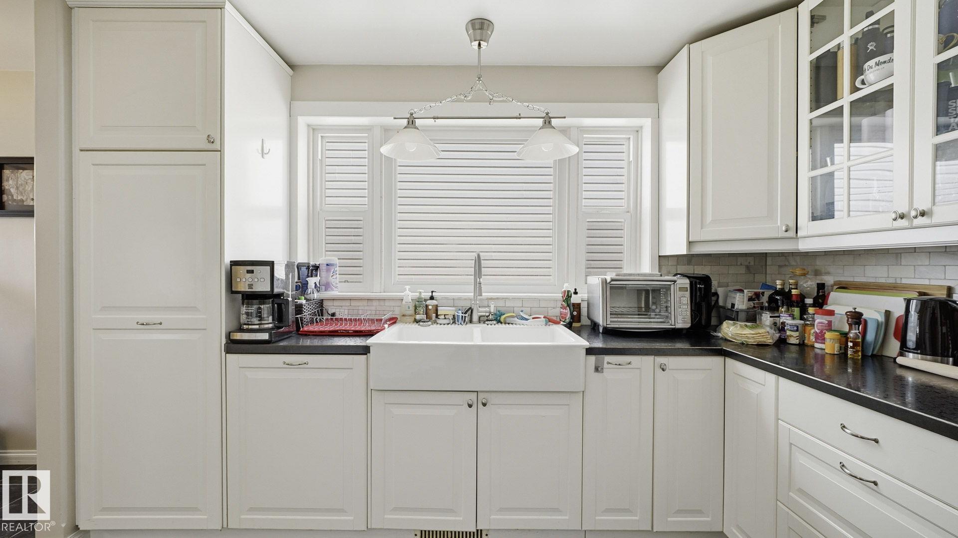 WELCOME TO QUEEN ALEXANDRA, located on a quiet, beautifully tree-lined street, this UPDATED BUNGALOW is complete with a 2-Bedroom IN-LAW suite. The property has had some significant updates over the years including: HI-EFF FURNACE, Window have all been replaced with Triple Glaze on the main & Double Glaze in the basement. Other notable updates: 100 amp electrical, plumbing, sump pump, weeping tile, insulation & Shingles(2015). Both the main floor & basement have beautiful updated Kitchens, Bathrooms & paint. Enjoy a Gas Fireplace in the spacious living room, with the cozy character of the coved ceilings. Located across the street from the Queen Alex playground this is a great family home, and with the in-law suite in the basement, it works great to have multi-generations of the family under one roof. Very close to the U of A, this could also make a great investment for your rental portfolio.