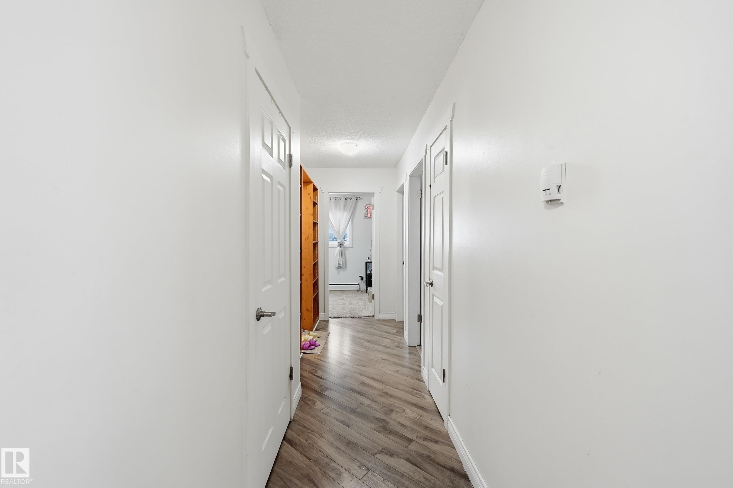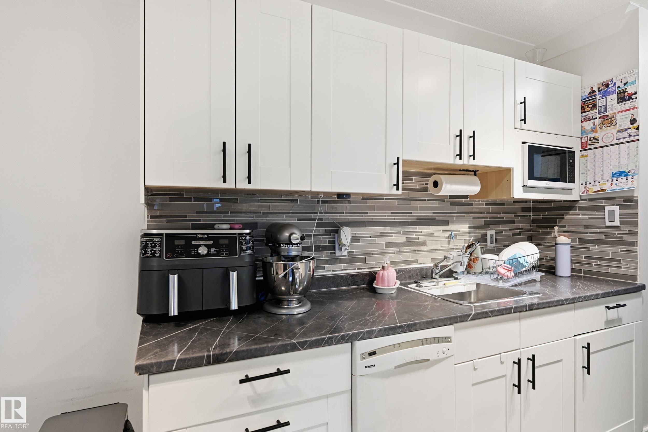 Welcome to Queen Mary Park, a centrally located community with quick access to NAIT, LRT, Downtown, and Grant Macewan. This top-floor, corner-unit 3-bedroom condo is light and bright, featuring south and west exposures and a quiet setting. Freshly painted throughout, the home offers modern flooring and a white kitchen with contemporary backsplash and updated countertops--perfect for entertaining. Enjoy excellent storage with insuite storage featuring built-in shelving and space for a small freezer, plus hallway bookcases ideal for display and organization. The spacious primary bedroom comfortably fits full-sized furniture, complemented by two additional bedrooms for family, guests, or a home office. Located in a non-smoking, pet-free building, this well-kept unit is ideal for comfortable, convenient city living.