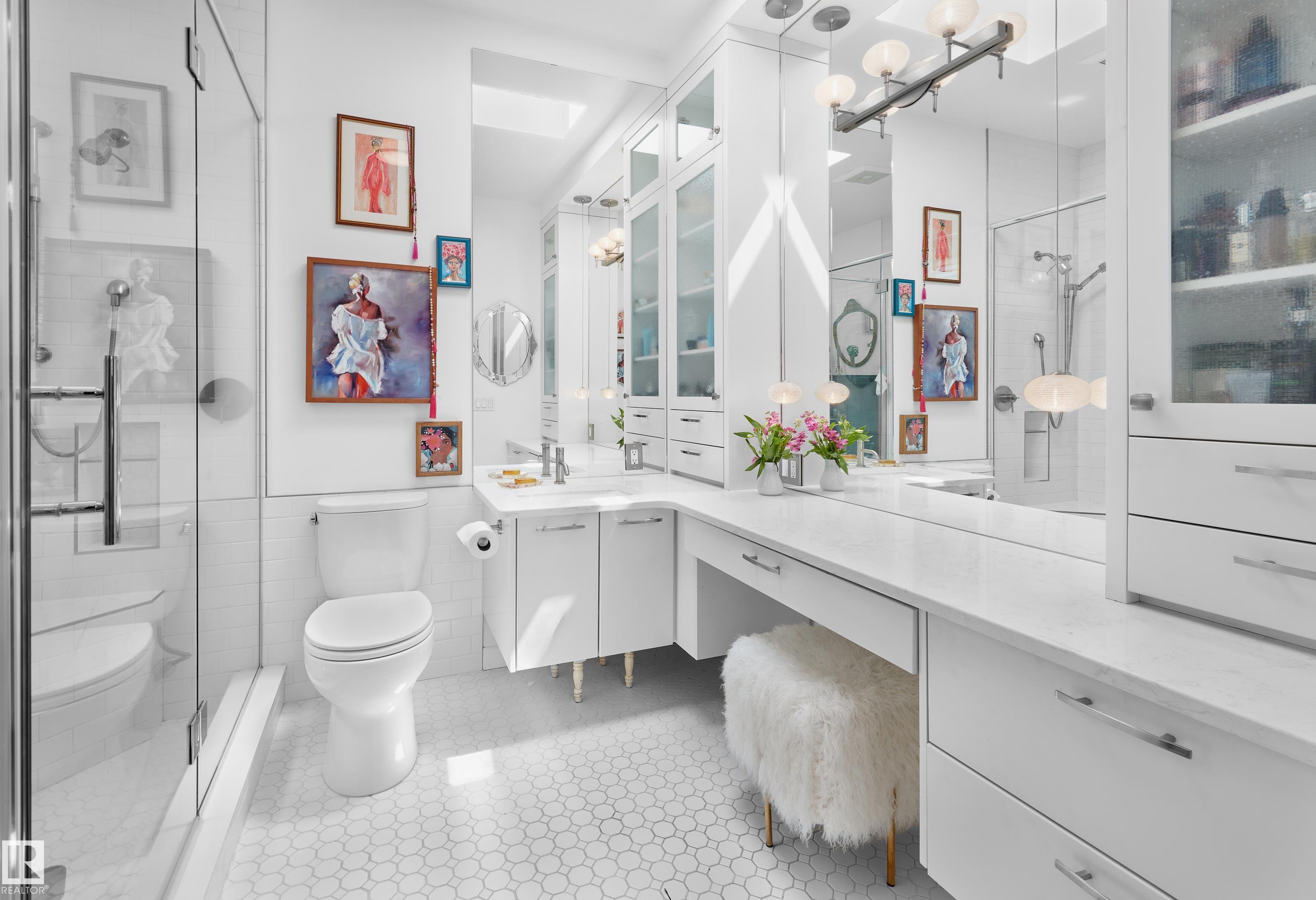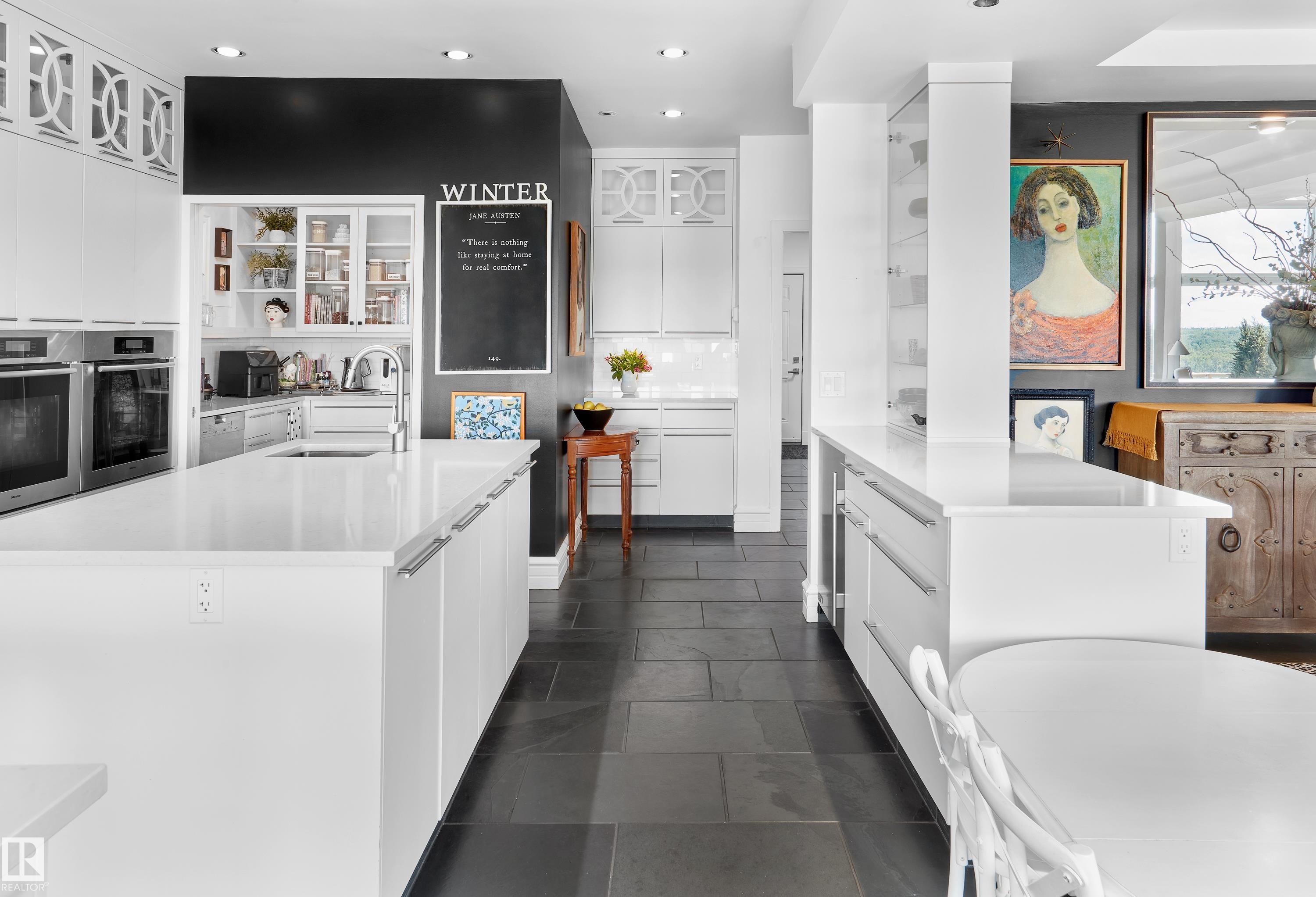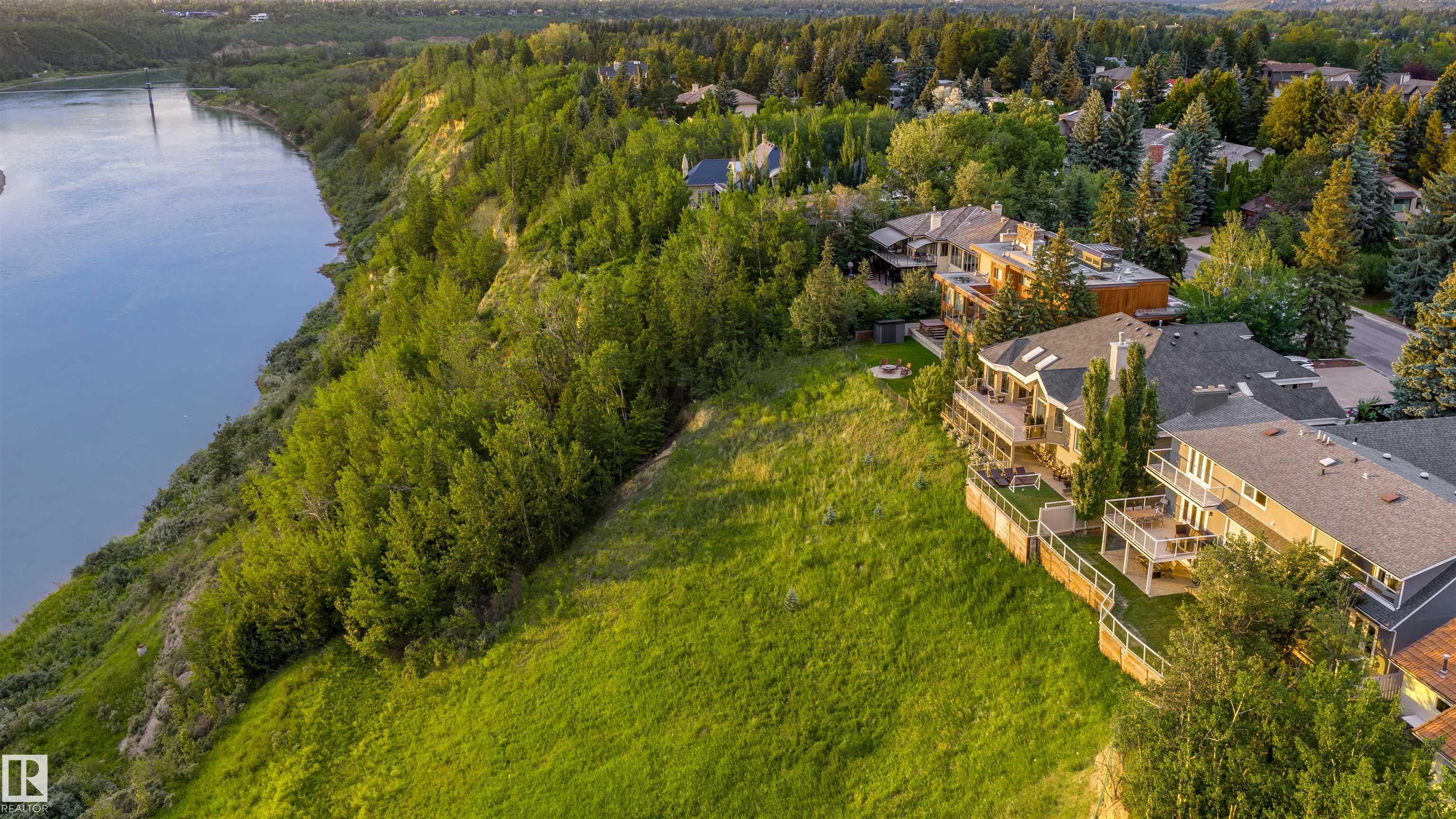 Designed for the executive, this walkout bungalow blends timeless elegance with modern comfort in prestigious Ramsay Heights. Nestled along the North Saskatchewan River with a west-facing yard, this brick home offers sunset views and a tranquil connection to nature. Exterior highlights include composite decking, exposed aggregate driveway and covered lower patio, artificial turf, and a private three-hole putting green. Inside, the custom kitchen features double islands, each with eat-up bars, double ovens, and a walk-in pantry, flowing into a spacious living area ideal for entertaining. The home offers two plus two bedrooms and four full baths, including a luxurious five-piece ensuite with a dream walk-in dressing room closet. Laundry on both levels adds convenience, and the triple attached garage provides direct interior access. A rare opportunity to live on the bank of Edmonton's most iconic riverfront settings.