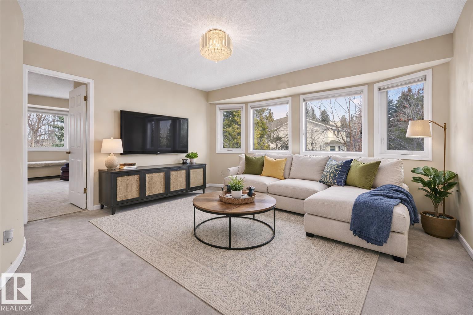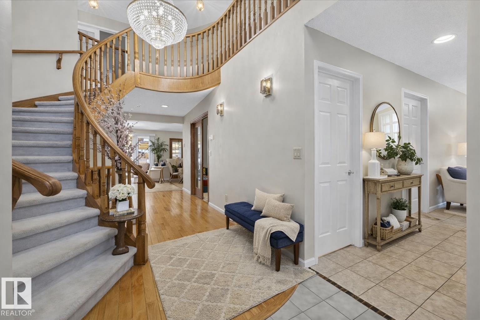 Experience refined living in Rhatigan Ridge, one of Edmonton's safest and most established communities. This solid 3,638 sq. ft. home sits on a massive lot with a south-facing backyard backing directly onto the ravine, offering sun-drenched privacy and immediate access to scenic walking trails. Located on a quiet street with local traffic only, it provides an exceptional and secure setting for families. The main floor is designed for grand-scale entertaining, featuring a formal living room, dining, an expansive granite kitchen, and a family room with a fireplace. The highlight is the four-season sunroom, positioned to capture southern sun and ravine views year-round. The upper level offers a rare layout featuring 4 spacious bedrooms, a large family bonus room, and a second den--which, combined with the main floor office, provides two dedicated workspaces. With top-rated schools, a triple car garage, and updates like a newer roof, windows, and furnaces, this home is a premier opportunity.