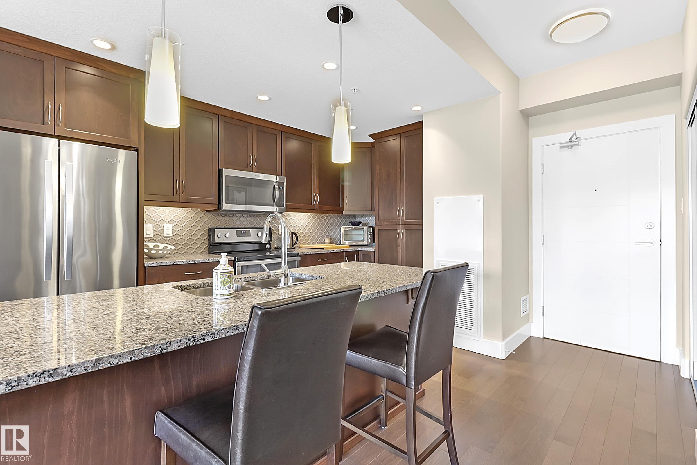 SIDE BY SIDE UNDERGROUND PARKING AND STORAGE! Affordable Luxury at The Escapes in Richford! Bright and modern open-concept condo featuring a stylish kitchen with plenty of cabinetry, stainless steel appliances, and a large island. The living room opens to a large balcony, perfect for summer evenings. The primary suite offers a walk-through closet and a large ensuite. There is a spacious second bedroom, full second bath, and in-suite laundry with storage. Includes two titled heated underground parking stalls--one with a storage unit. Prime location near Ellerslie Road, Anthony Henday, shopping, and dining. Priced to sell!