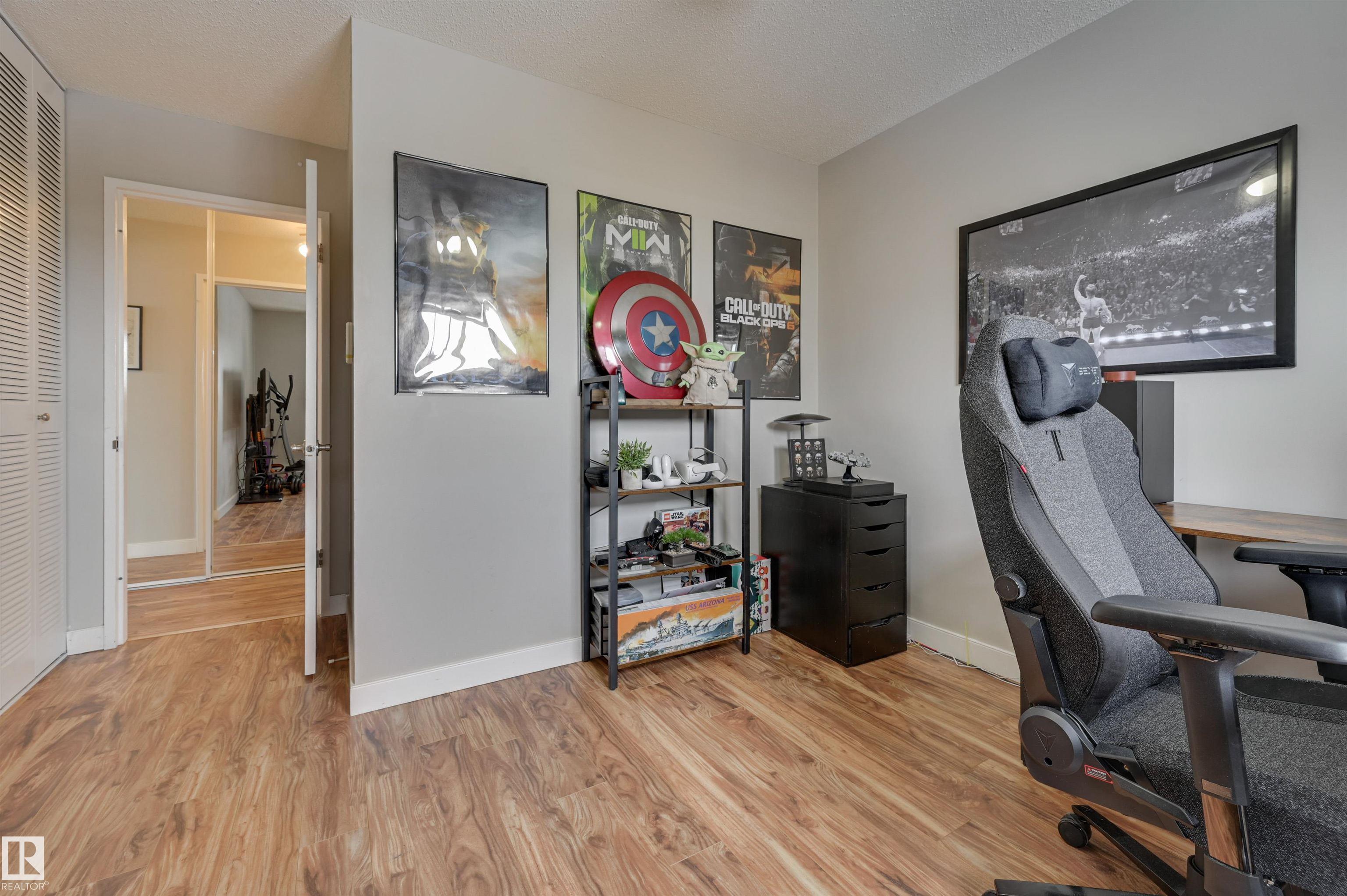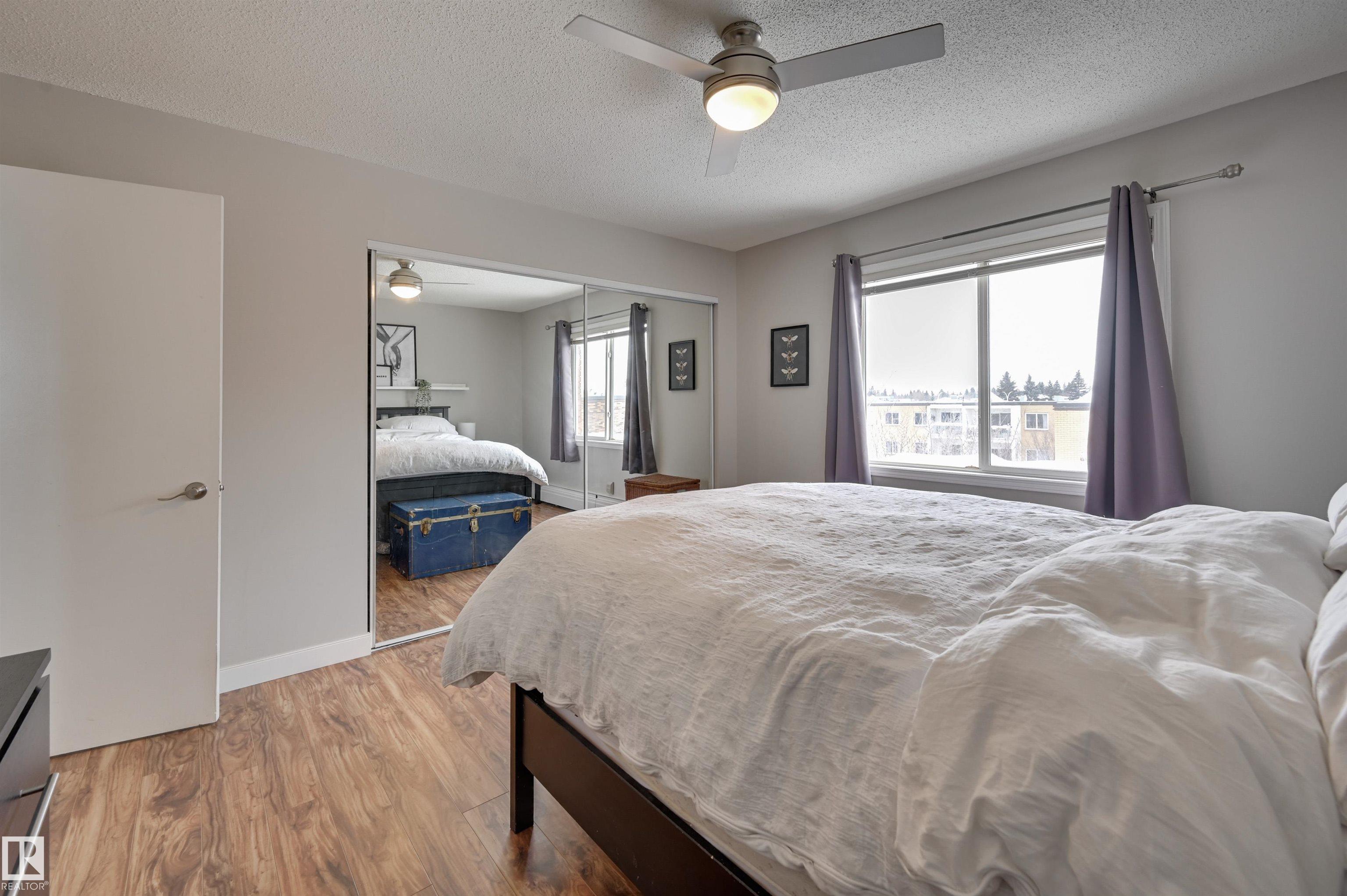 Top floor 2 bedroom + 1 bathroom is 911 sq.ft. in the mature neighbourhood of Royal Gardens. The condo has in-suite laundry, energized stall parking, assigned storage cage, gym and social/guest room. This end unit has a generous balcony that overlooks the west facing courtyard. Complex is pet friendly (requires board approval).