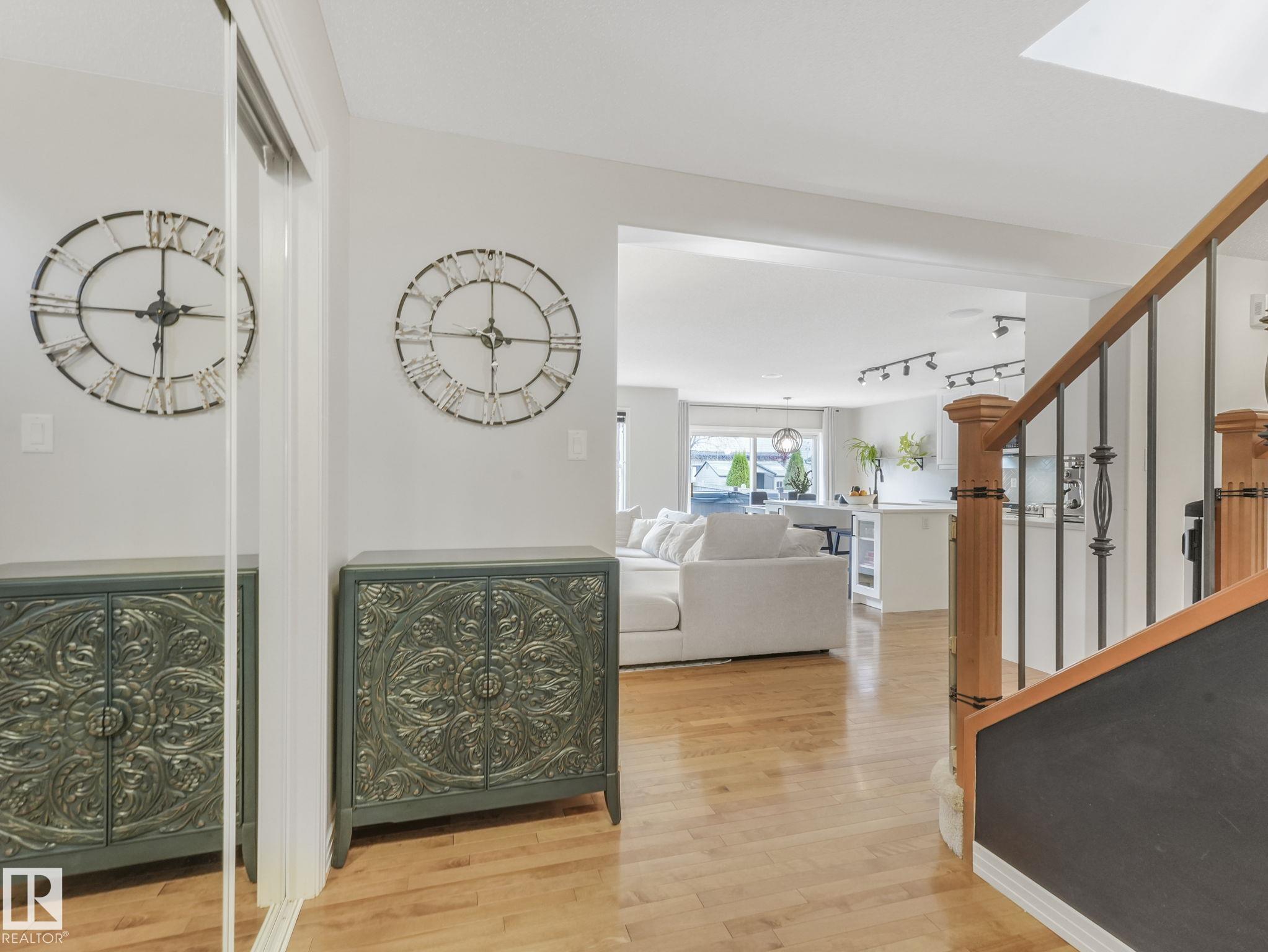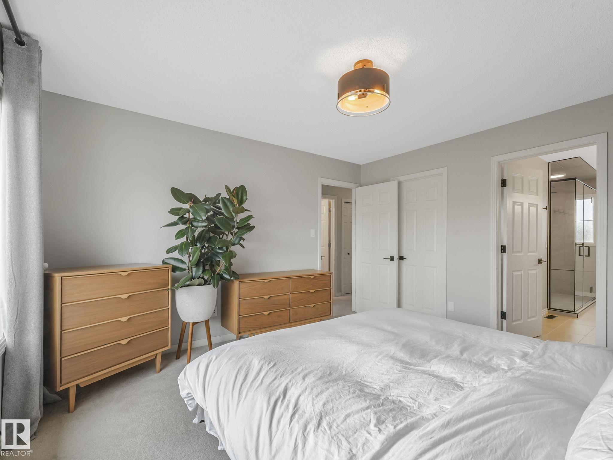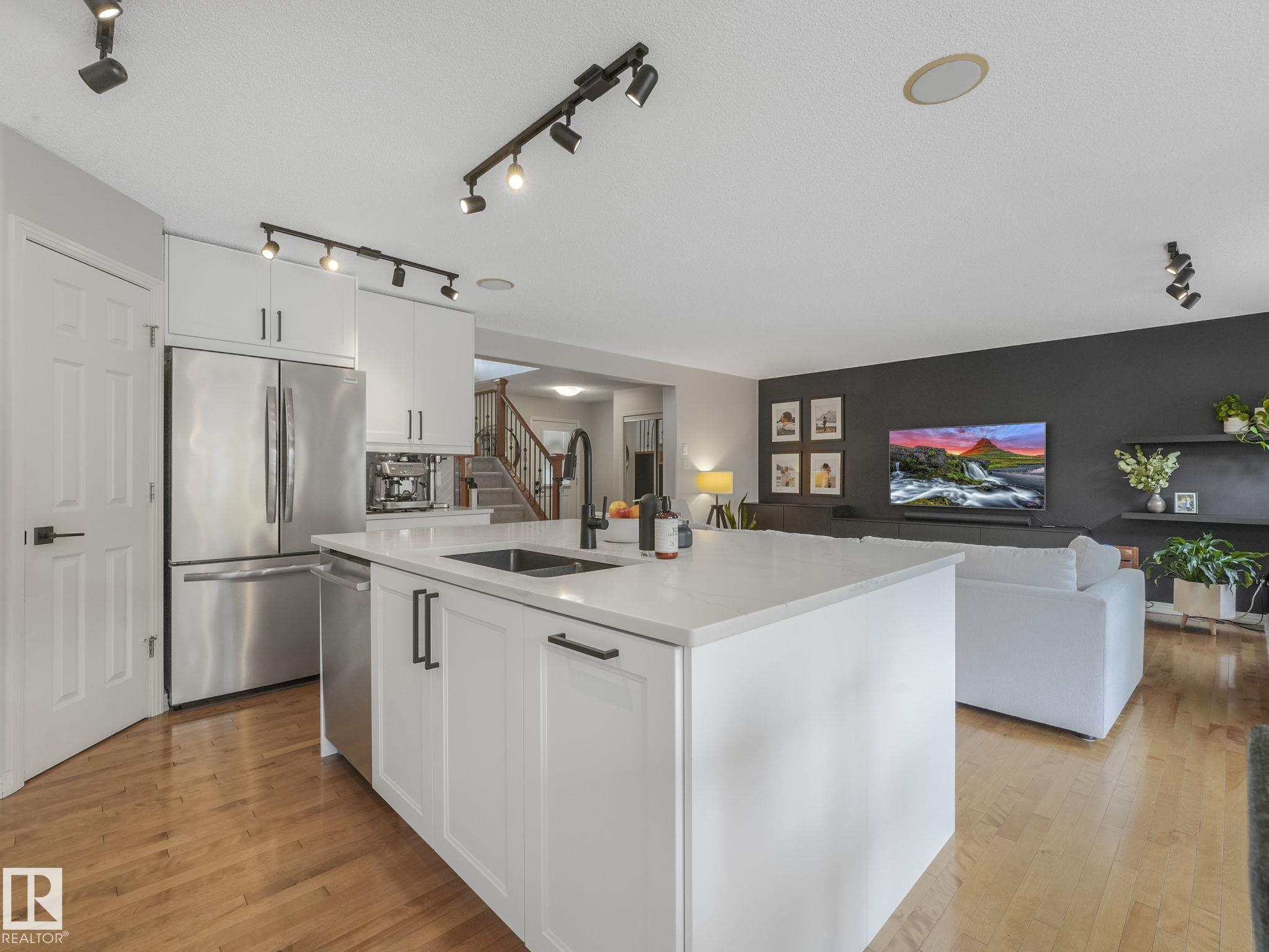 Beautifully updated and exceptionally maintained 2-storey home in desirable South Terwillegar, offering 1,892 sq ft of open-concept living. Featuring 4 bedrooms and 3.5 baths, this home now showcases a fully renovated kitchen with modern cabinetry, quartz counters, tile backsplash, and newer stainless-steel appliances. The primary ensuite has been completely redone with elegant finishes, adding a true spa-like retreat. Additional upgrades include new windows, R70 attic insulation, updated lighting, paint, and a new hot water tank. The main floor offers a bright living room with gas fireplace, hardwood floors, and main-floor laundry. Upstairs you'll find 3 spacious bedrooms and a vaulted bonus room with sunset views. The fully finished basement adds a family room, 4th bedroom, and 3-pc bath. Enjoy the east-facing yard with a two-tier deck and shed. The garage is insulated and drywalled. Move-in ready with A/C and many thoughtful updates throughout!