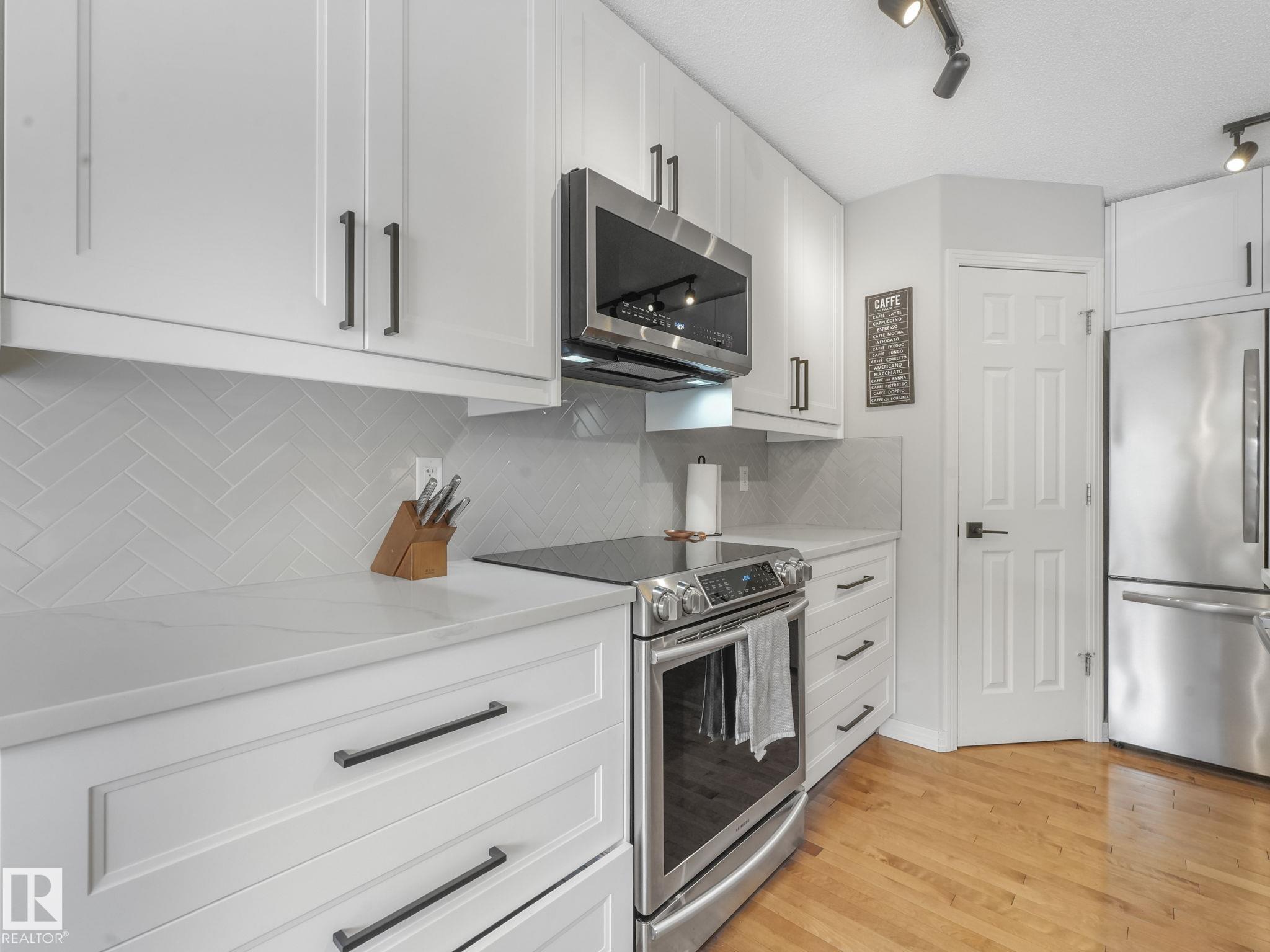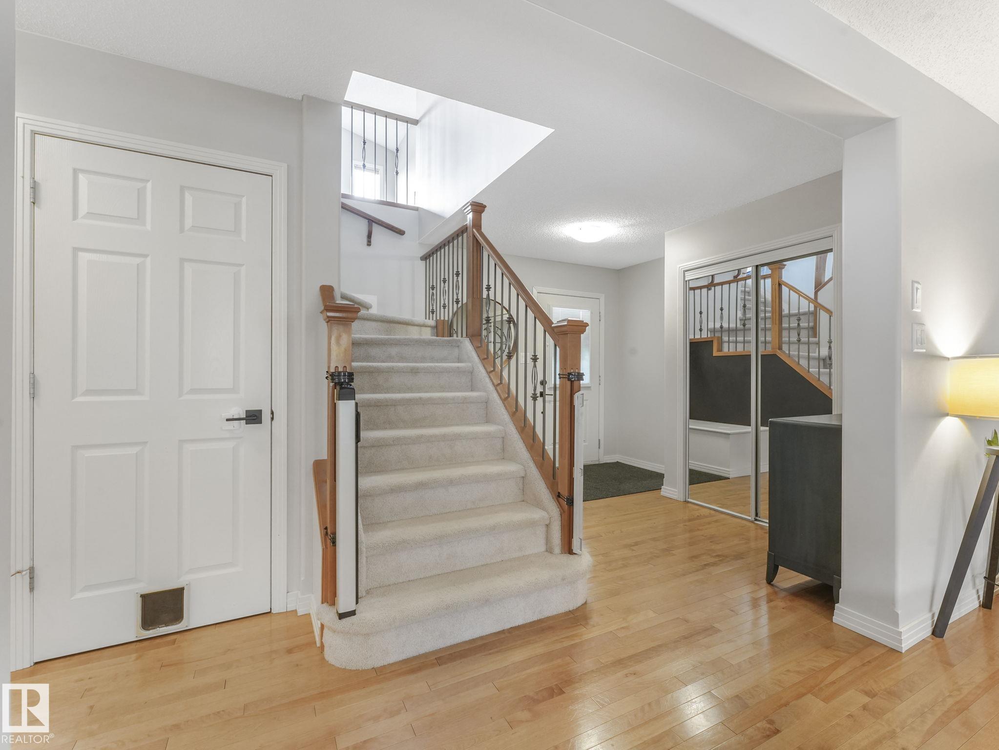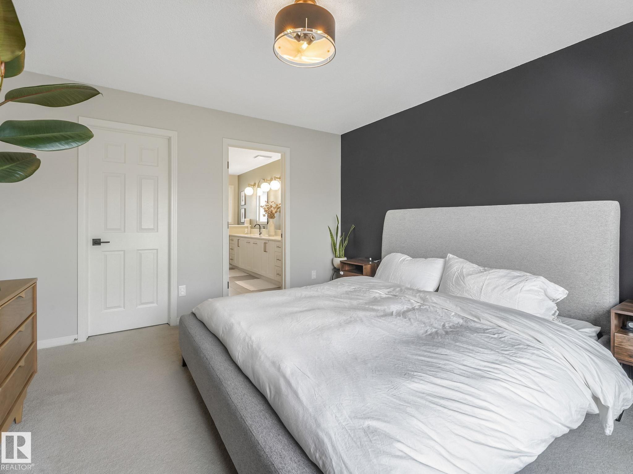 Beautifully updated and exceptionally maintained 2-storey home in desirable South Terwillegar, offering 1,892 sq ft of open-concept living. Featuring 4 bedrooms and 3.5 baths, this home now showcases a fully renovated kitchen with modern cabinetry, quartz counters, tile backsplash, and newer stainless-steel appliances. The primary ensuite has been completely redone with elegant finishes, adding a true spa-like retreat. Additional upgrades include new windows, R70 attic insulation, updated lighting, paint, and a new hot water tank. The main floor offers a bright living room with gas fireplace, hardwood floors, and main-floor laundry. Upstairs you'll find 3 spacious bedrooms and a vaulted bonus room with sunset views. The fully finished basement adds a family room, 4th bedroom, and 3-pc bath. Enjoy the east-facing yard with a two-tier deck and shed. The garage is insulated and drywalled. Move-in ready with A/C and many thoughtful updates throughout!