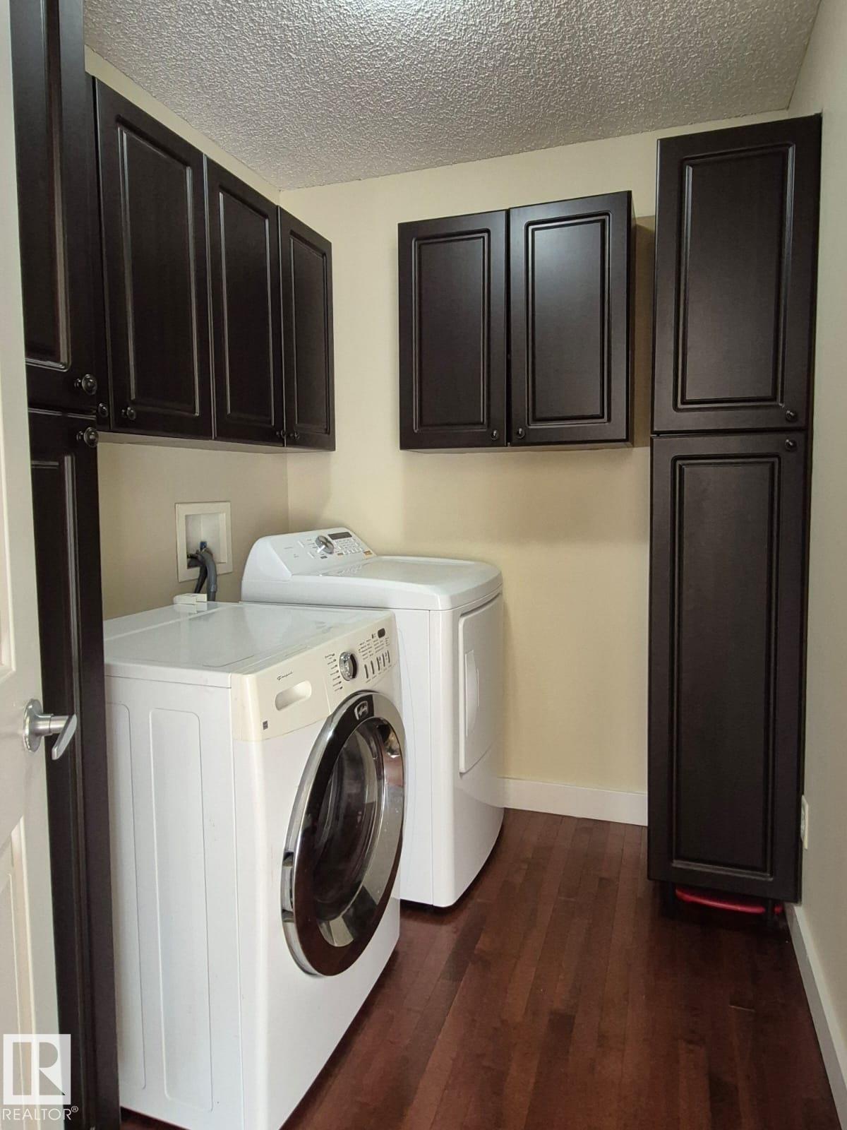 A great family home! On a quiet side street in South Terwillegar, this OUTSTANDING 2,053 sq.ft. with a professionally finished basement provides over 2,800 sq ft of quality living. The bright open plan provides 17' high ceilings at the front entrance and includes a great kitchen, large eating nook, a spacious main floor Great Room, a HUGE Bonus Room over the garage. The 3 bedrooms on the upper level are large and the master bedroom provides and a luxury 5 piece ensuite. Other highlights include hardwood/tile flooring, maple and iron railings, and a prof. finished basement with Rec Room, a 4th bedroom, and 3 piece bath with a custom walk in shower (should be in a designer magazine)! The west facing yard backs onto a walkway and provides all landscaping, extra storage and a large deck. This house freshly painted, new dryer, few new blinds, new fridge, new showerheads in all bathrooms, deck done in 2023,newer hot water tank,carpet replaced in 2021,new garage door and much more. A must see!