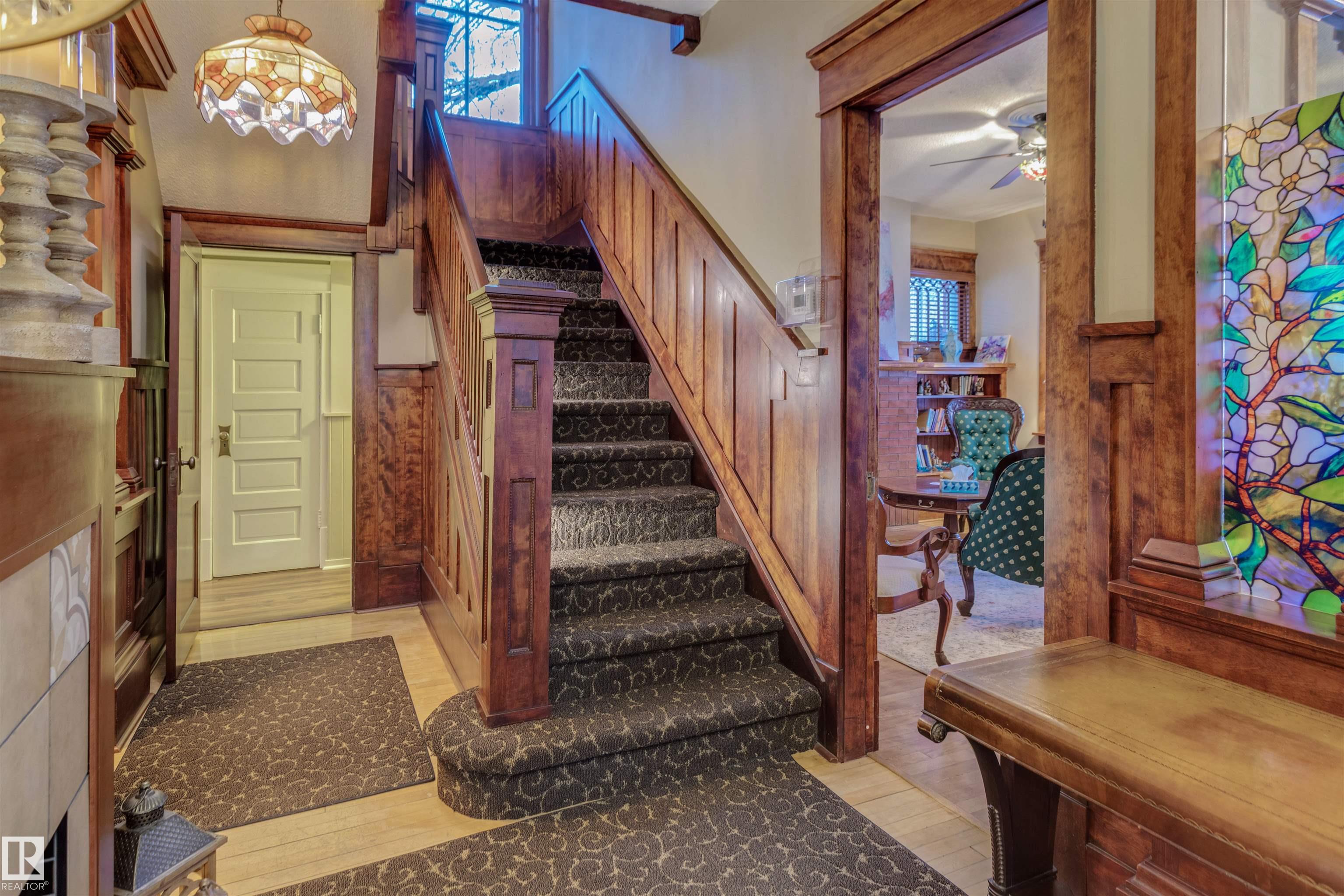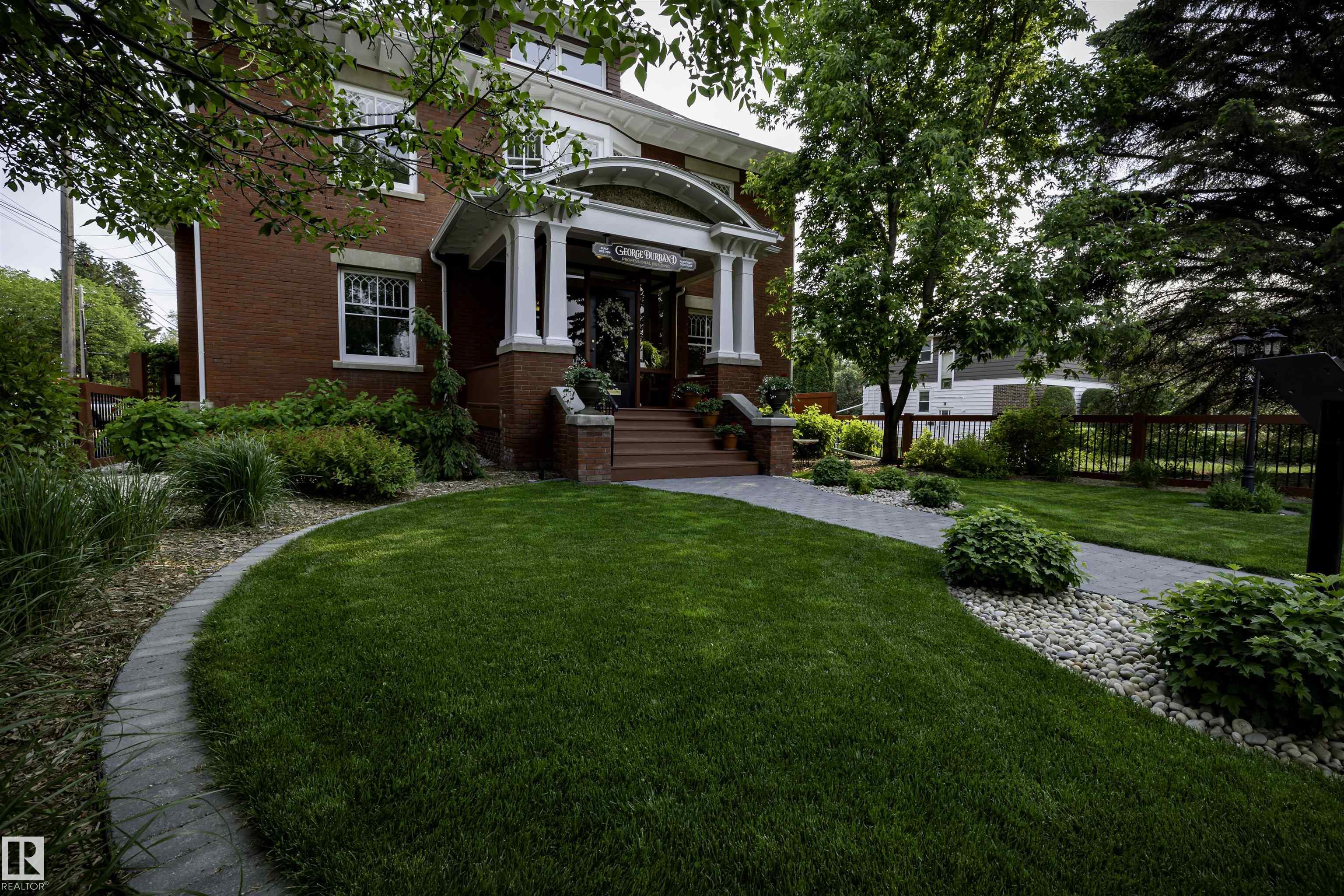 Step into history and embrace modern sophistication. The George Durrand Residence (lot A 4972.8 sqft). This Municipal Historic Resource, built in 1913, is restored to the highest standards and is eligible for a maintenance grant every five years.This stately brick manor presents stunning woodwork, French doors, tall windows, multiple fireplaces, 3 bathrooms, a kitchen and expansive formal spaces. With a developed basement and enclosed sunrooms, it currently serves as eleven professional office spaces, ideal for professionals across diverse industries. Lane way access to freshly paved 14-stall parking lot, upgraded mechanical systems, underground sprinklers, historic lamp posts, Hunter Douglas blinds and beautifully landscaped grounds with landscape lighting. Offering River Valley and city views, this turnkey property is a blend of historic charm and modern convenience. A timeless masterpiece with endless possibilities! Additional development potential on rear lot B (4893.4 sqft)10416 - 87 Avenue NW.