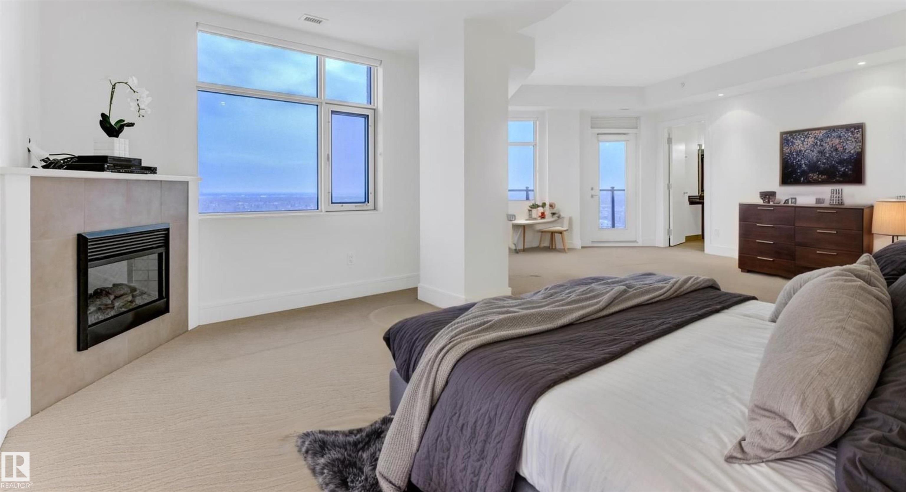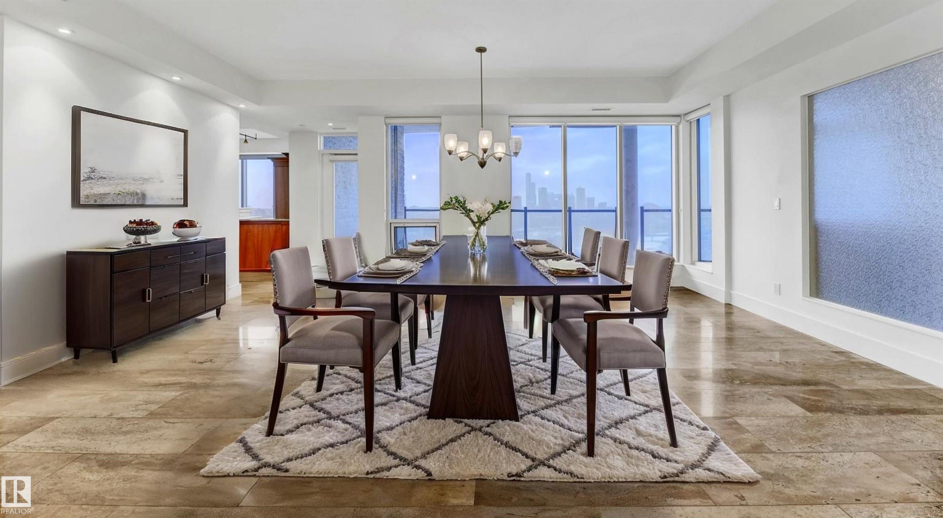 One River Park, Edmonton's most prestigious private residence. This full-floor penthouse on the 19th floor offers stunning 360-degree views of downtown, the North Saskatchewan River, & iconic landmarks, with three expansive balconies to take it all in. Designed for elegance & comfort, the home features floor-to-ceiling windows, a grand foyer, formal living & dining areas, & a gourmet chef's kitchen with premium appliances, granite countertops, & custom cabinetry. A bar area, breakfast nook, & walk-in pantry only add to daily convenience. The primary suite is a true retreat, boasting 2 spa-inspired ensuites & 2 dressing rooms. Two more bedrooms each have access to a bath, while a media room with a two-sided F/P & a dedicated office. Additional features include a private elevator access that opens directly into the suite, in-suite laundry, built-in central vacuum, ample storage, central A/C, a heated underground garage that offers 5 parking stalls, including an enclosed 3 car garage & 3 storage lockers.