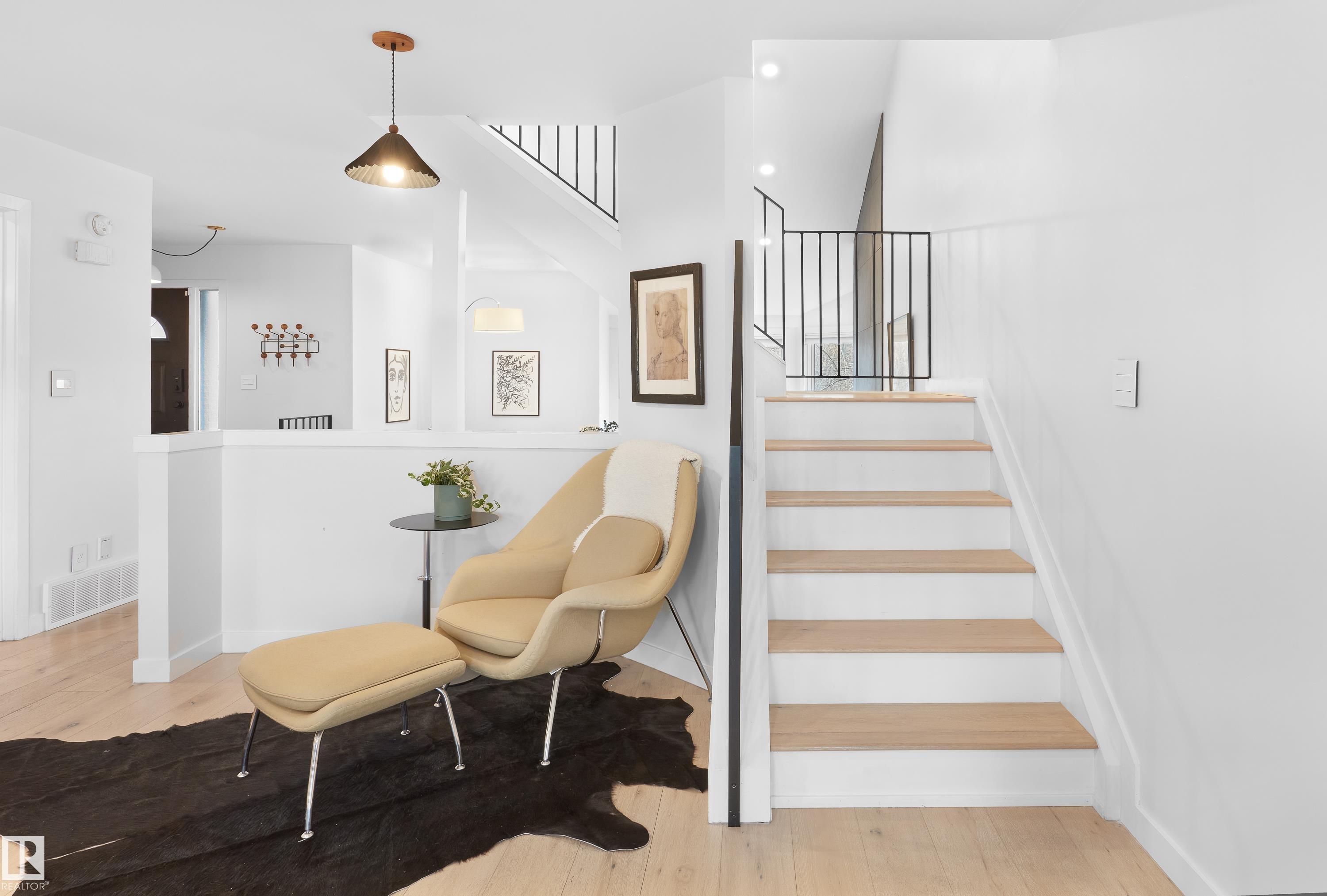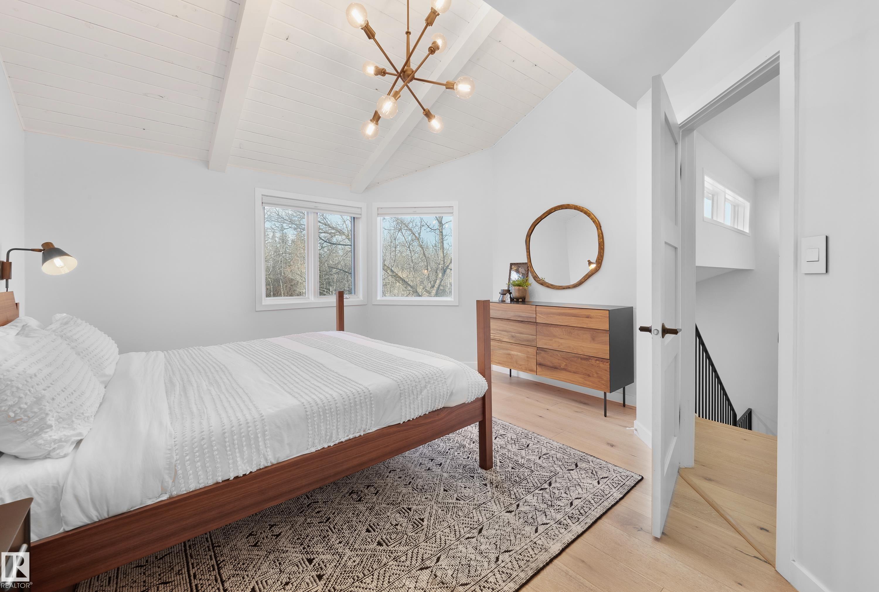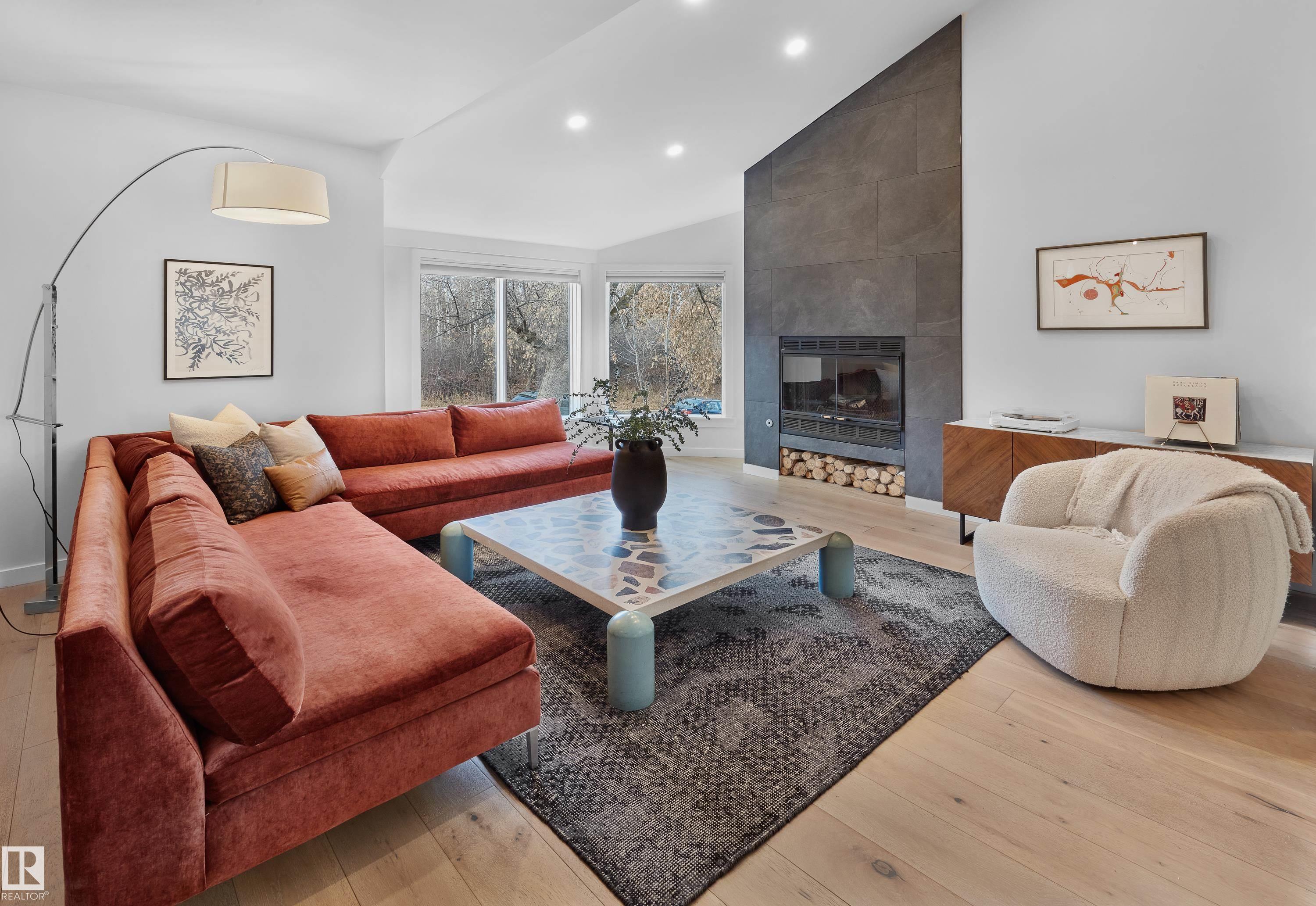 Fully renovated ravine-side living in the heart of Strathcona! Facing trees with walking trails just steps away, this 4-bed, 2.5-bath home blends modern updates with an unbeatable location. The main floor offers an open-concept layout with vaulted ceilings, a cozy wood-burning fireplace, and a spacious dining area that flows to a large deck overlooking the ravine. The renovated kitchen features quartz counters and stainless steel appliances. Upstairs, you'll find a generous primary bedroom with vaulted ceilings and a massive semi-ensuite full bathroom, plus two additional bedrooms. The fully finished walkout basement includes a rec room, wet bar, full bathroom, 4th bedroom, and access to the rear attached garage. Key upgrades include roof (2021), siding (2021), a newer furnace, & HWT (2024), and a full interior renovation. All of this is just minutes to Downtown, Whyte Ave, the U of A, and some of Edmonton's best parks, cafes, and restaurants. Ravine living without leaving the city!