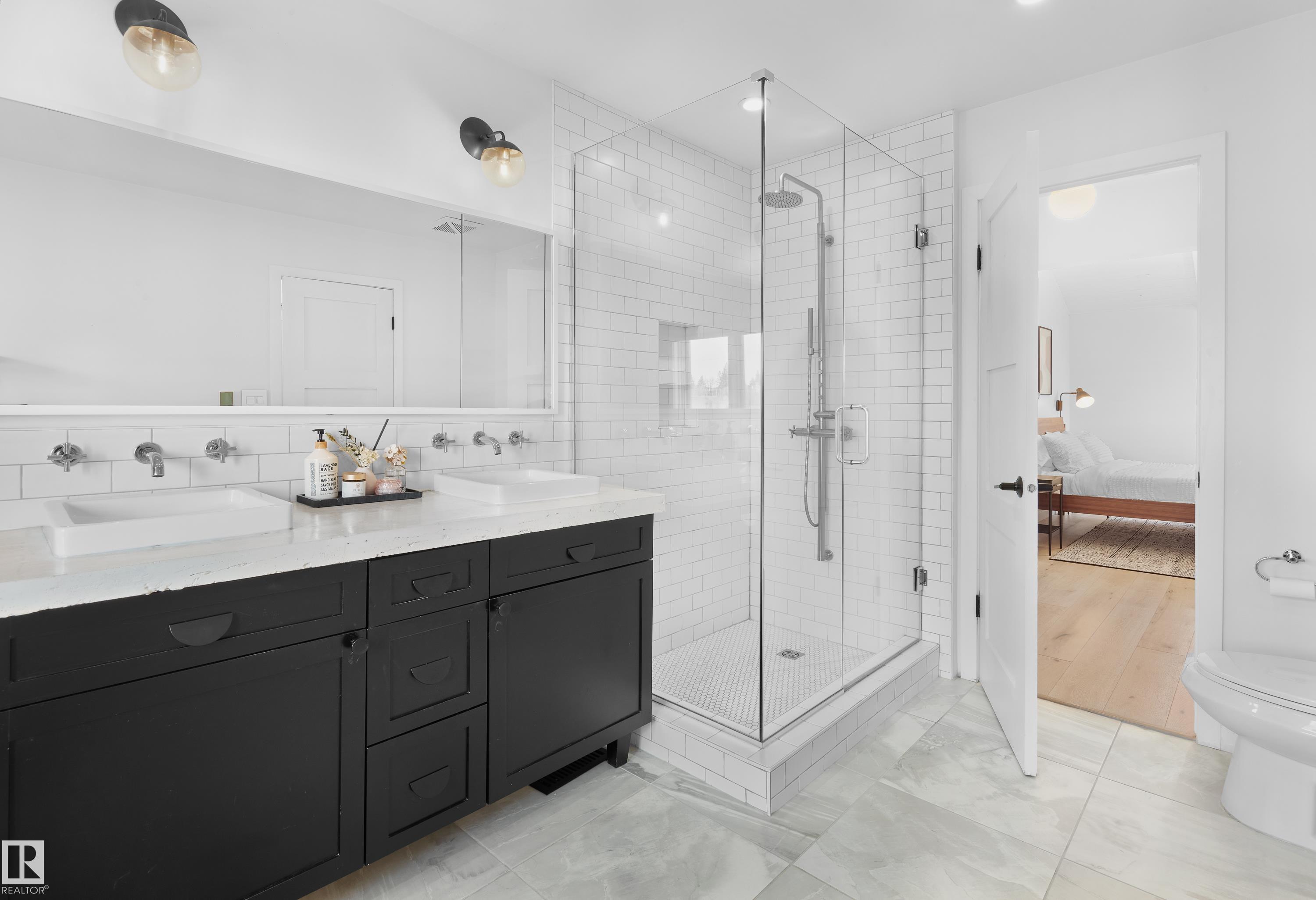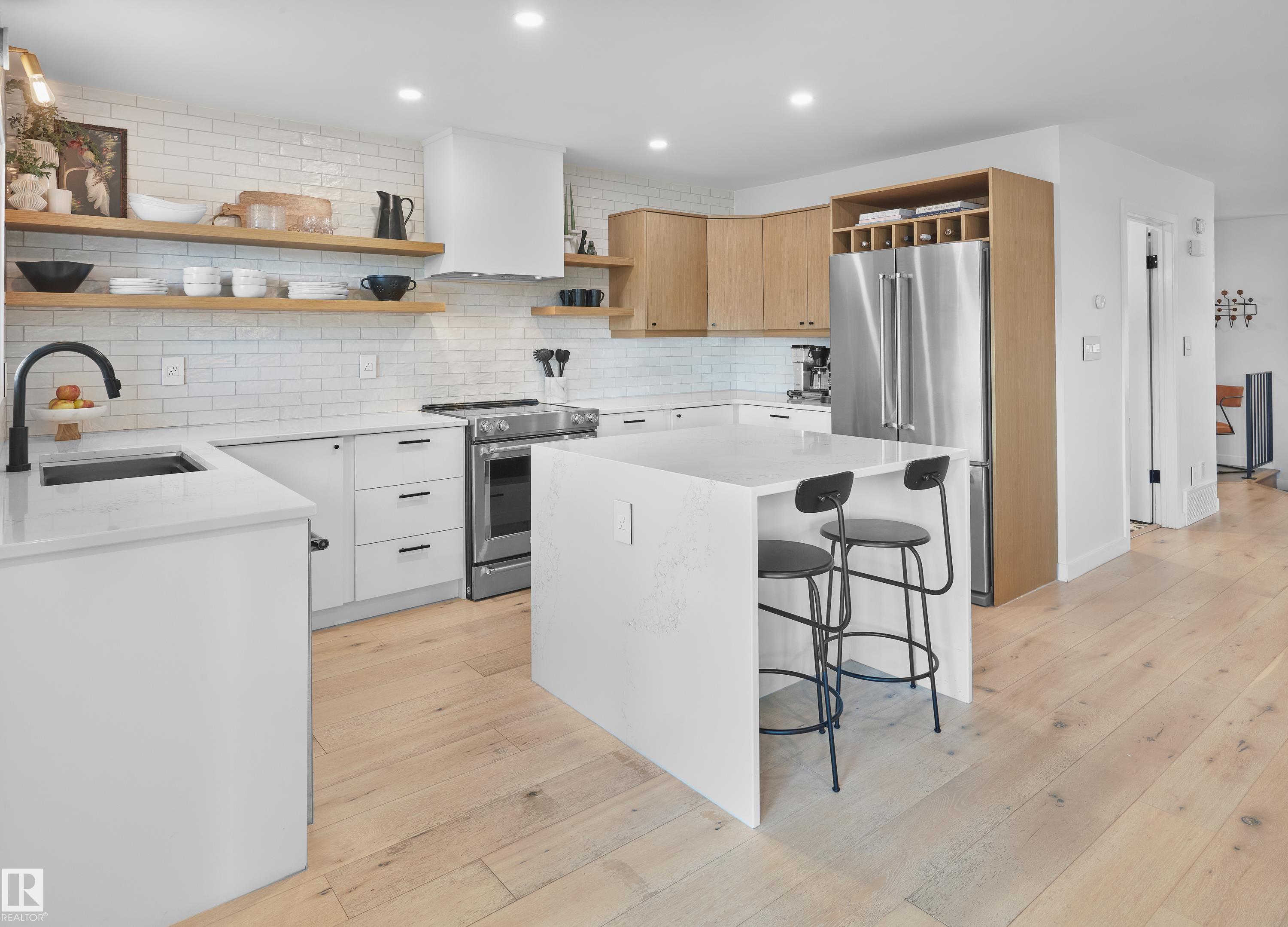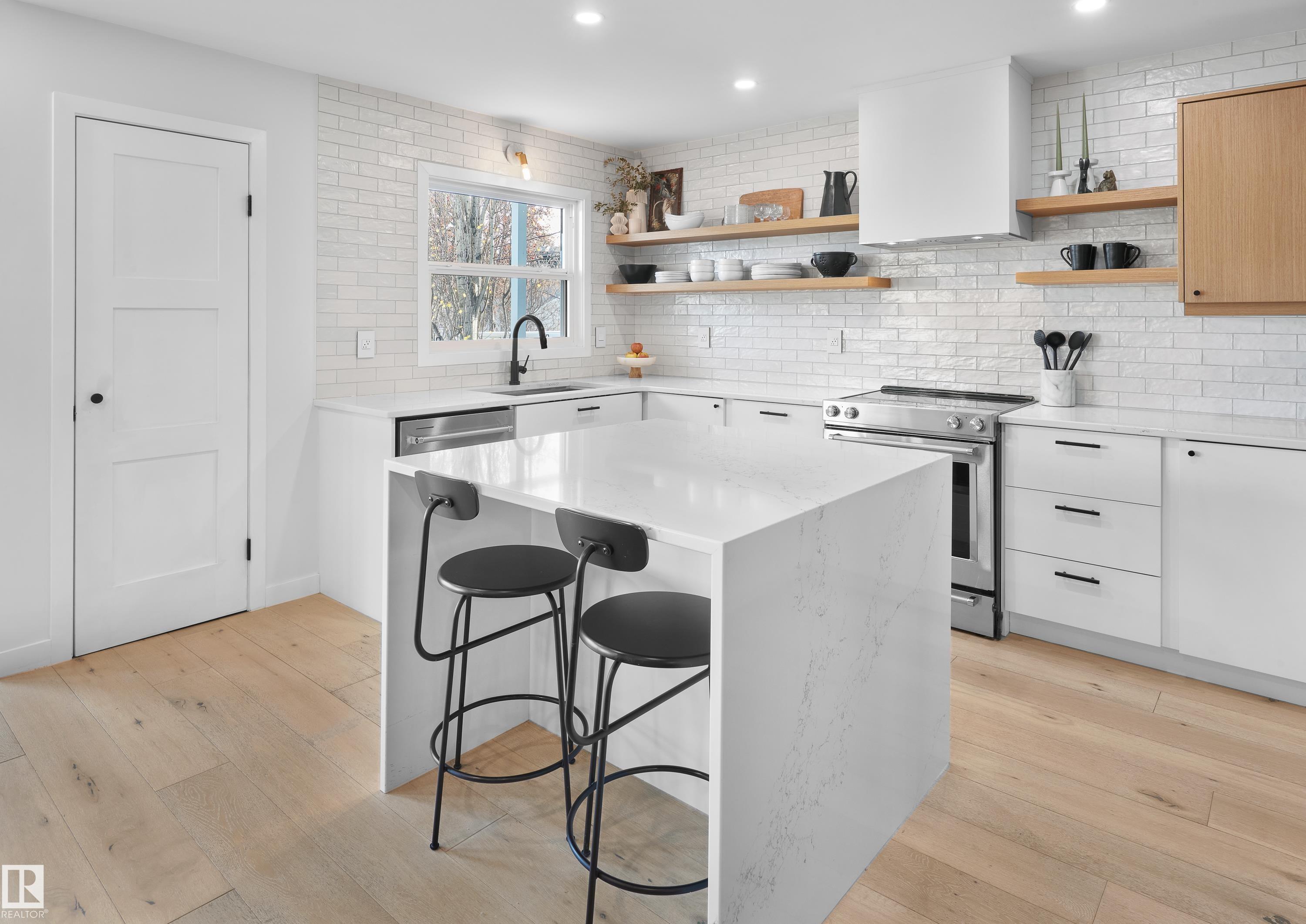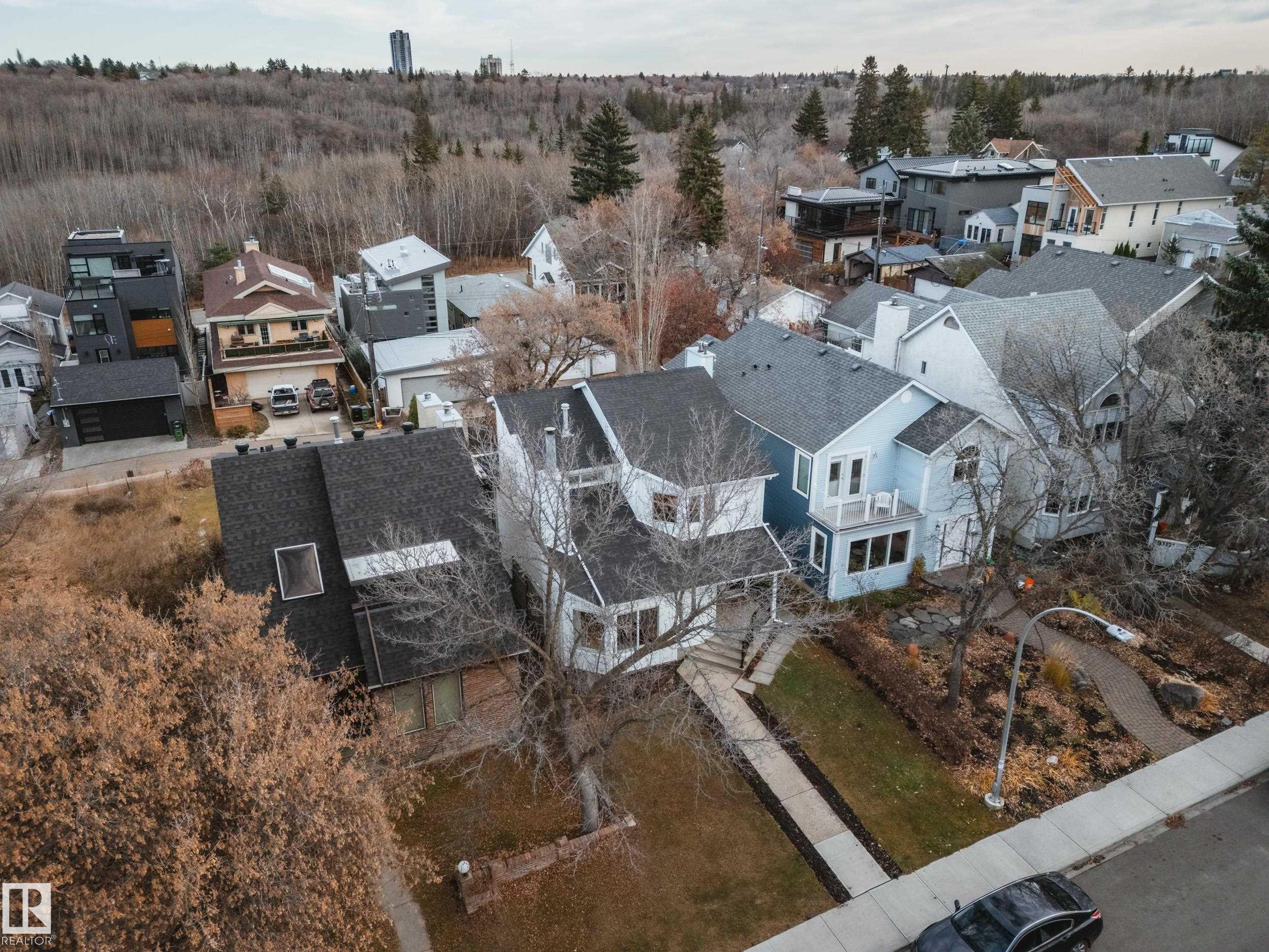 Fully renovated ravine-side living in the heart of Strathcona! Facing trees with walking trails just steps away, this 4-bed, 2.5-bath home blends modern updates with an unbeatable location. The main floor offers an open-concept layout with vaulted ceilings, a cozy wood-burning fireplace, and a spacious dining area that flows to a large deck overlooking the ravine. The renovated kitchen features quartz counters and stainless steel appliances. Upstairs, you'll find a generous primary bedroom with vaulted ceilings and a massive semi-ensuite full bathroom, plus two additional bedrooms. The fully finished walkout basement includes a rec room, wet bar, full bathroom, 4th bedroom, and access to the rear attached garage. Key upgrades include roof (2021), siding (2021), a newer furnace, & HWT (2024), and a full interior renovation. All of this is just minutes to Downtown, Whyte Ave, the U of A, and some of Edmonton's best parks, cafes, and restaurants. Ravine living without leaving the city!