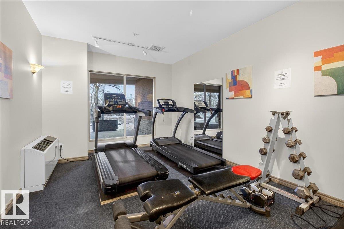 DOWNTOWN & RIVER VALLEY VIEWS from sunrise to sunset in this impeccably well kept corner unit. Praise the ample space, at 1053 sq.ft the 2 bedrooms are spacious and each come with large closets and ensuites. Other perks: Natural Gas BBQ hookup on the balcony, electric fireplace, in-suite laundry, underground parking, AIR-CONDITIONING, main floor gym, and low condo fees ($689.96). Neighbouring the UofA, Downtown, Whyte Ave and the River Valley trails right out your front door makes this more than your typical condo
