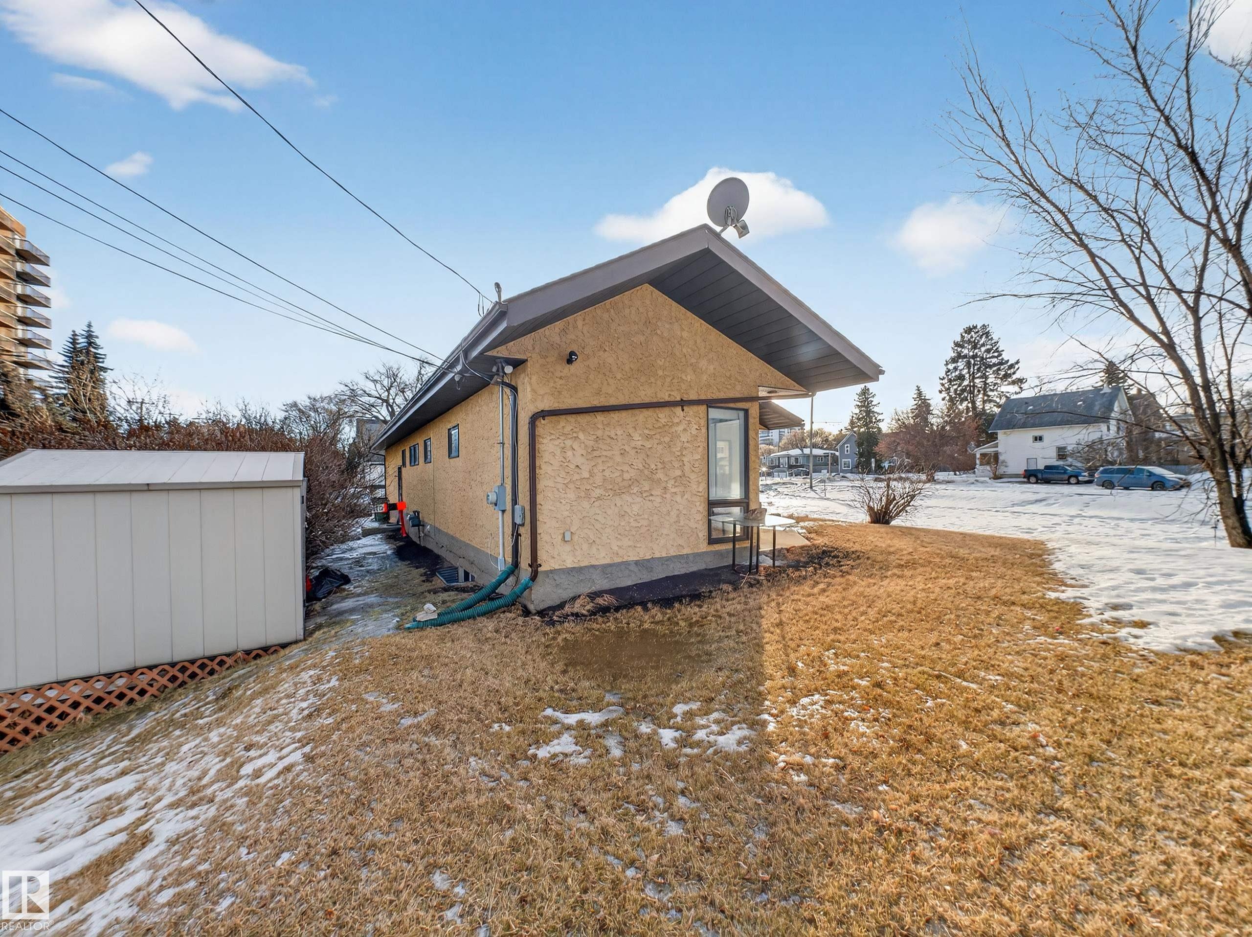 RESIDENTIAL USE/COMMERCIAL USE/COMMUNITY USE....LIKE OWNING YOUR OWN ISLAND IN THE HEART OF THE CITY...STEPS TO THE RIVER VALLEY...RARE RL ZONING! ~!WELCOME HOME!~ This incredible property offers the best of today AND tomorrow! Currently featuring a character 2 bedroom home PLUS a FULLY SELF-CONTAINED 2 bedroom basement with kitchen & separate entrance--But the REAL MAGIC is the setting...massive parcel surrounded by green space, breathtaking views, and the iconic Edmonton Streetcar rolling by--this is city living with soul! Zoned RL - Large Scale Residential, opening the door to future redevelopment, expansion, or long-term hold potential. The land, the privacy, the options...all just steps to the River Valley, trails, Whyte Ave, and minutes to downtown & the University. Live in it, rent it, or re-imagine it--opportunities like this are once in a generation! THE LOT IS APPROX 6500 SQ FEET.