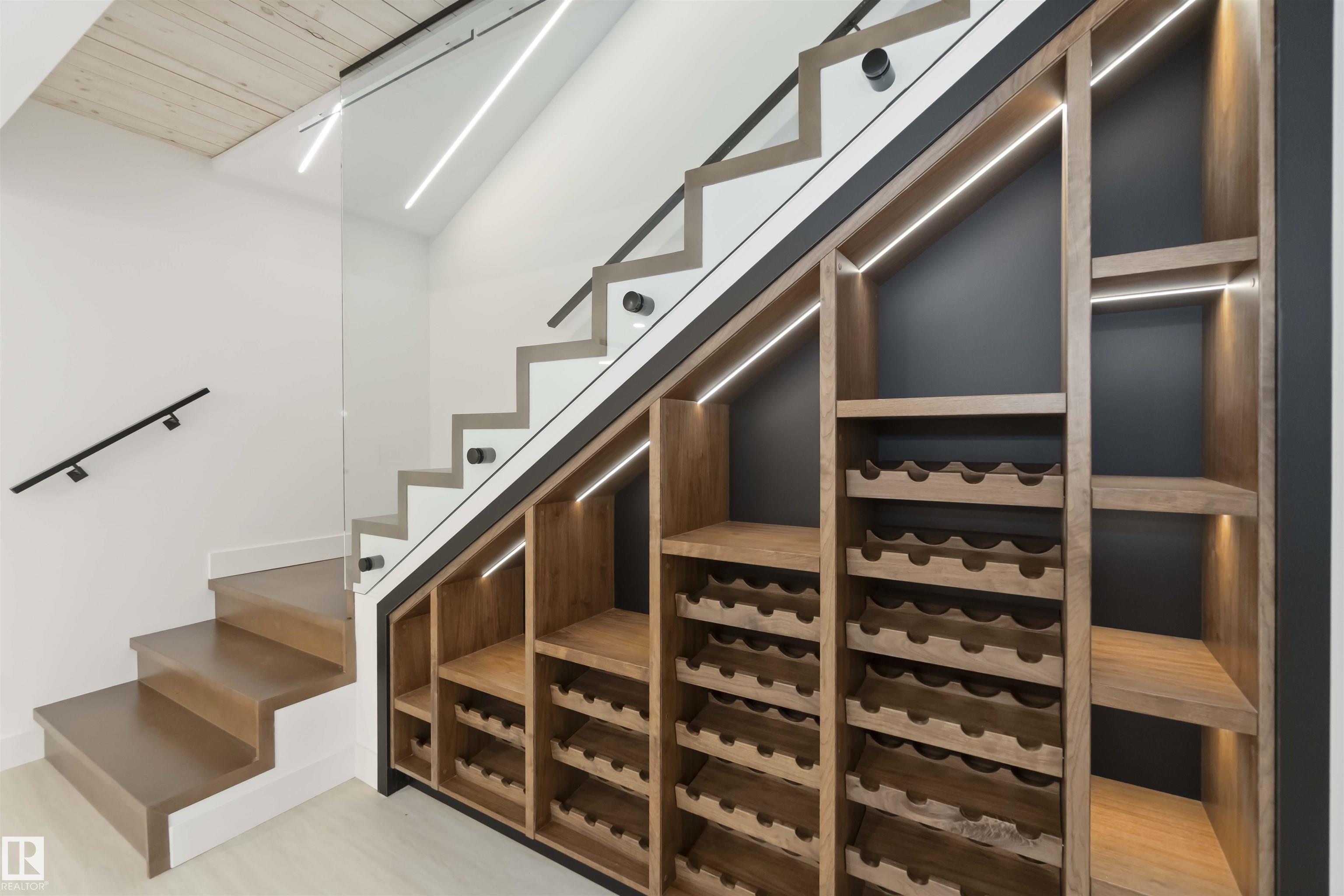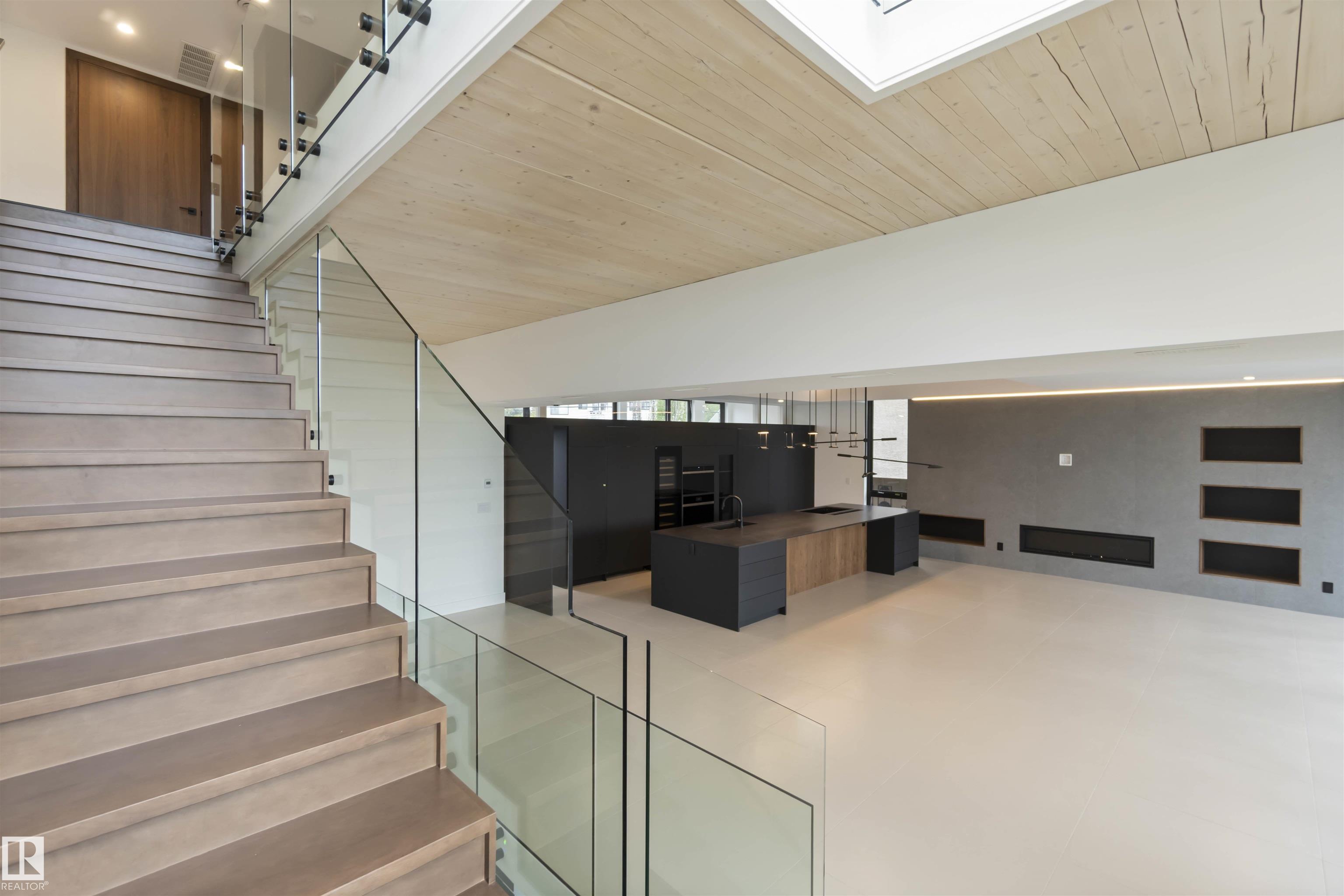 Discover unmatched luxury in this award-winning Mass Timber home-the 1st of its kind in Alberta-offering over 6300sqft of living space across 4 levels. Designed by POSTMARK w/custom millwork by Scott Arthur, this architectural showpiece is perfectly positioned to capture stunning valley views & exemplifies modern sophistication. The top floor is a serene retreat, featuring a spacious primary suite with a walk-through closet, spa-inspired bathroom & a private hot tub with panoramic views. Thoughtful details include in-floor heating, 2 elegant F/P & timeless finishes. On the main floor, a refined library with a built-in humidor leads through a hidden entrance to a private poker room/ventilated cigar lounge--an exceptional space for entertaining. The media room delivers the ultimate cinematic experience, while the 1 bedroom, 1 bath garage suite offers versatile guest or rental potential. A double detached garage completes this remarkable property. This home is more than a residence--it's a bold statement!