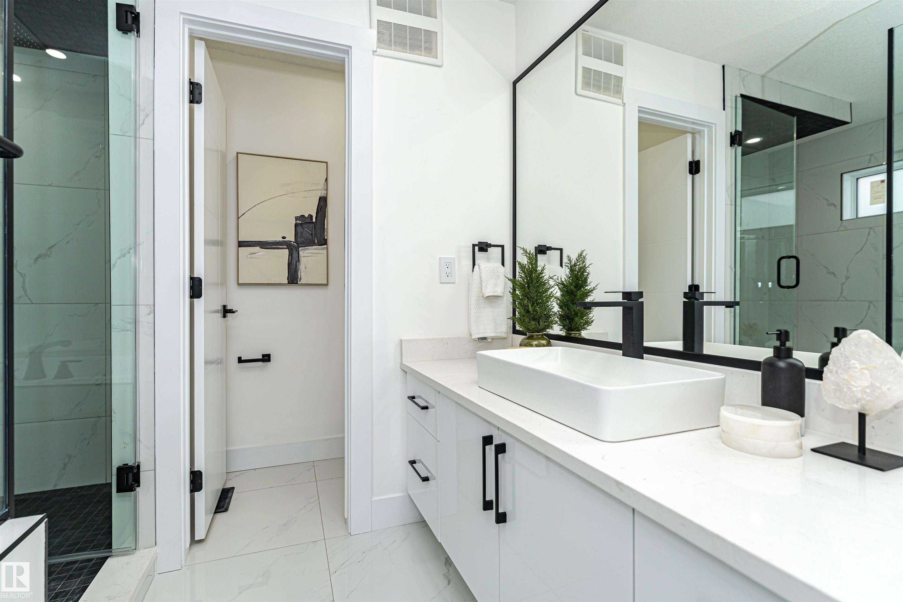 Welcome to this stunning custom-built home nestled on a picturesque, tree-lined street in one of Edmonton's most sought-after communities. Offering over 2,850sq ft of beautifully developed 3 STOREY + FINISHED BSMT living space, this 3-bedroom, 2.5-bath home perfectly blends style, function, and comfort. The main floor features Herringbone LVP, designer tile, and a sun-soaked open layout. The chef's kitchen is a showstopper with quartz countertops, sleek cabinetry, and a massive island with seating. A spacious dining area and striking feature fireplace complete the elegant main level. Upstairs, the primary suite features a luxury spa-inspired ensuite, massive shower, Soaker with Trough sink.Additional features include ROOF TOP PATIO WITH DOWNTOWN VIEWS, BONUS ROOM WITH WET BAR,3 ZONE SOUND SYSTEM,TRIPLE PANE WINDOWS.FULLY FINISHED 1 BEDROOM LEGAL SUITE basement, double garage. Located just steps from the LRT, this is urban living at its best--quiet, convenient, and connected. Turn the key and move right in.