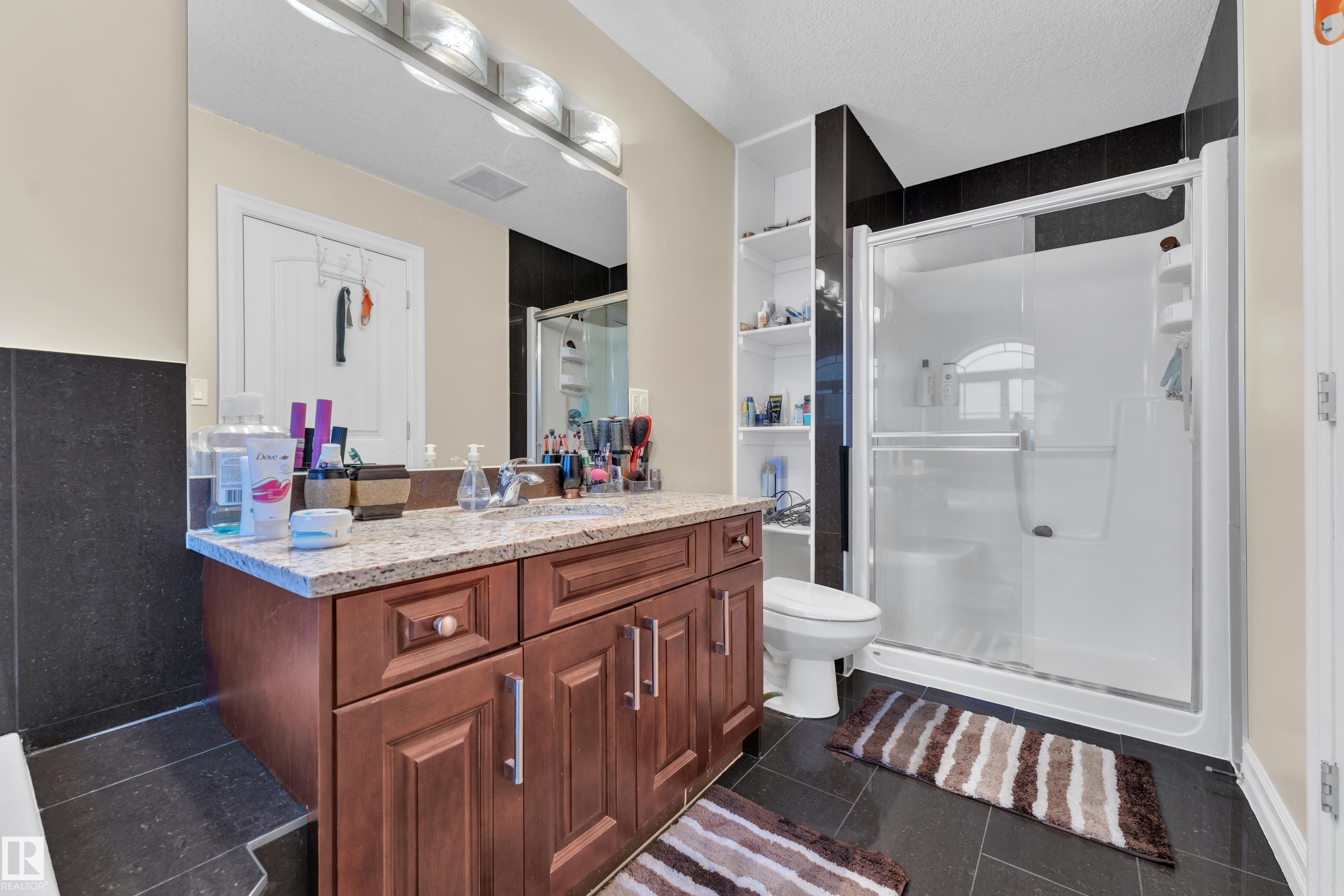 HUGE 8,000+ SQFT CORNER LOT built on a quiet cul-de-sac featuring a FULLY FINISHED BASEMENT with SEPARATE ENTRY & SECOND KITCHEN. Welcome to the peaceful and highly desirable community of Summerside. This well-maintained 5 bedroom, 3 bathroom bi-level home offers a perfect blend of space, comfort, and functionality for growing or extended families. The main level features high ceilings, creating a bright and open atmosphere, along with a spacious living area ideal for everyday living and entertaining. Step out onto the beautiful deck overlooking a large, fully fenced backyard--perfect for kids, pets, and outdoor gatherings. The durable stucco exterior adds both curb appeal and long-term value. The upper-level primary bedroom offers added privacy and includes a 4-piece ensuite. With two separate living areas, one featuring a cozy fireplace, this home easily accommodates large gatherings and family events. Experience comfortable living in one of South Edmonton's most sought-after neighbourhoods, close to