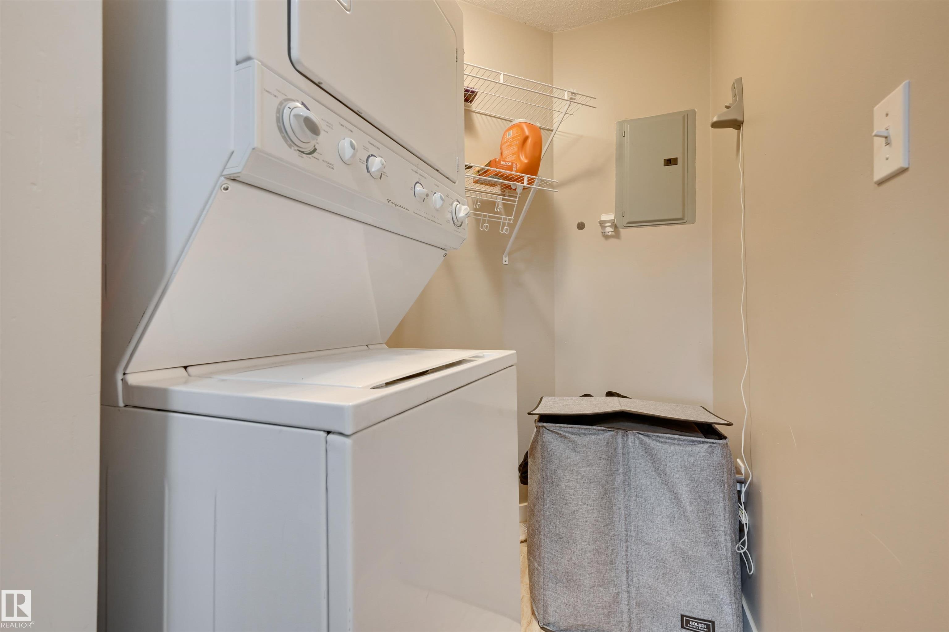 TREELINE VIEWS from this RENOVATED 3 BEDROOM 2 BATHROOM SOUTHEAST facing condo in The POINTE WEST conveniently located close to schools, parks, public transportation, walking paths, West Edmonton Mall & the Whitemud Freeway. This spacious condo offers an OPEN CONCEPT LAYOUT with lots of natural light. The kitchen has espresso color cabinetry with granite countertops, an eating bar & stainless steel appliances. Good size balcony to enjoy great views. The primary suite has a walk through closet to the 4 piece ensuite with granite counters & tile flooring. Plenty of room in the 2nd & 3rd bedrooms. The 4 piece main bathroom has granite counters & tile flooring. Included is the ceramic top stove, microwave hood fan, fridge, dishwasher, INSUITE WASHER & DRYER, and window coverings. A great condo in a convenient West End location!