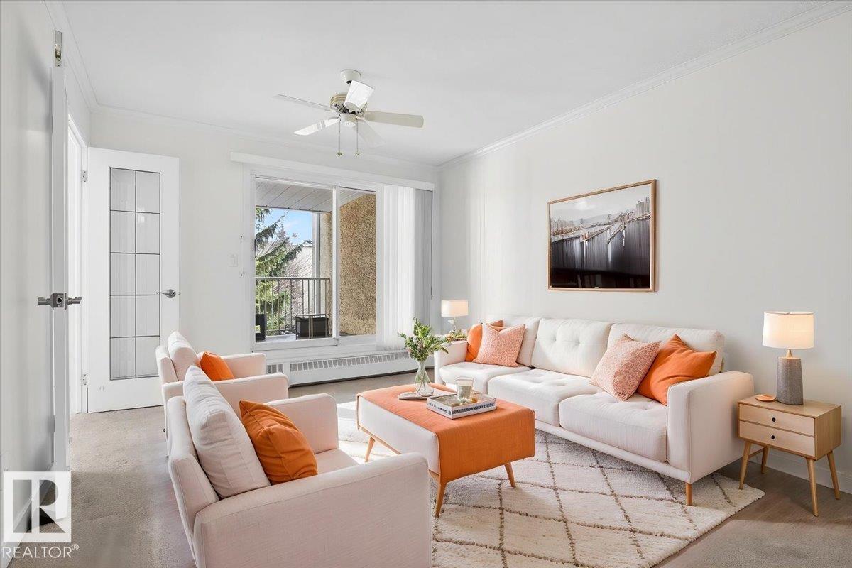 Beulah Manor has a great location in the heart of Terra Losa & the building is in very good condition & shows extremely well! This 3rd floor, east facing 2 bedroom apartment is in excellent condition (freshly painted, carpets steam cleaned & entire apartment professionally cleaned) featuring a large dining/living area with sliding door access to a large covered balcony, spacious kitchen with room for casual dining, common 3 pc bath, primary bedroom has 4 pc ensuite bath, bedroom 2 has double french door access to the living room & completing this apartment is a spacious laundry/storage room. This sale includes a separately titled underground parking stall with secure storage cage. The main floor hosts a large social room & is available to residents for private functions. Adult building (55+) and allows pets with board approval. Close proximity to grocery, banking, walking paths, public transportation & major transportation routes. A beautiful place to call home!