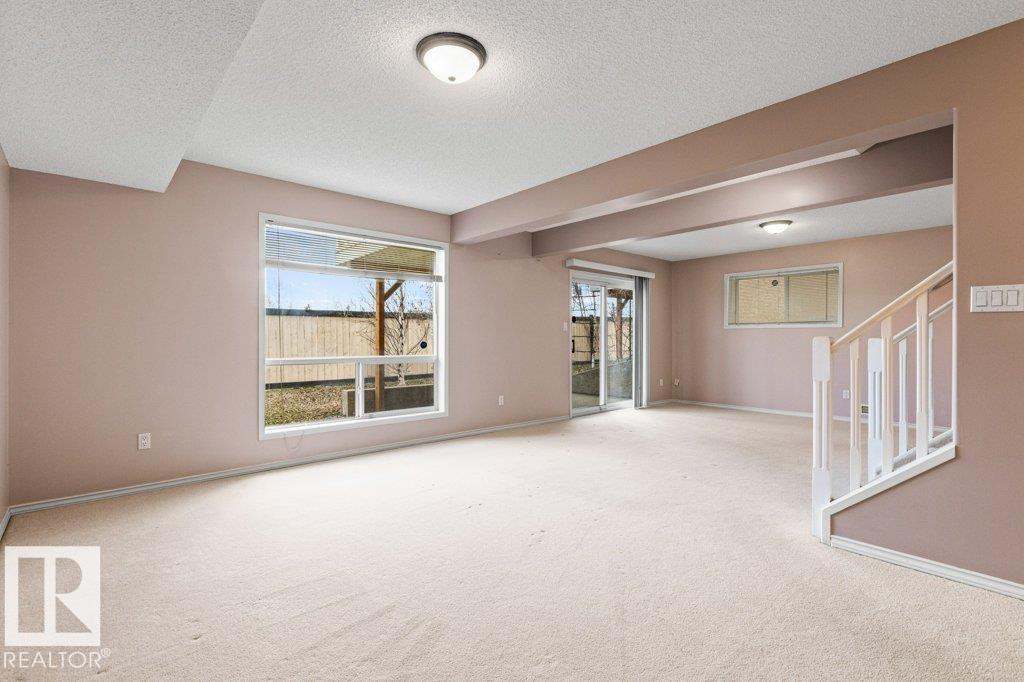 Welcome to the GATED Adult Community of West Creek at Twin Brooks! This WALK-OUT bungalow unit offers over 1224 sq.ft. plus a fully finished bsmt. SUPBERB LOCATION just steps from MacTaggert Sanctuary & Whitemud Creek Ravine. As you step in the front door you will appreciate the hardwood flooring, vaulted ceilings, gas fireplace & abundance of windows. The kitchen has been updated with extra added cabinetry, updated cabinet fronts & beautiful granite countertops in the past 5 yrs. You will also appreciate the undercabinet lighting & 1 yr old fridge. The main floor also offers convenient laundry (w/d just over 2 yrs old), a 1/2 bath for guests, den & large primary suite (complete w/ full ensuite & plenty of closet space). The basement offers a large family room, another large bdrm, full bath plus an enormous storage room (complete with stand up freezer only 3 yrs old). Other features of this property are the double attached garage, central vac, enlarged upper deck w/ gas BBQ hook up. You'll be Impressed!