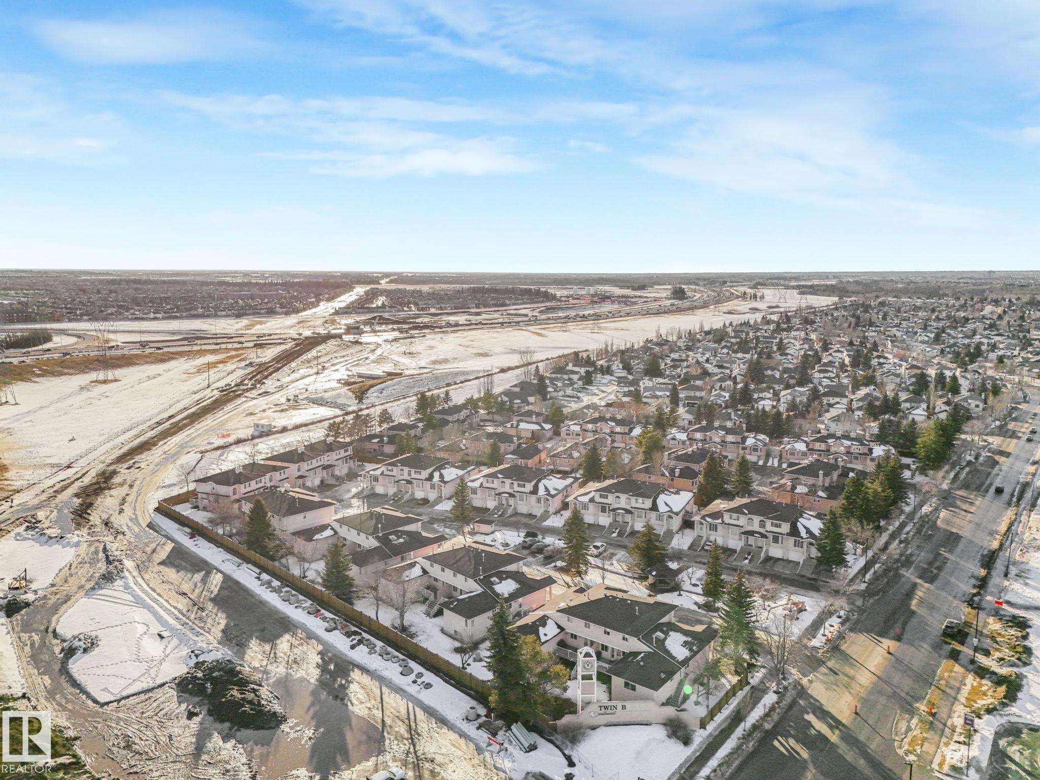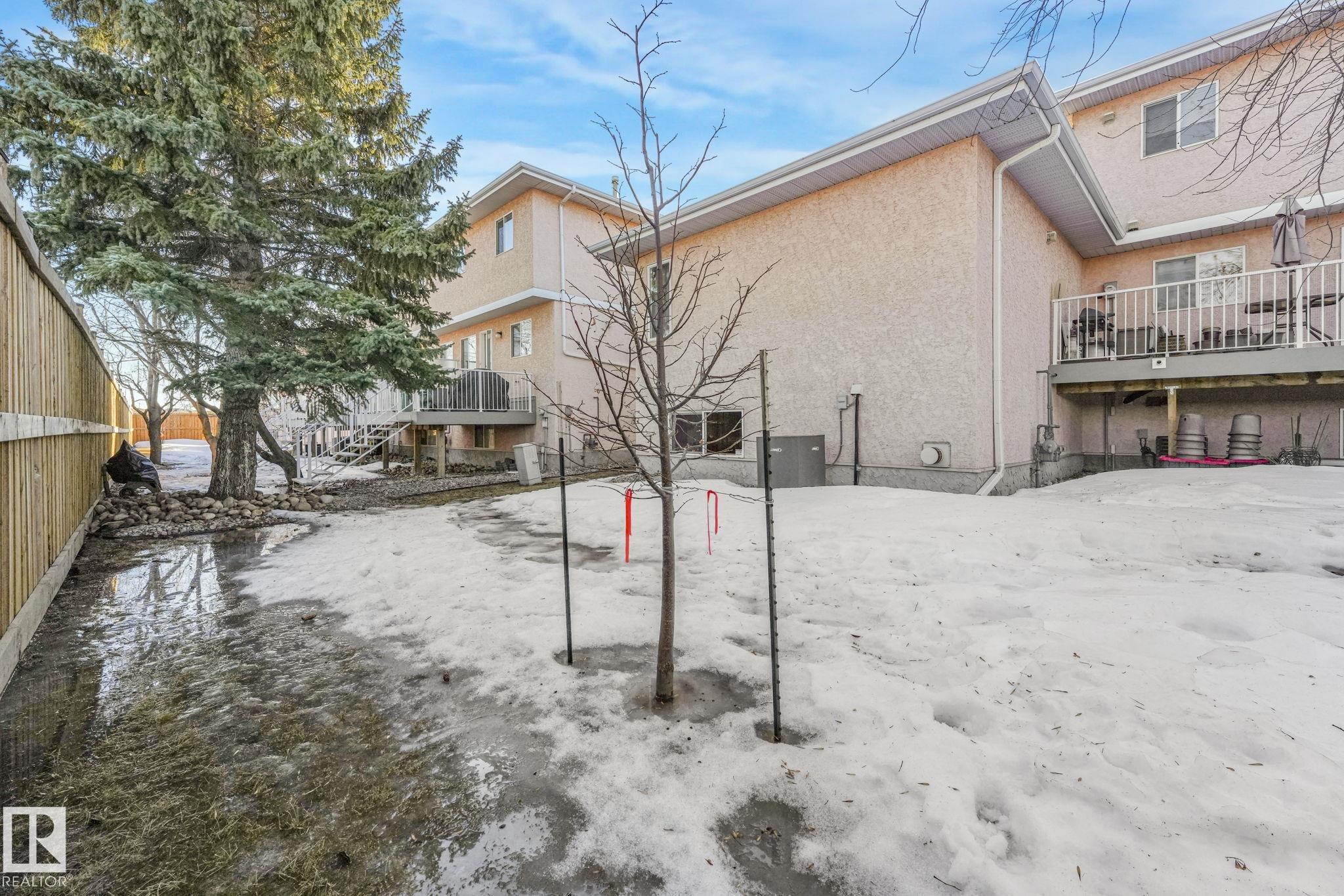 Stylish end-unit condo offering ~2,400 sq ft of versatile living--perfect for young professionals seeking space, comfort, and convenience. The bright living room features a soaring 15-ft vaulted ceiling and gas fireplace, while the large kitchen includes a walk-in pantry, skylight, and plenty of prep space. Enjoy central A/C, pre-wired alarm, two fireplaces, and a private composite deck with BBQ hookup. Upstairs offers two bedrooms, including a spacious primary with walk-in closet and ensuite. The fully finished basement adds a large third bedroom, full bath, and flexible space for a home office or gym. Single garage plus driveway parking. Located in a quiet, well-kept complex of only 38 units with mature landscaping. Steps to shops, medical services, coffee, and future LRT, and minutes to trails, schools, Henday, Whitemud, and major shopping--an ideal blend of lifestyle and location.