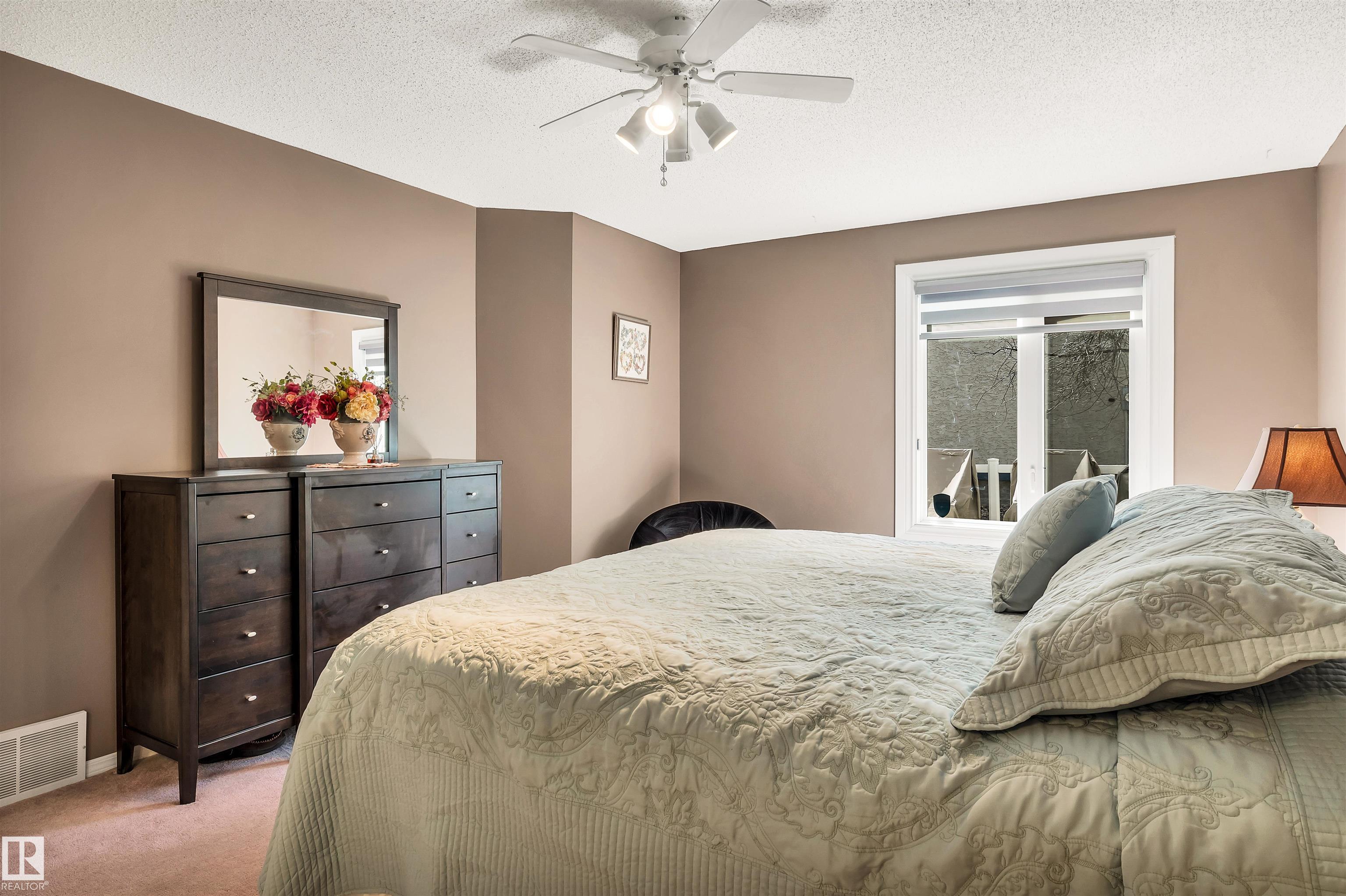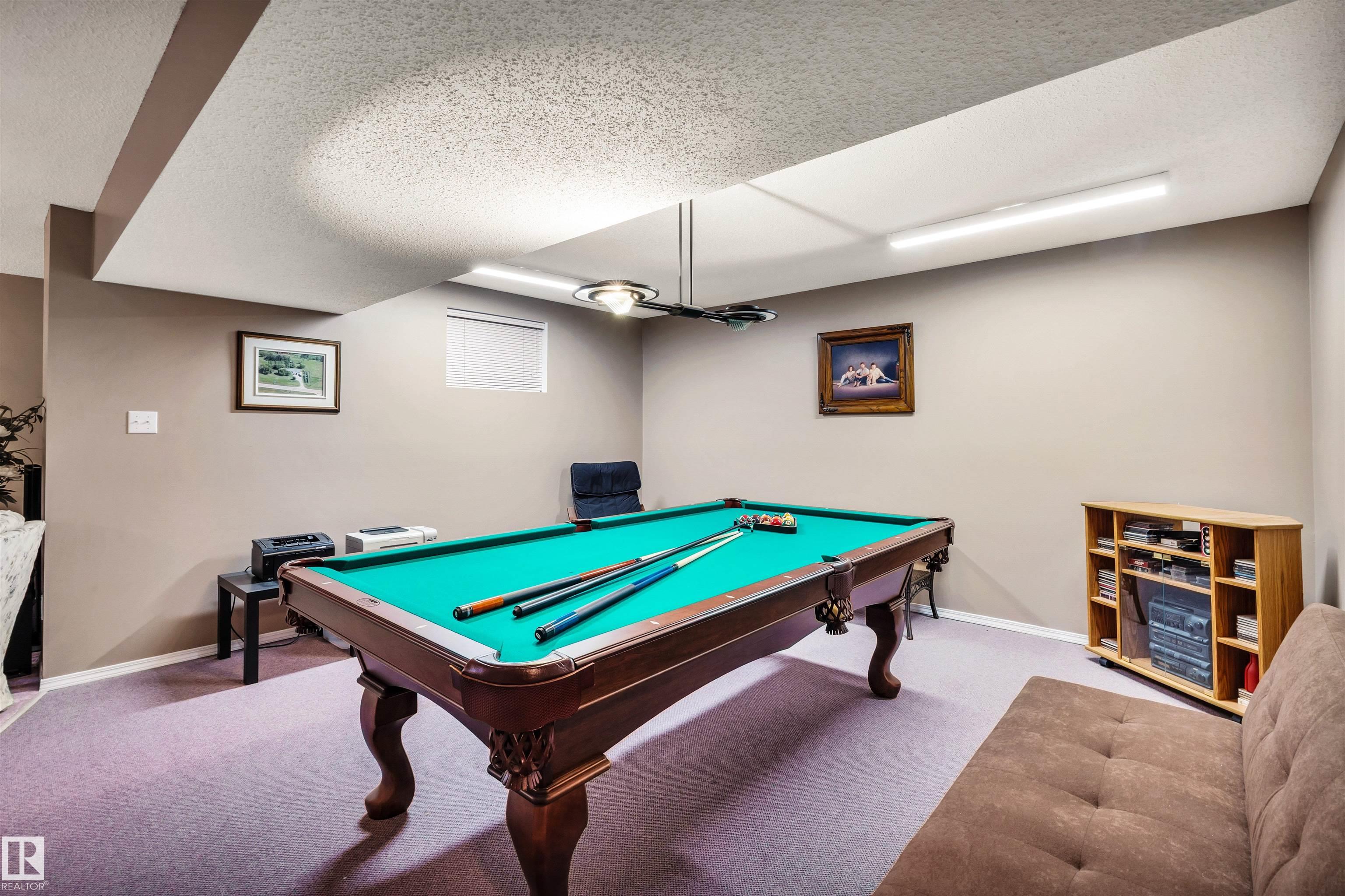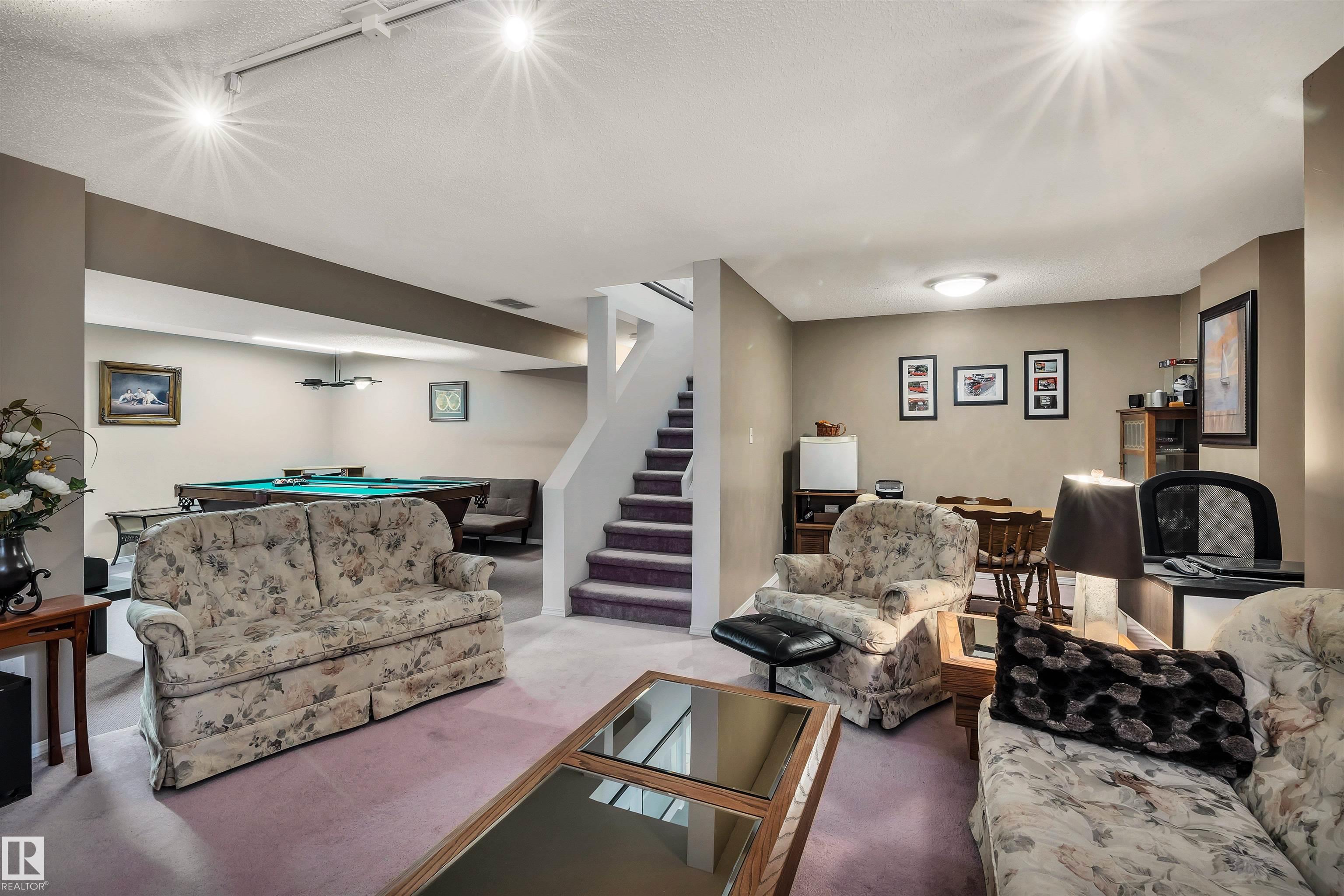 Welcome to this beautifully maintained bungalow in the exclusive Twin Brooks Classics, a sought-after 16+ adult living community. Thoughtfully updated, this home offers an open-concept main floor ideal for comfortable living & entertaining. The timeless white kitchen features dual pantries & flows seamlessly into the main living space. Enjoy the ease of main floor laundry & newer vinyl windows w/custom blinds. The spacious primary includes mirrored closets & renovated spa-inspired ensuite w/heated floors & tiled walk-in shower w/bench. The fully finished basement adds a third bedroom, full bath, large rec room w/pool table, gas fireplace & ample storage. Relax outdoors on the composite deck w/gas BBQ hookup. Complete w/retractable screens on both front/back doors, A/C & double attached garage. Newer furnace & HWT. Located on the MacTaggart Sanctuary & Whitemud Creek Ravine w/extensive walking trails, outdoor skating rink, community league building/garden & more! Close to shopping & all amenities. A gem!