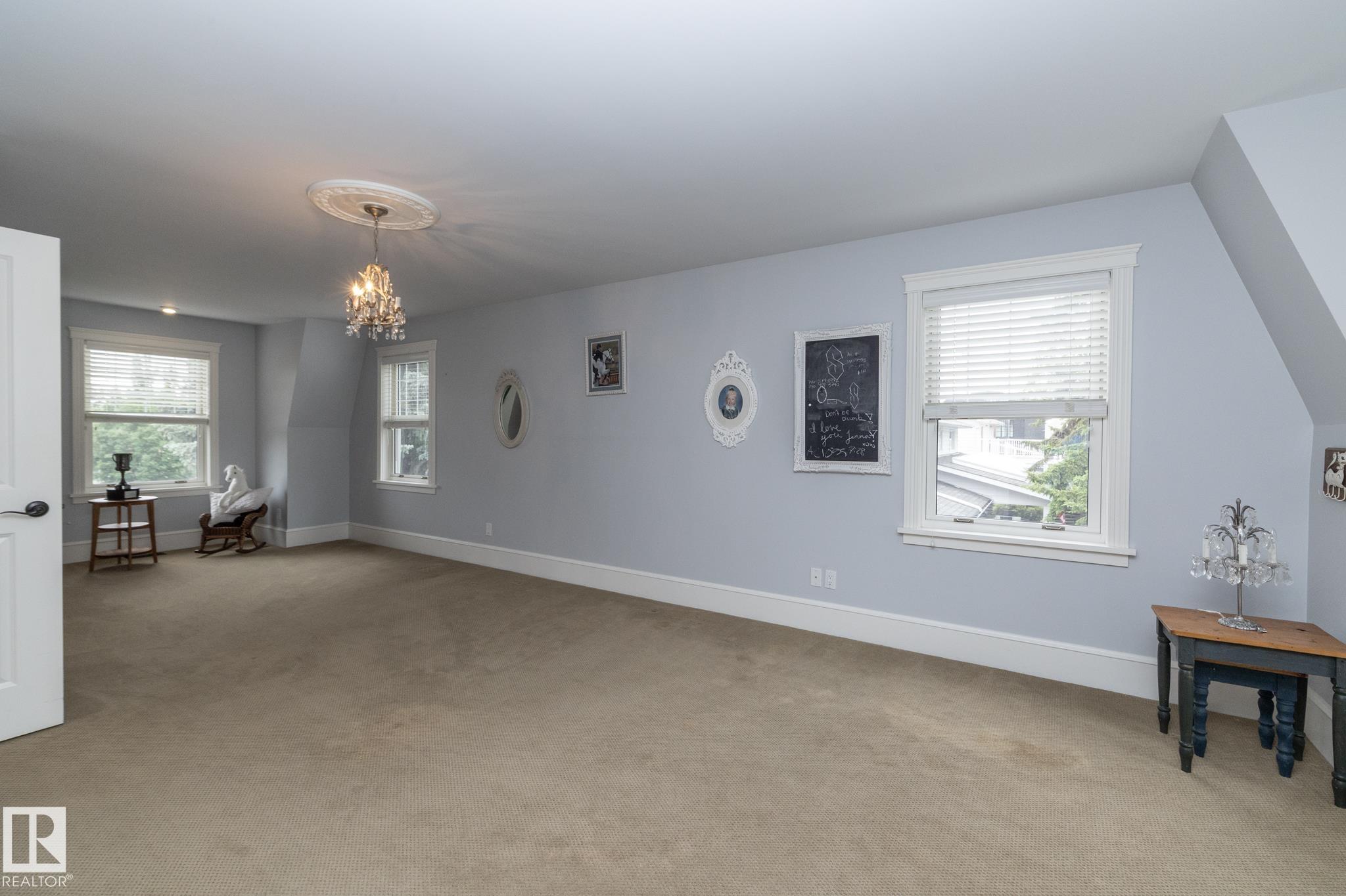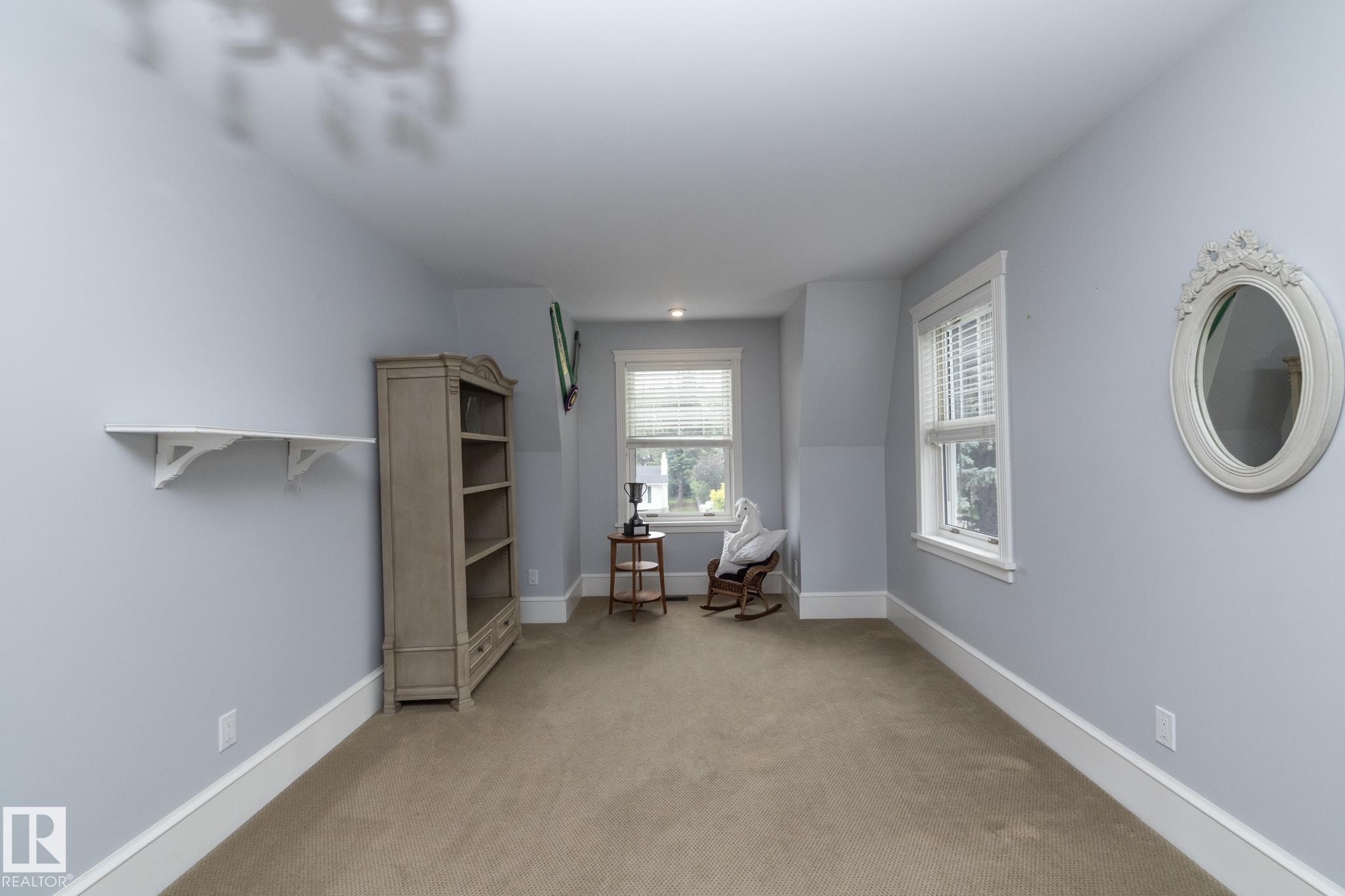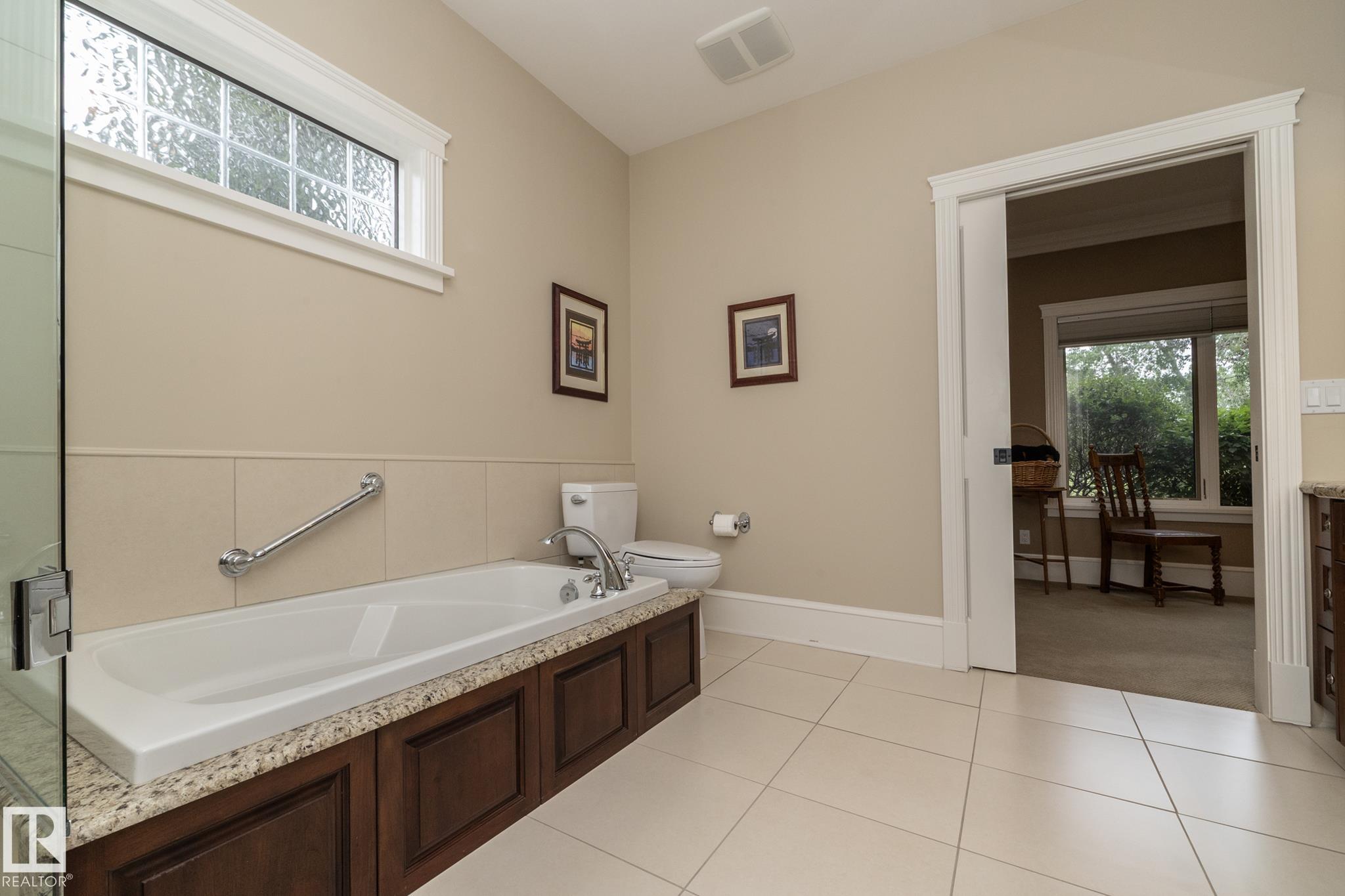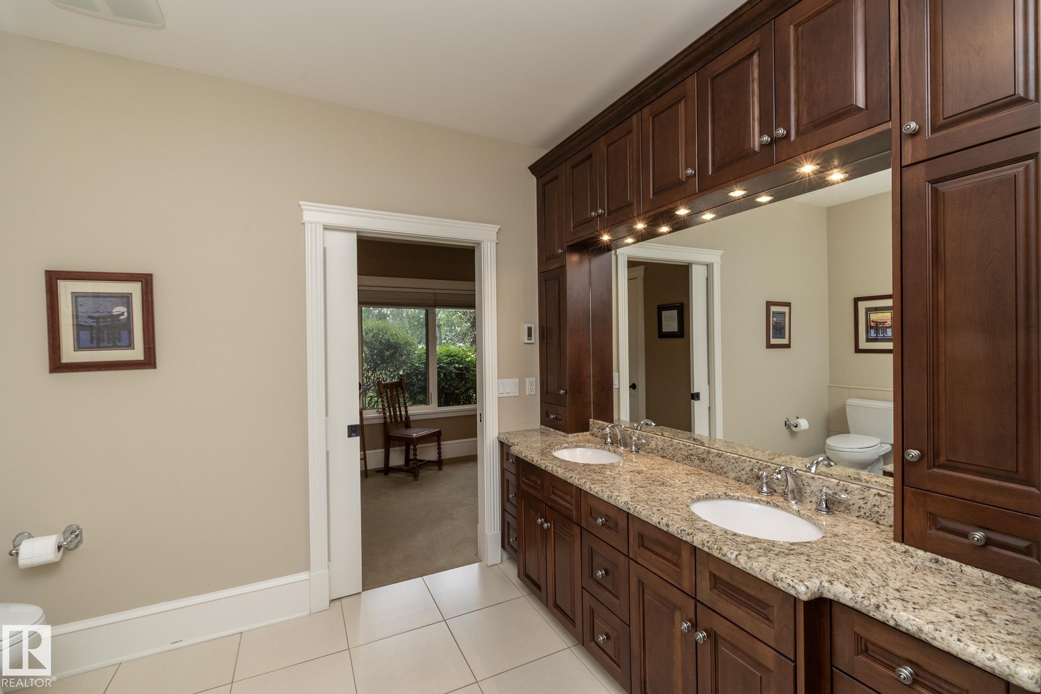 OWN A PIECE OF HISTORY ON FAIRWAY DRIVE! Backing directly onto hole #6 of the Derrick Golf & Winter Club, this 3,562 sqft masterpiece (built 1967, expanded 2005, renovated 2009) fuses timeless craftsmanship w/ modern luxury. A sun-splashed open plan showcases hardwood, marble tile, crown mouldings, wainscoting, LED pots & built-in speakers framing a true chef's kitchen w/ granite counters, two-tone island & pro-grade appliances. Unwind beside the classic wood-burning hearth or the sleek electric FP. Two lavish primary suites, one on the main, one upstairs, offer spa-inspired baths (claw-foot & Jacuzzi tubs). Plus two more bedrooms: one upstairs & one in the finished bsmt, for a total of four, all served by five elegant baths. Dual laundry rooms add everyday ease. Outside, a stone patio w/ built-in BBQ overlooks the meticulously landscaped, irrigated yard. Hardie-board exterior, oversized heated garage w/ sink & drain, BurBer carpet, two A/C units--move-in perfection on Edmonton's most prestigious street!
