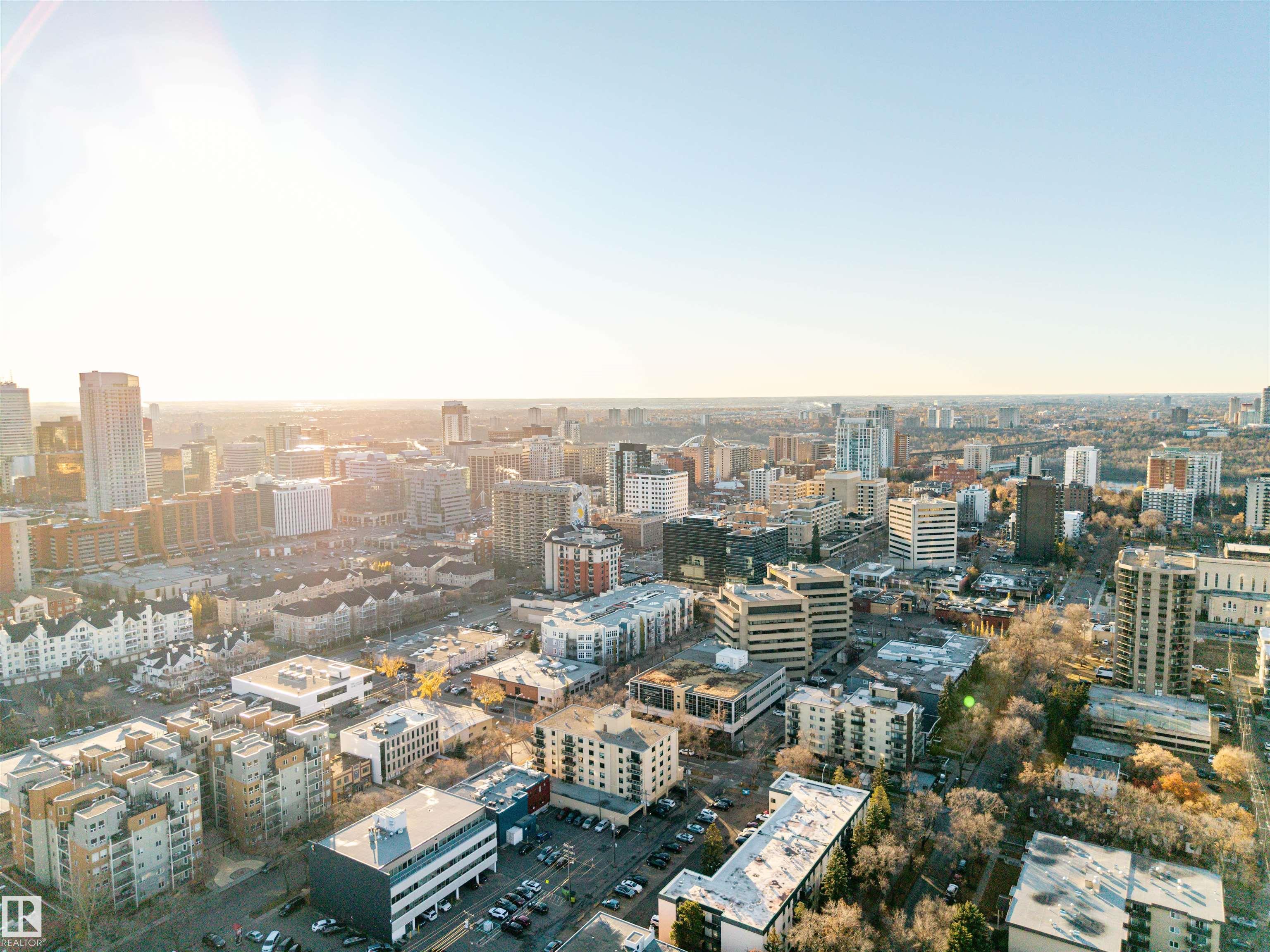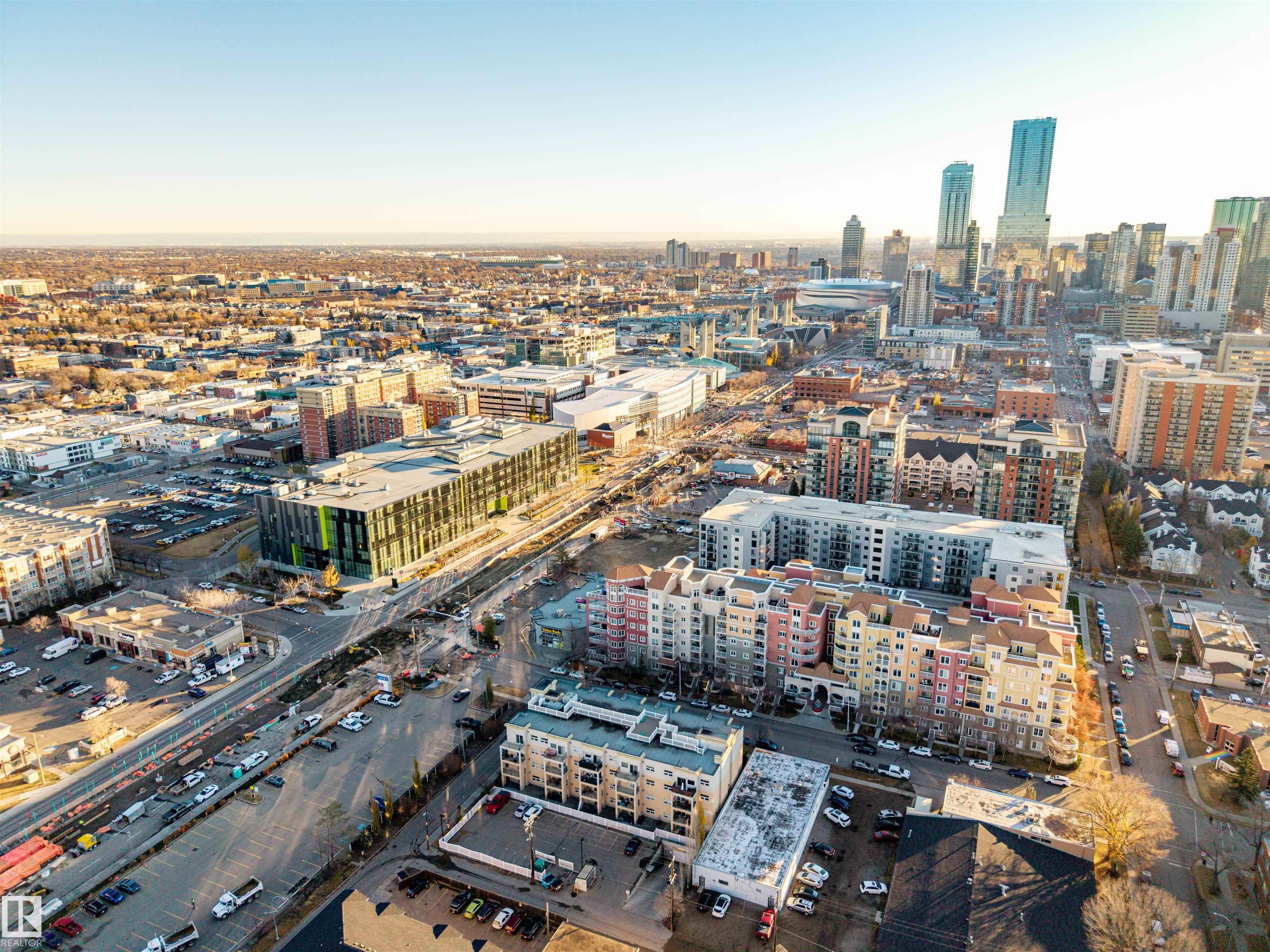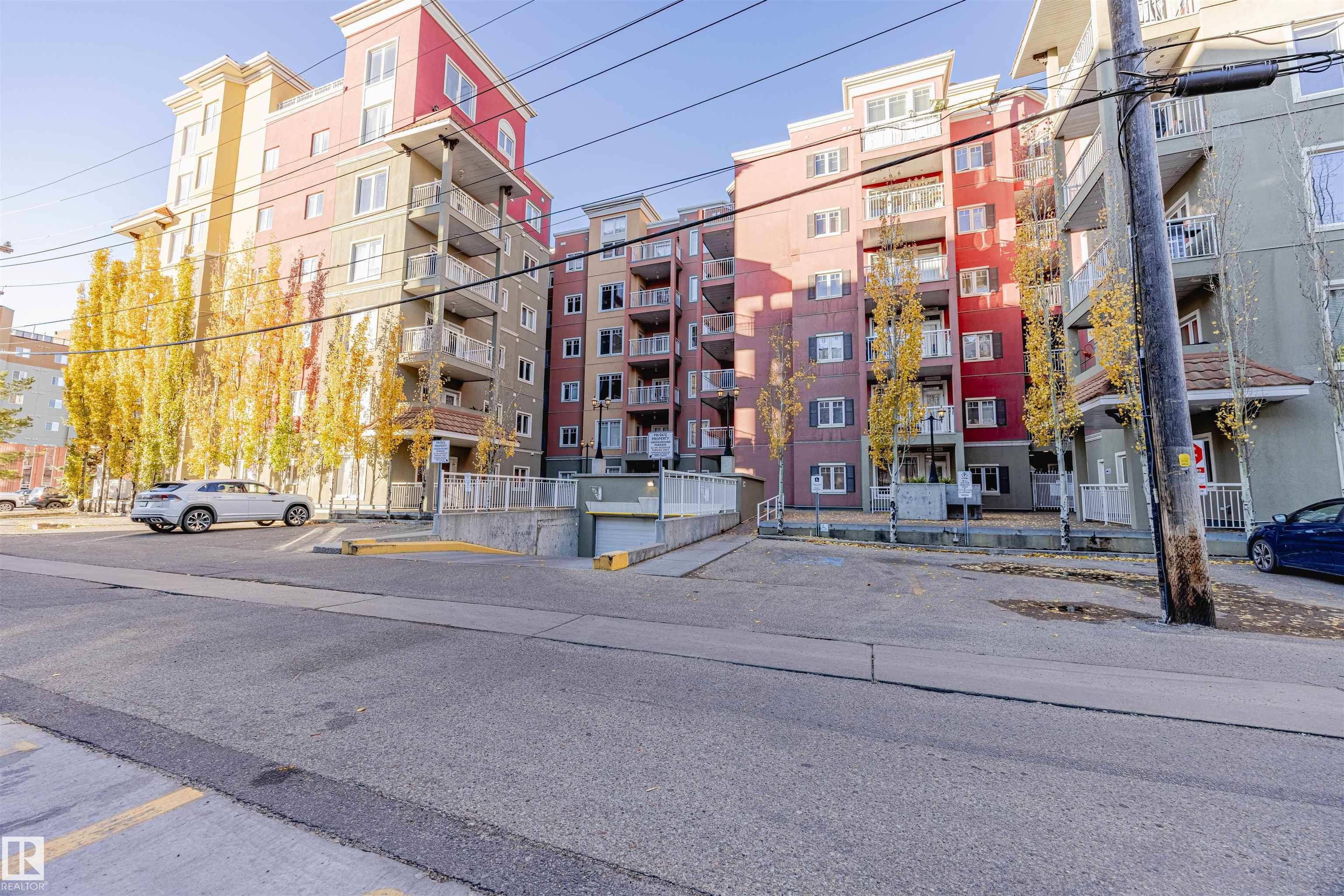 ORIGINAL OWNER TOP FLOOR 2 BDRM CONDO WITH SOARING 16' CEILING ALONG WITH TITLED UNDERGROUND PARKING. the main floor and modern WIDE PLANK vinyl flooring in the main living area. The u-shaped kitchen has subway back splash tile, GRANITE counter tops and STAINLESS appliances. The living room offers nice space and teh extra windows allows for the space to bathed in light and show off the gorgeous hanging light fixtures. Enjoy morning coffee from your balcony; with a natural gas hook-up, summer bbq's will be epic. 2 bedrooms separated by the living space give privacy for a roommate, guest or home office, enjoy a full 4pc bath for the main area. Relax in the master bedroom with a view of the balcony and east downtown; the ensuite has CORIAN counters and a double wide shower. SITUATED STEPS FROM THE ICE DISTRICT THIS CONDO IS SURE TO IMPRESS! IMMEDIATE POSSESSION AVAILABLE!