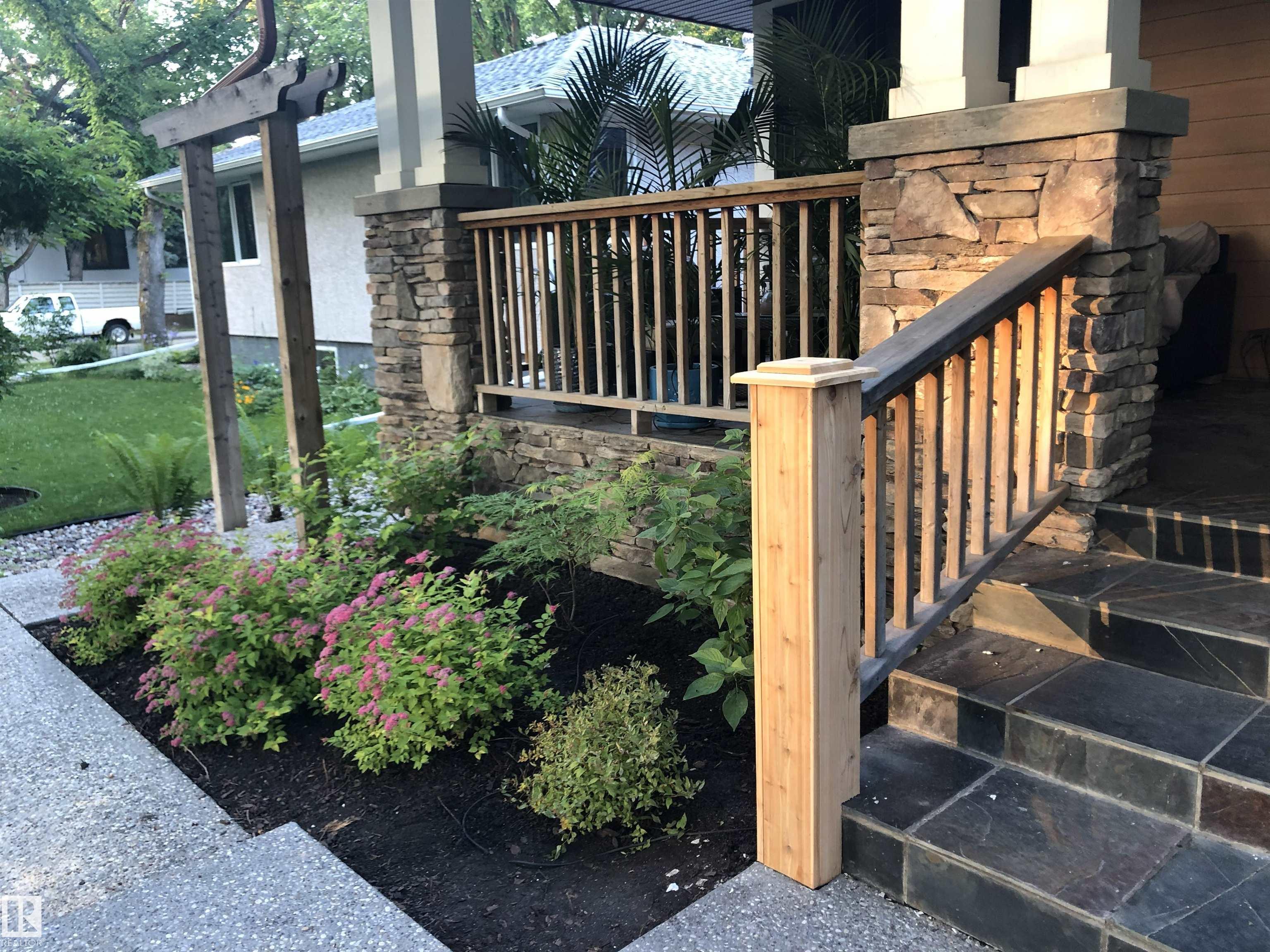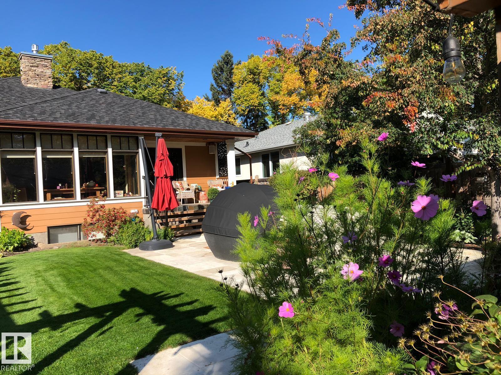 ELEGANT bungalow in sought-after Windsor Park, featuring a charming front porch and an unbeatable location! Just steps to the University of Alberta campus and hospital, minutes to the River Valley, and approximately 10 minutes to Downtown. This air-conditioned 1,693 sq. ft. home offers 9 ft. ceilings and a functional layout with a total of 3 bedrooms plus a main-floor office (or 4th bedroom). The bright, open-concept main floor showcases cherry hardwood floors, a dream island kitchen with quality stainless steel appliances, large windows, and a spacious great room with fireplace. The fully finished basement includes a t.v. or media room, games room/gym area, walk-in pantry, generous storage, and the comfort of in-floor heating. A garden door leads to a covered deck and beautifully landscaped backyard with patio, mature trees, and flower beds. Completing the home is an oversized double garage and additional rear parking--a rare opportunity in one of Edmonton's most desirable neighbourhoods.