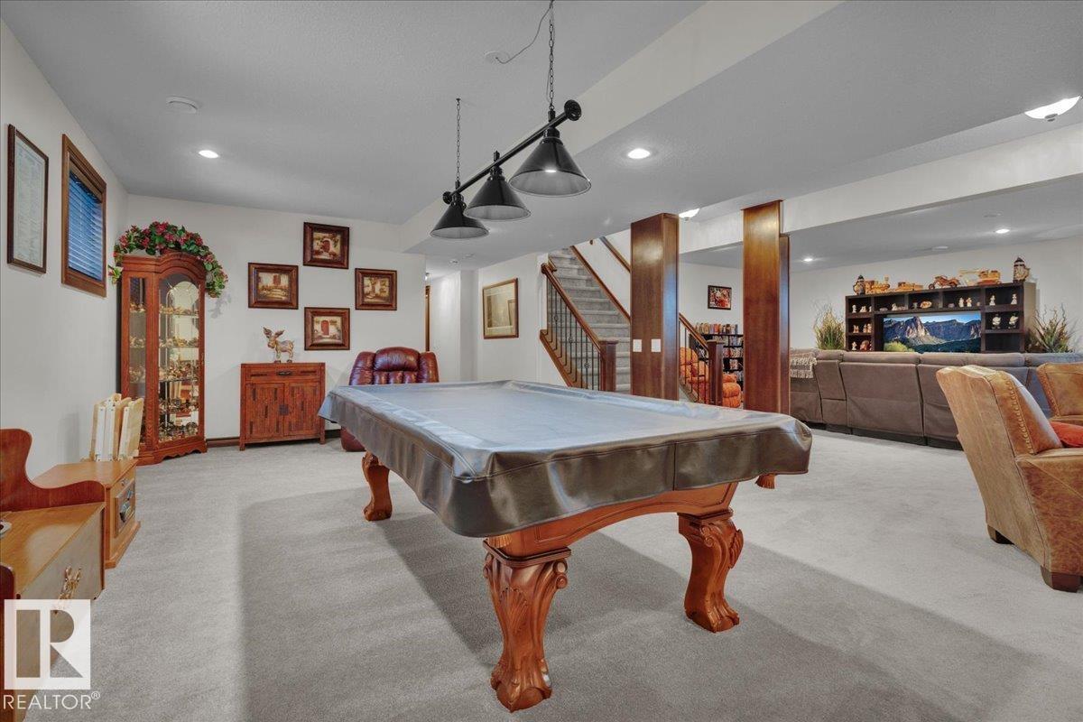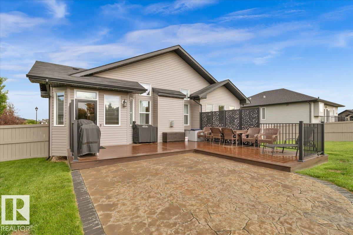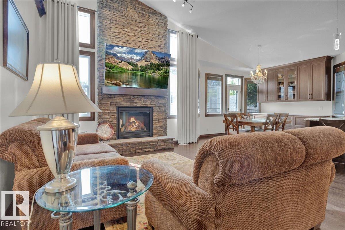 Bungalow in prestigious Southfort Estates with over 3,500 sq ft of beautifully finished living space on a fully landscaped estate lot. You're welcomed by soaring 13' vaulted ceilings, 8' solid doors, rich dark maple hardwood, and a stunning floor-to-ceiling stone fireplace. The chef-inspired kitchen features granite countertops, expanded custom cabinetry, Frigidaire fridge/freezer, gas stove, oversized island, and a spacious walk-through pantry. The main level includes two generous bedrooms (primary with a luxurious 5pc ensuite and walk-in closet), front den, main floor laundry, and a 4pc bath. The fully finished basement offers a large rec/family room, custom built-in dry bar, two additional bedrooms, and a 3pc bath. Exterior highlights include a double attached AND a double detached garage, composite deck, flagstone patio, new exterior doors, LeafFilter gutters, permanent gemstone LED lighting, and concrete side drive.