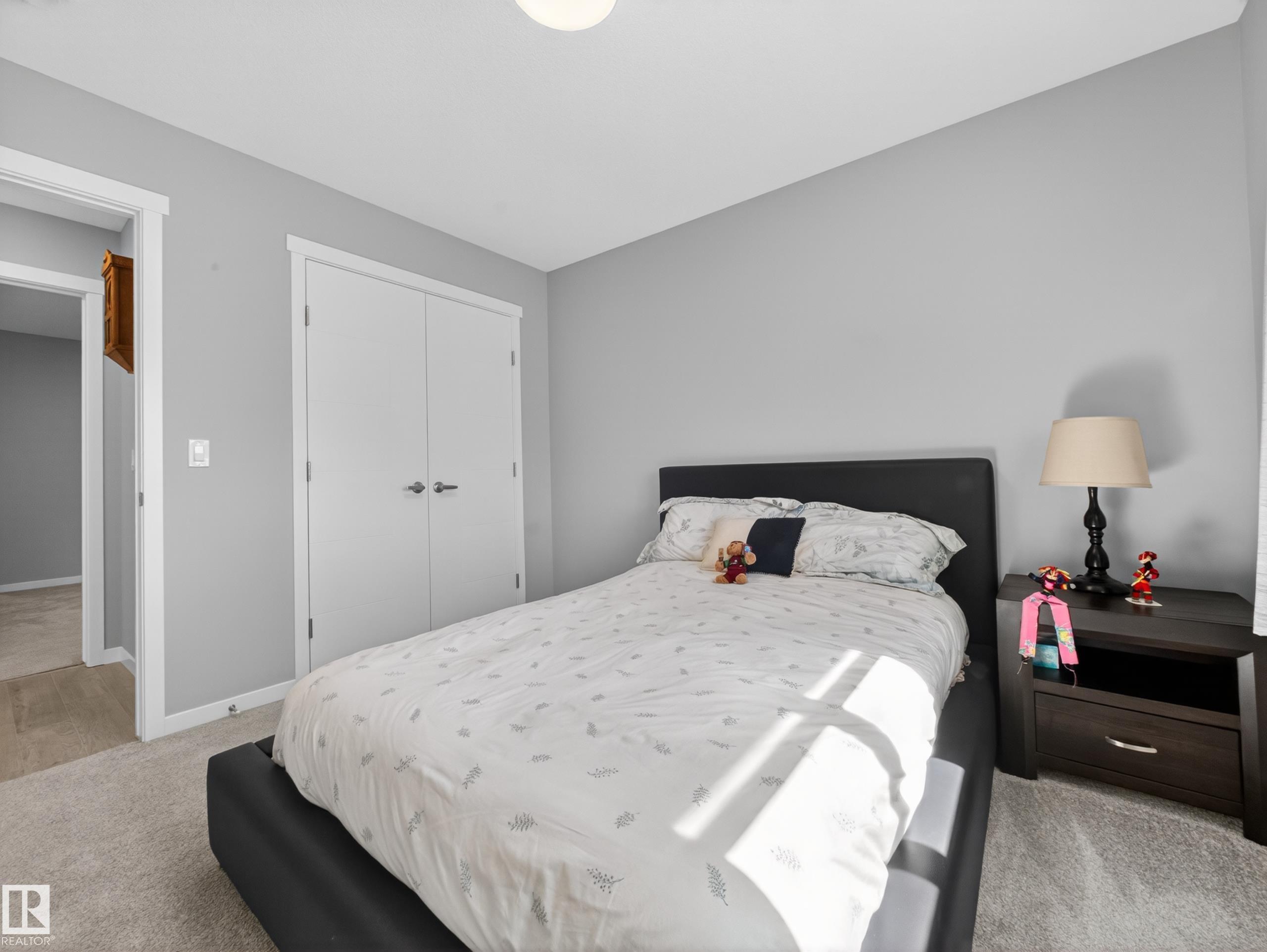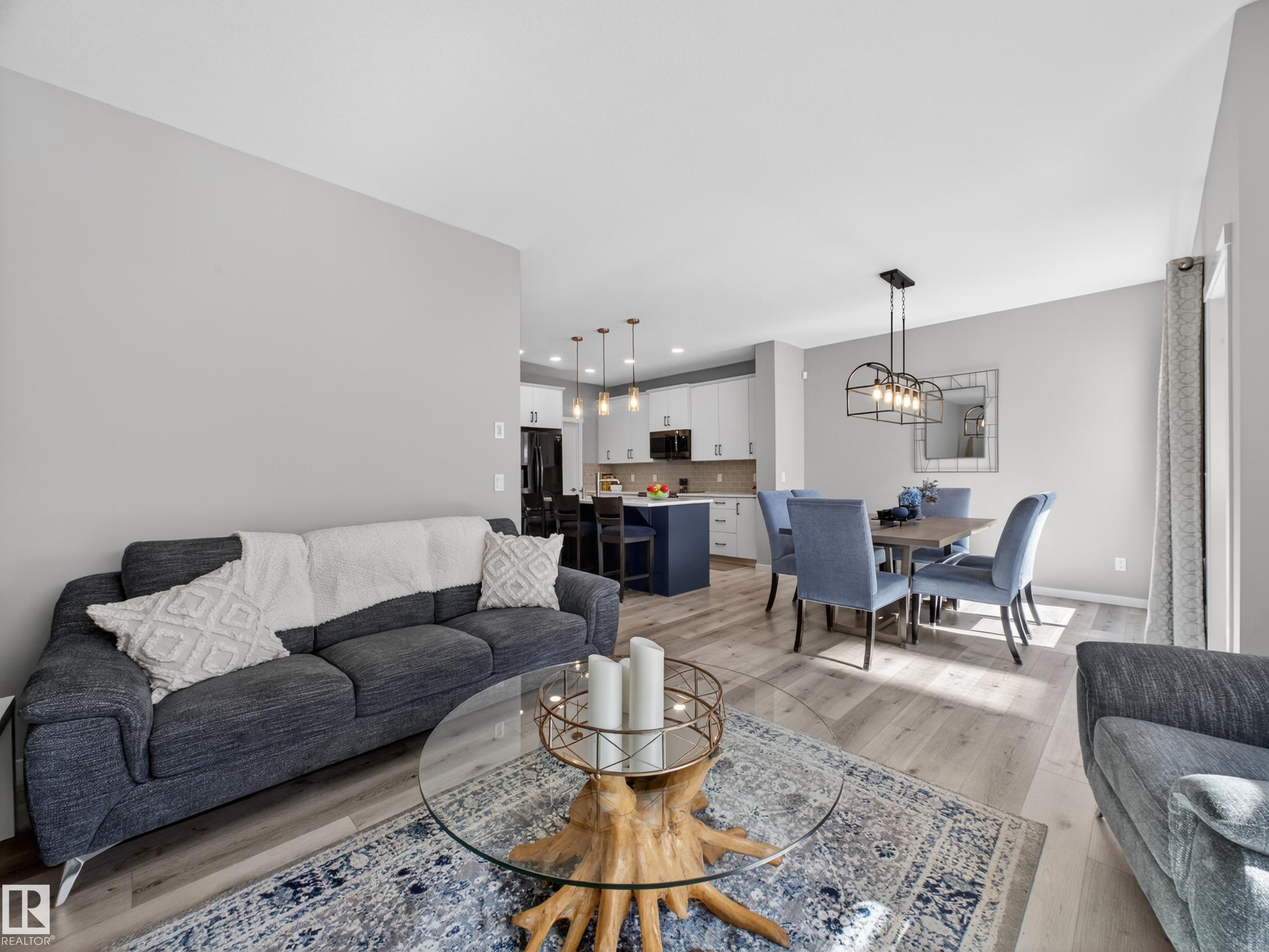 Welcome to this stunning, move-in ready home with stylish, modern finishings throughout! The main floor features beautiful LVP flooring and a designer kitchen with classic white cabinetry, a contrasting grey island, quartz countertops, sleek hardware, and stainless steel appliances. The open-concept living room is anchored by a trendy gas fireplace and a large picture window overlooking the backyard. Step outside to a full-width deck, partially covered with a gorgeous pergola--perfect for relaxing or entertaining. Upstairs offers a spacious primary suite with walk-in closet and ensuite, plus two generous bedrooms, a 4pc bath, and a bright bonus room. The professionally finished basement adds a 4th bedroom, additional bathroom, and comfortable living space. A/C and a heated garage add year-round comfort. Close to shopping, schools, and trails!