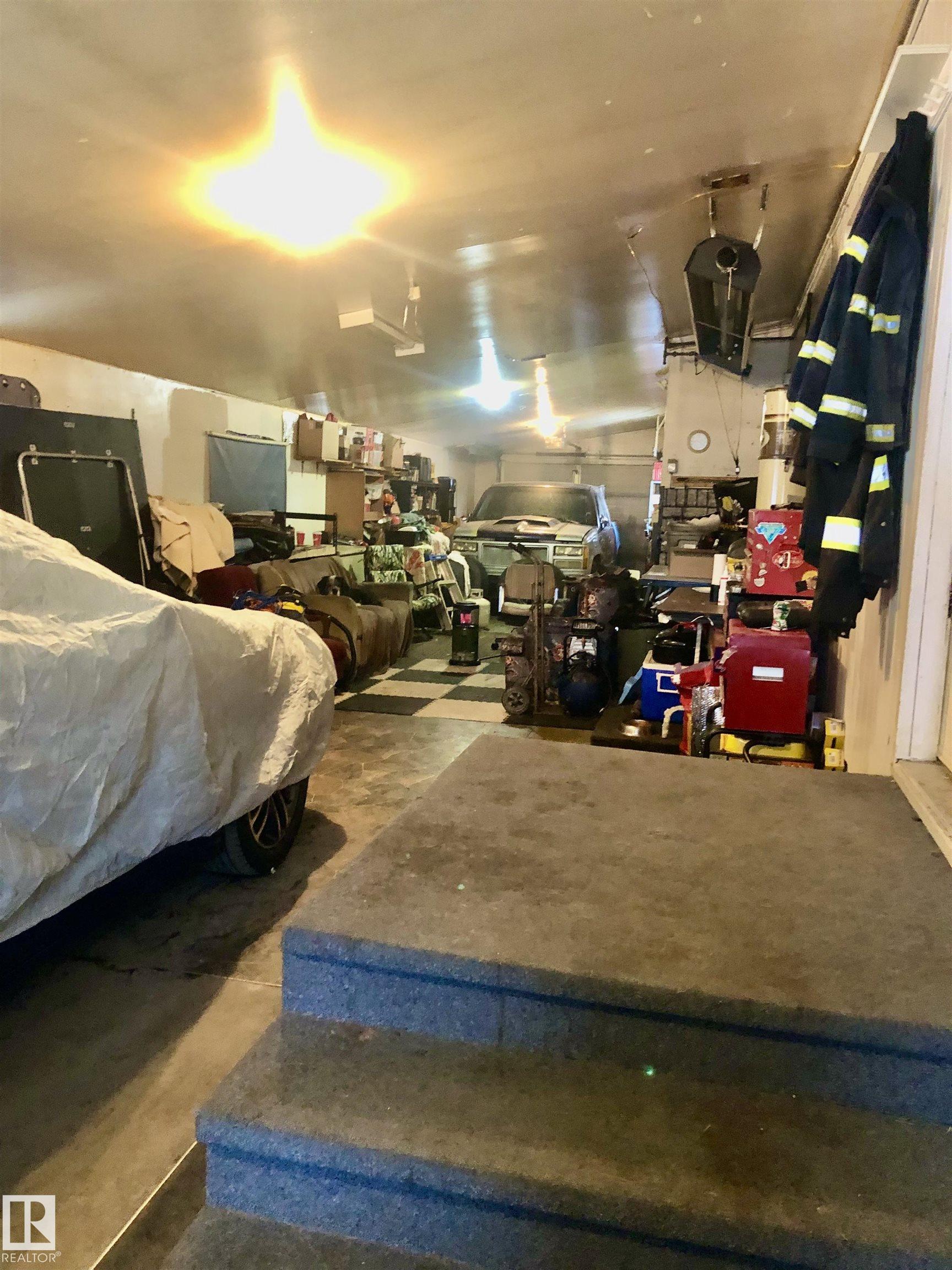 GREAT HOME AT A GREAT PRICE!!! Walk in from the south facing 2 car parking pad to the tandem 2 car garage with access to the home. Enter the home to find a spacious open concept living, dining and U - shaped kitchen over looking the fully fenced back yard with gazebo and alley access. You will find 2 Bedrooms up with a 4pc. bathroom in the middle just off the living room. Down the Stairs to 2 additional bedrooms with a 3 pc. bath and a great rec. room with a gas fireplace. New hot water in 2022, a newer furnace and the power was all upgraded as well. Close to schools and shopping...
