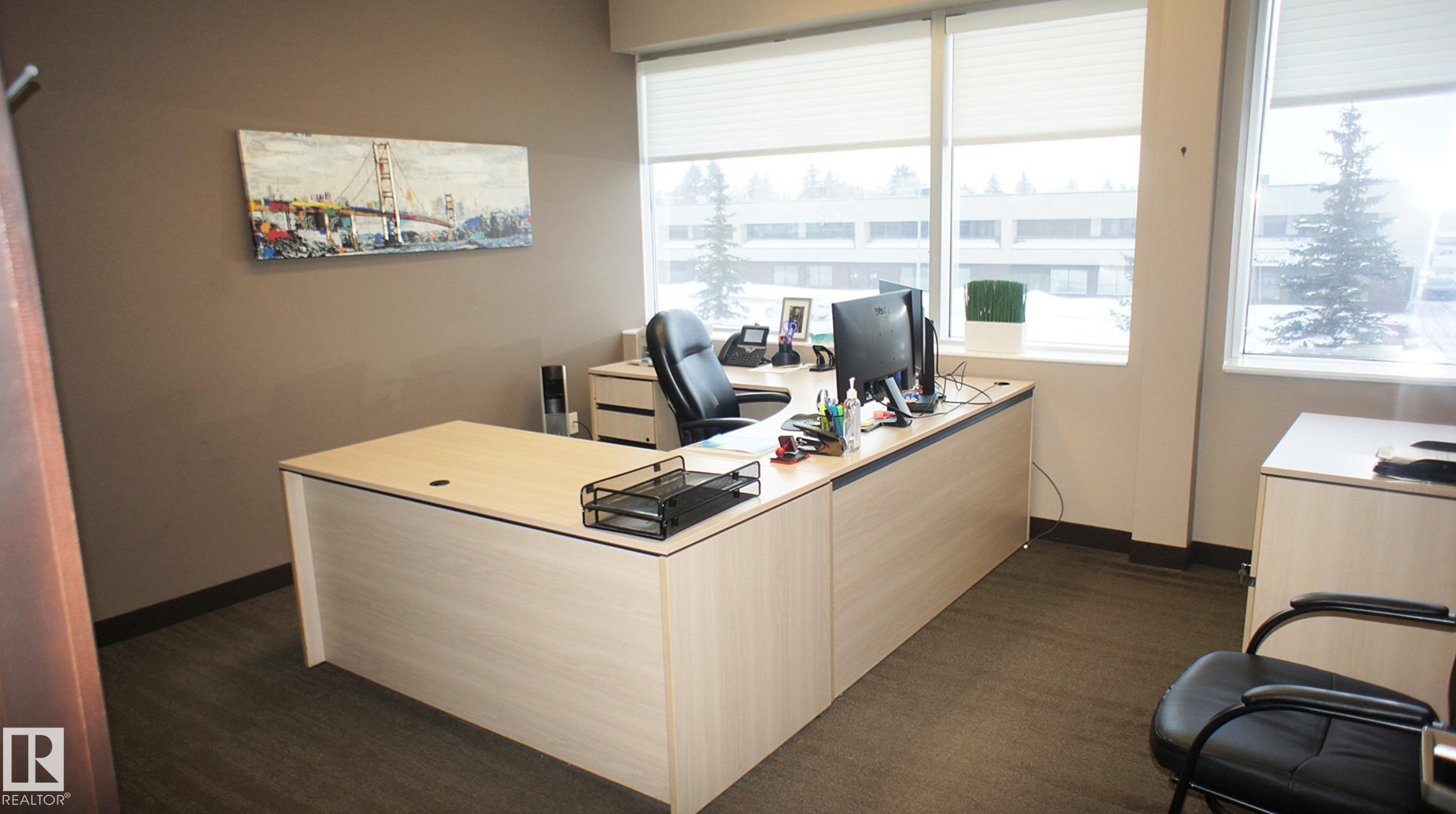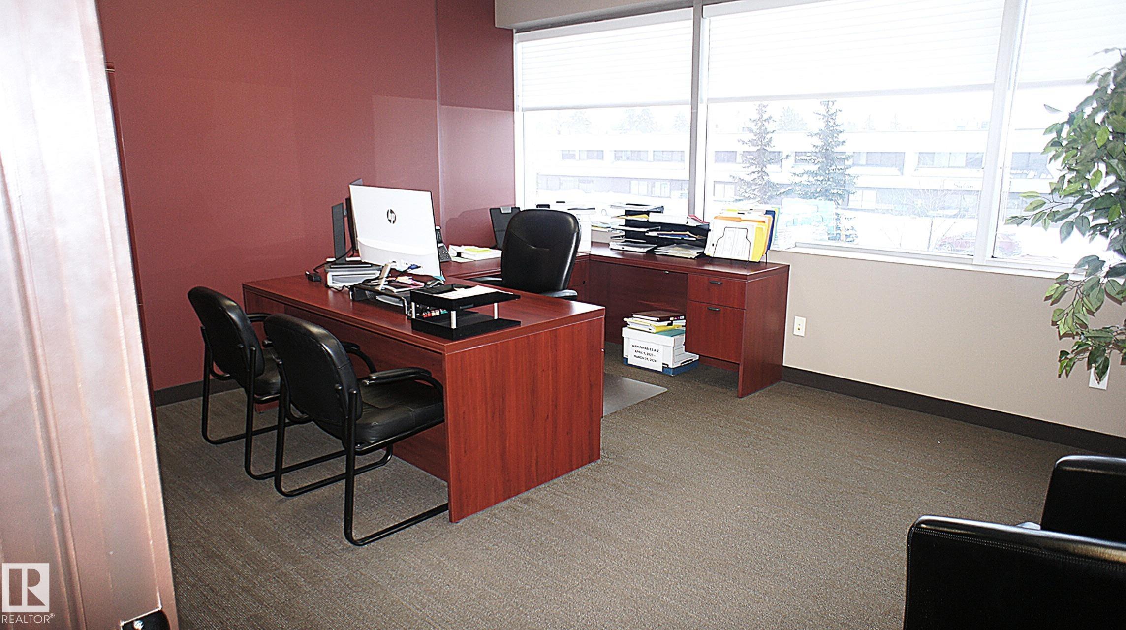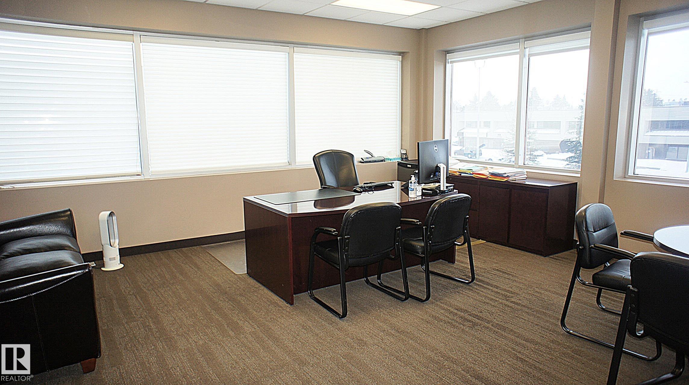 Top quality improvements in this modern second floor Executive office space in the Westana Professional Centre just off Broadmoor Blvd and Baseline Road in Sherwood Park. 6092 square feet of premium office space featuring and attractive and open reception, 14 offices of varying sizes, a large boardroom, closing/signing office, staff kitchenette and an extra large filing/storage area. Also has interior M/F washrooms in addition to the common area washroom just outside the entrance next to elevator. Truly beautiful space for those whose corporate image is important.