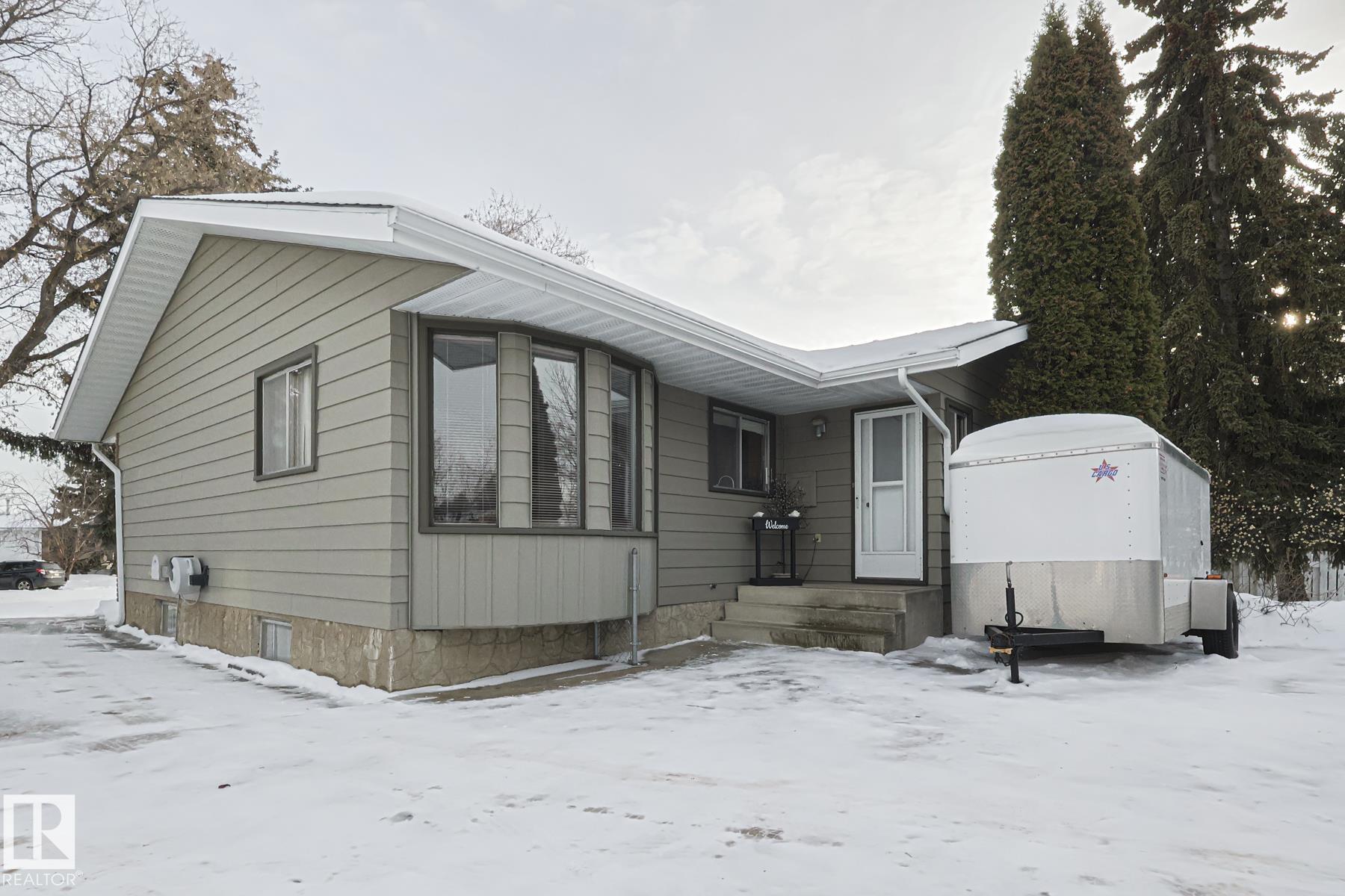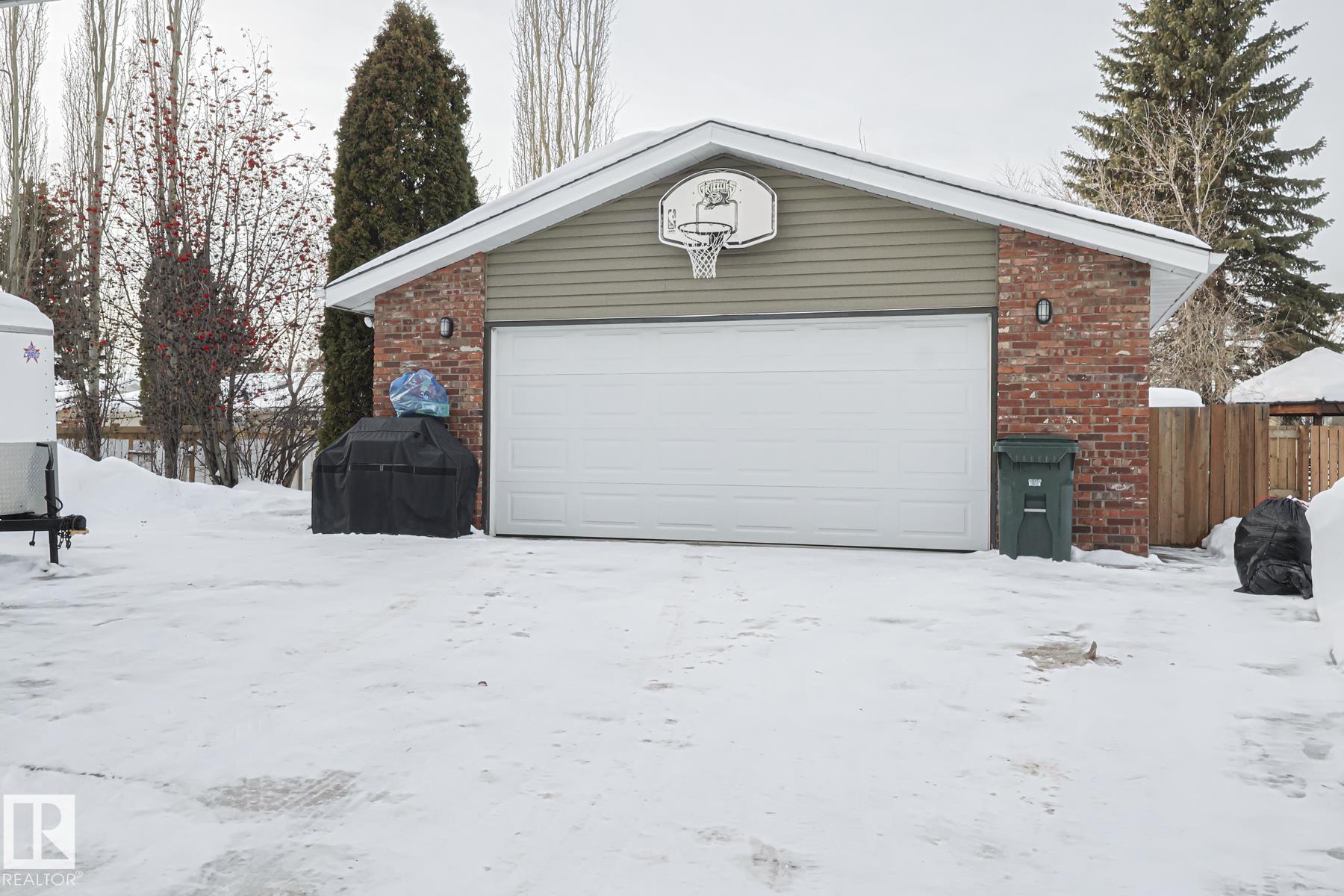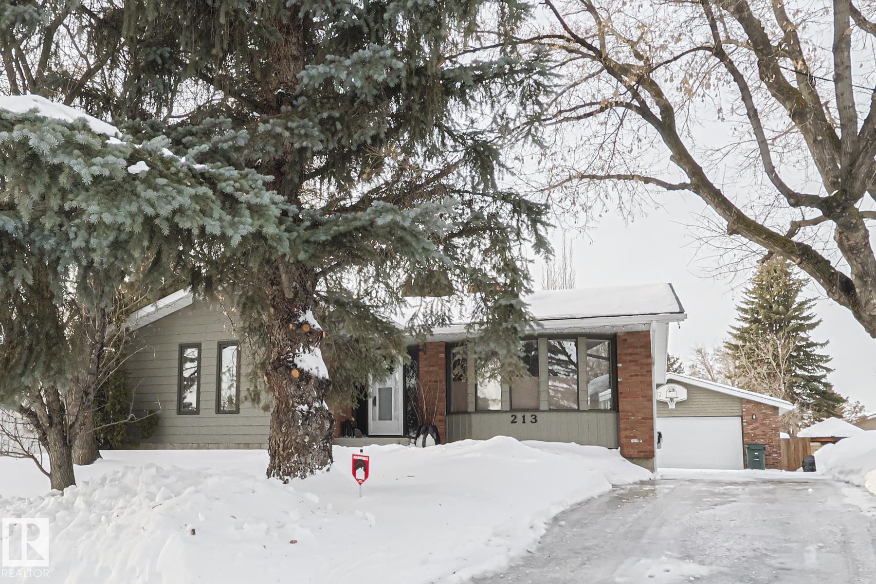 This TURN KEY UPDATED HOME is built for ENTERTAINING! A MASSIVE living room with BRICK FIREPLACE welcomes you and leads you to a LARGE DINING room! Plenty of room for hosting FAMILY gatherings. The incredible SPACIOUS KITCHEN also has an EAT-IN dining space. The PRIMARY bedrooms has a 3 piece ENSUITE as well as a WALKIN CLOSET. With a FULL BATH and 2 more AMPLE sized BEDROOMS on the MAIN FLOOR. The FULLY FINISHED lower level boasts; another FIREPLACE, HUGE REC ROOM, 3 PIECE BATHROOM, BAR, 4th BEDROOM POTENTIAL and LAUNDRY. This amazing FAMILY home is located in a private setting nestled among MATURE TREES on a PIE SHAPED LOT with STORAGE SHED. An OVERSIZED GARAGE will ensure your cars will never see the cold and there is SPACE for projects as well. MINUTES to SCHOOLS, SHOPPING, REC CENTER, TRAILS this home is located in the Heart of it all.